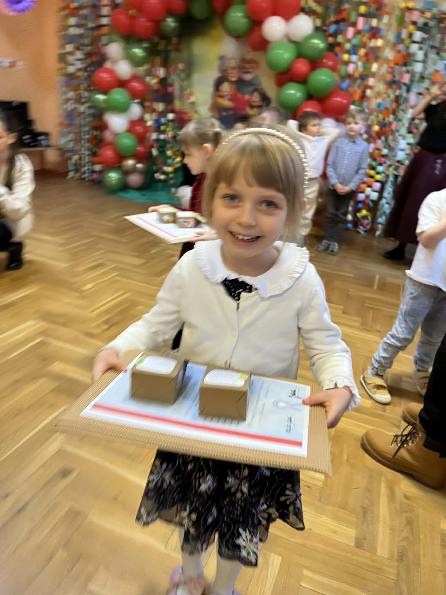 Dzieci z wielkim zaangażowaniem przygotowały niespodzianki i pamiątki dla swoich ukochanych Nestorów — małe, własnoręczne prezenty, w które włożyły całe swoje serduszka. Każdy uśmiech przy ich wręczaniu był bezcenny.
