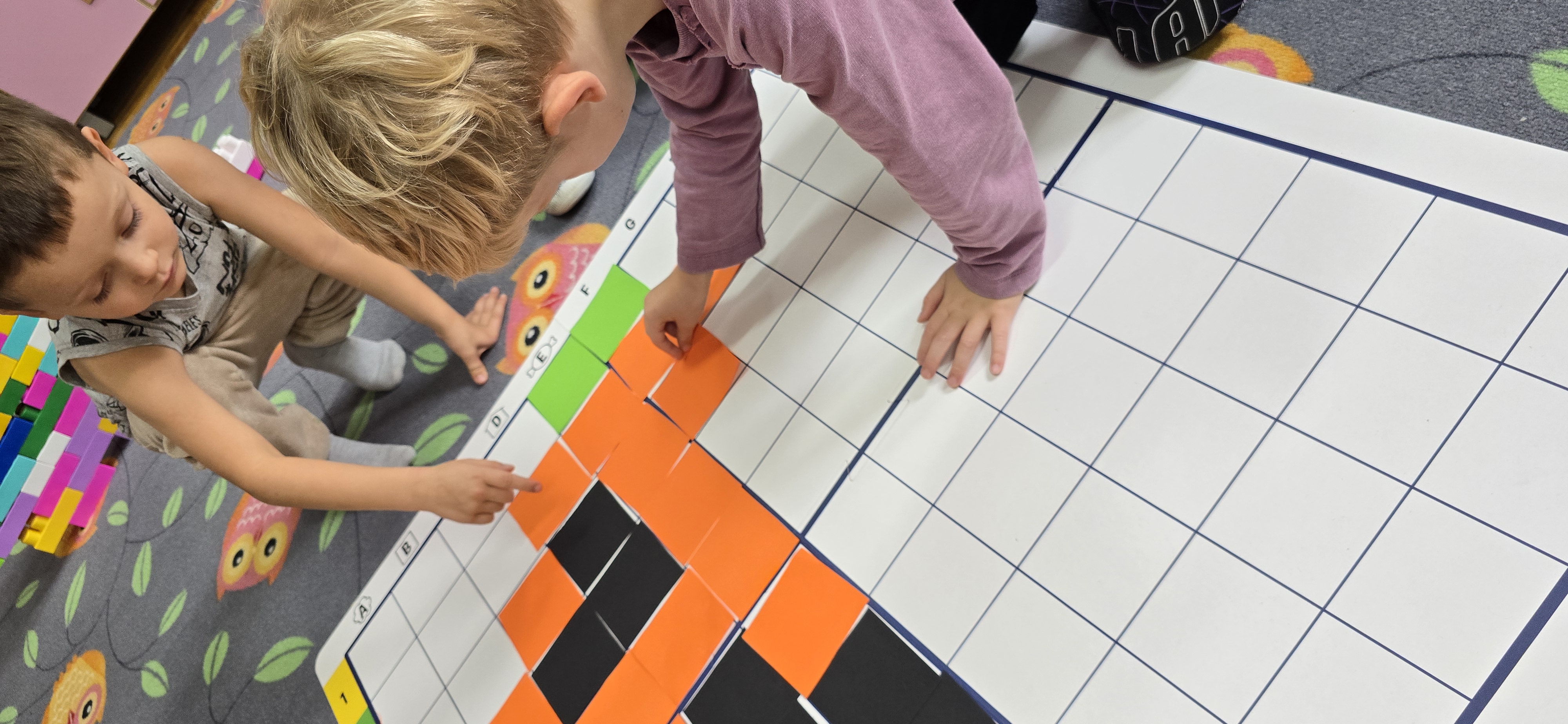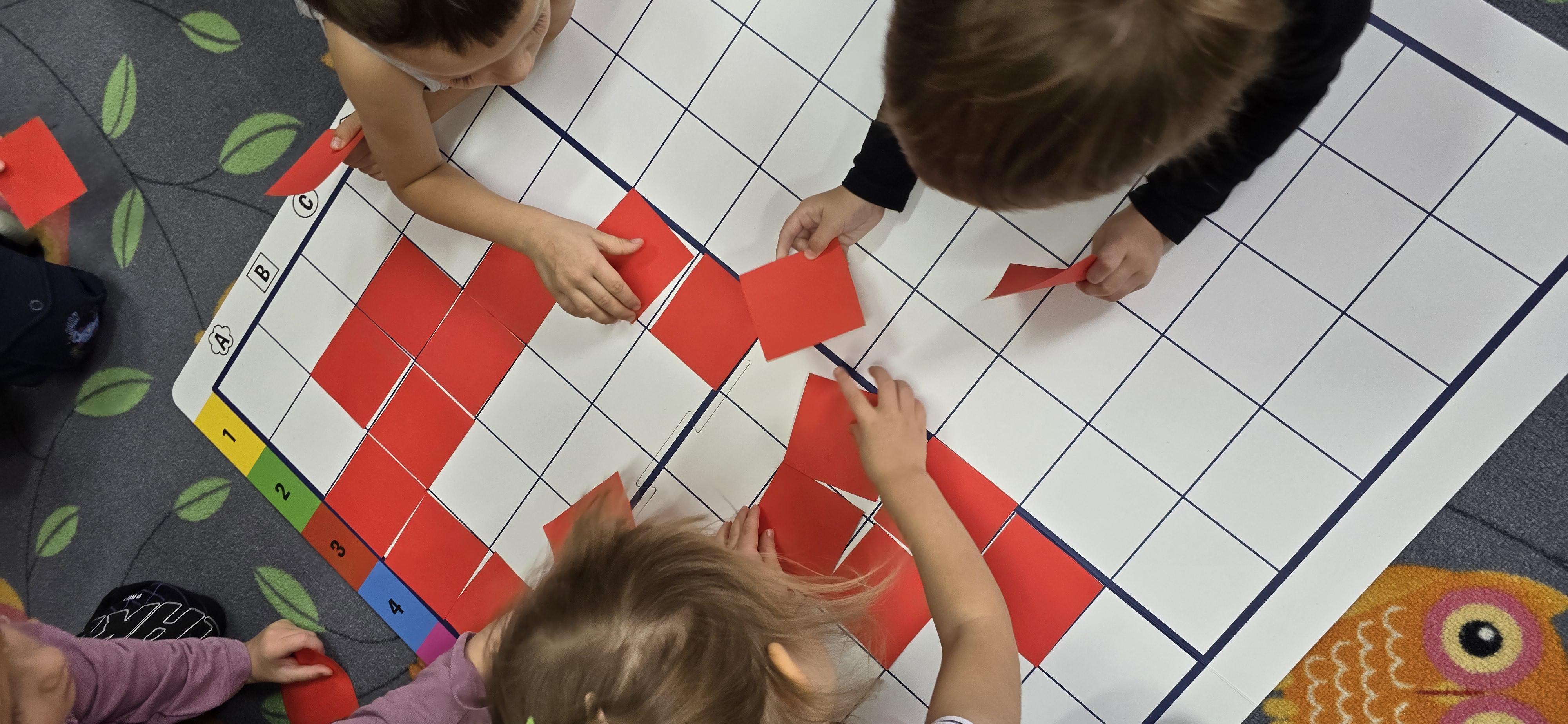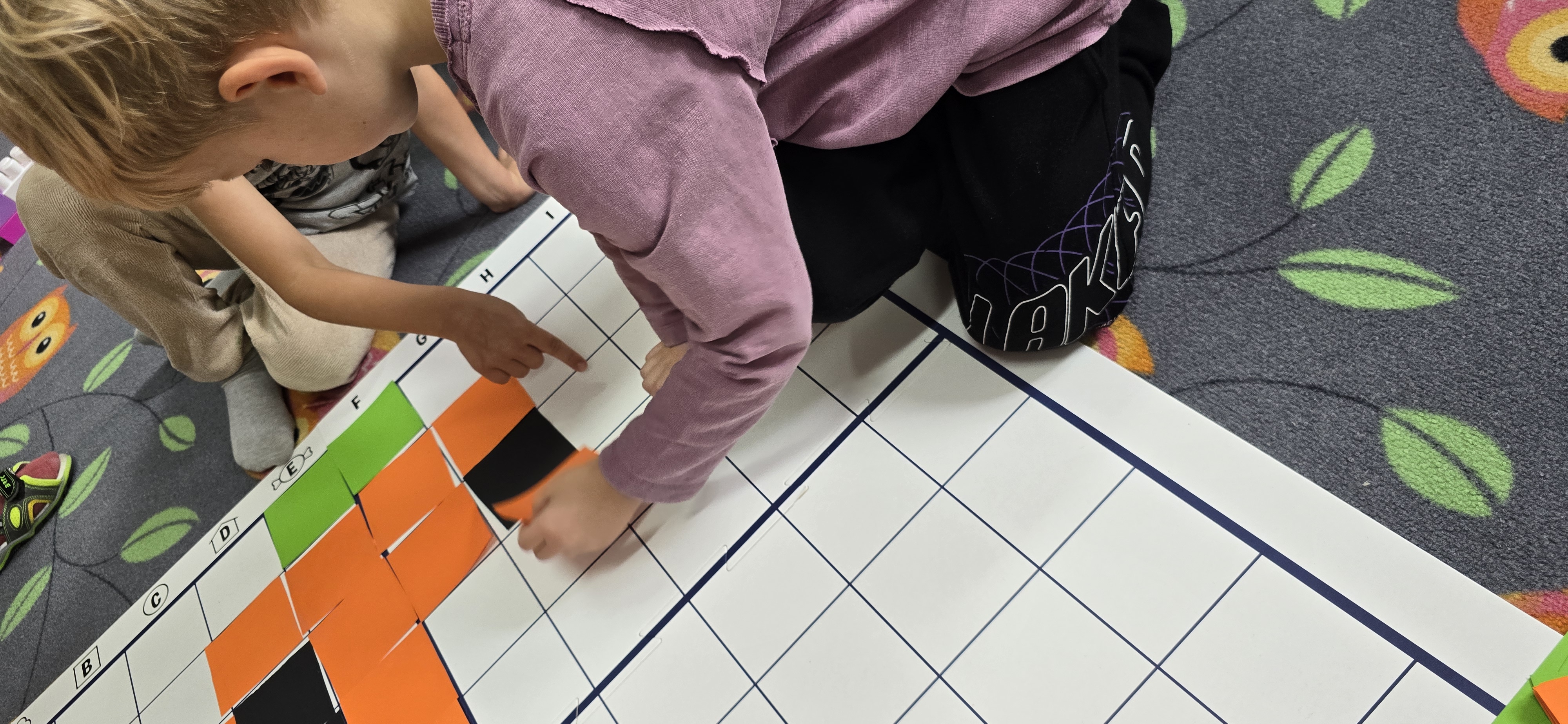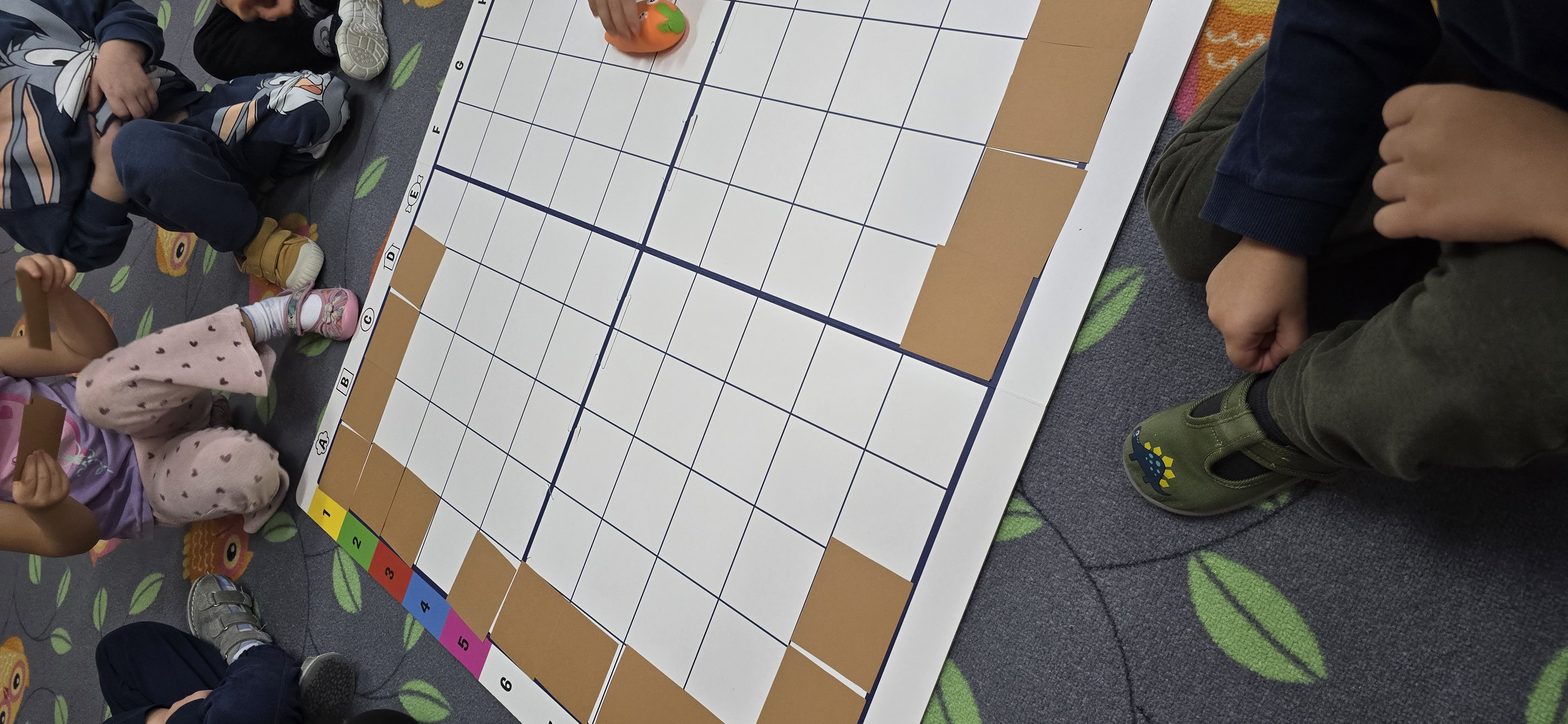 Utrwalały znajomość kierunków, planowały kolejne kroki i wspólnie rozwiązywały ruchowe zagadki. Zajęcia rozwijały koncentrację, cierpliwość oraz umiejętność współpracy w grupie.
