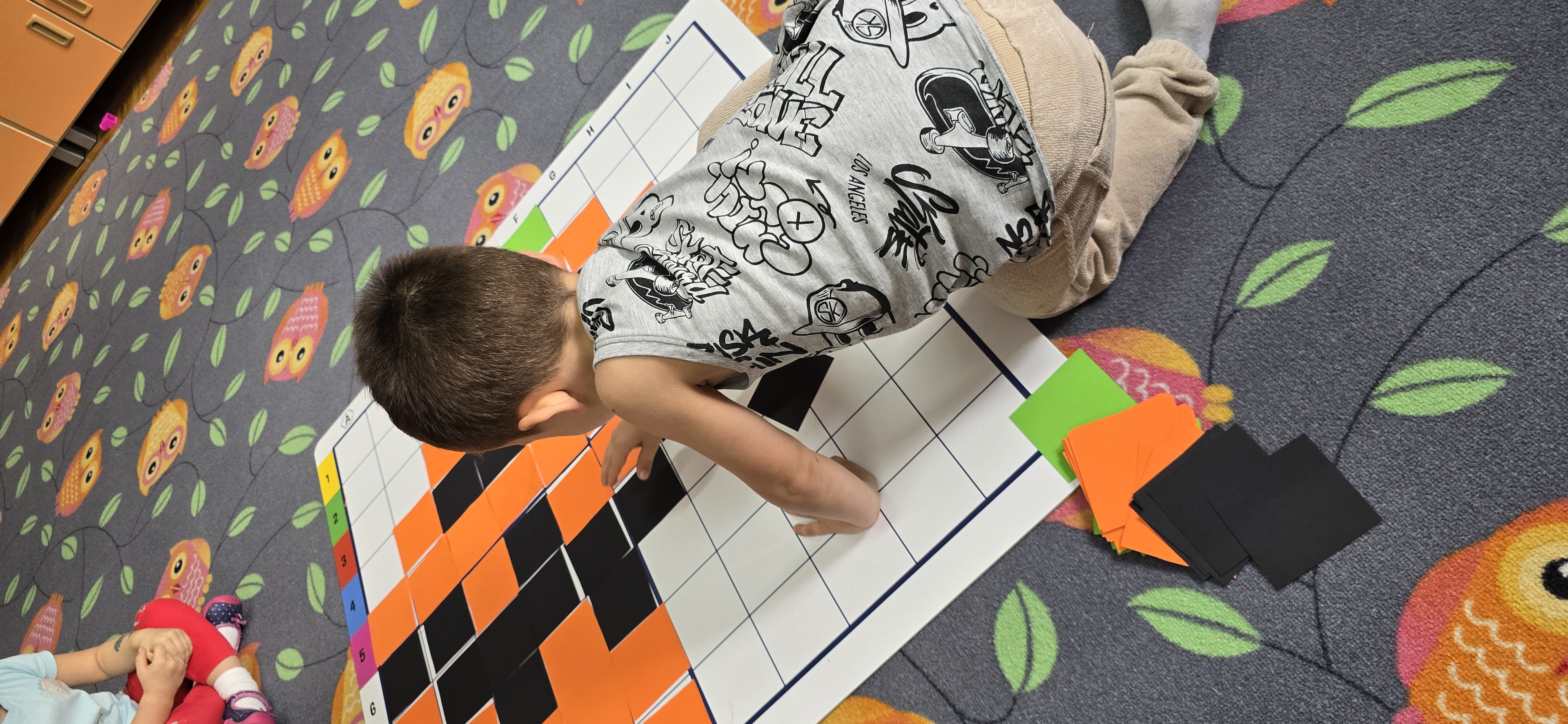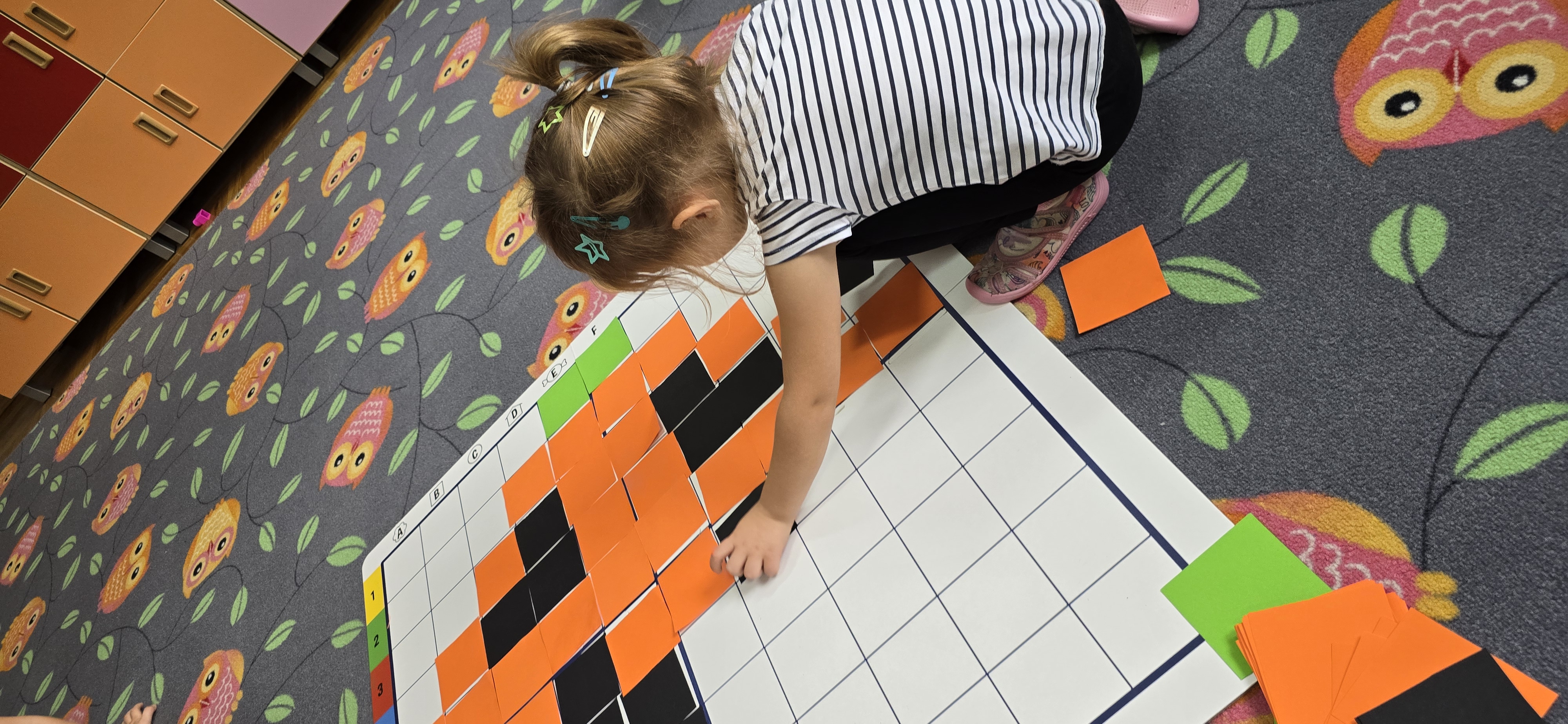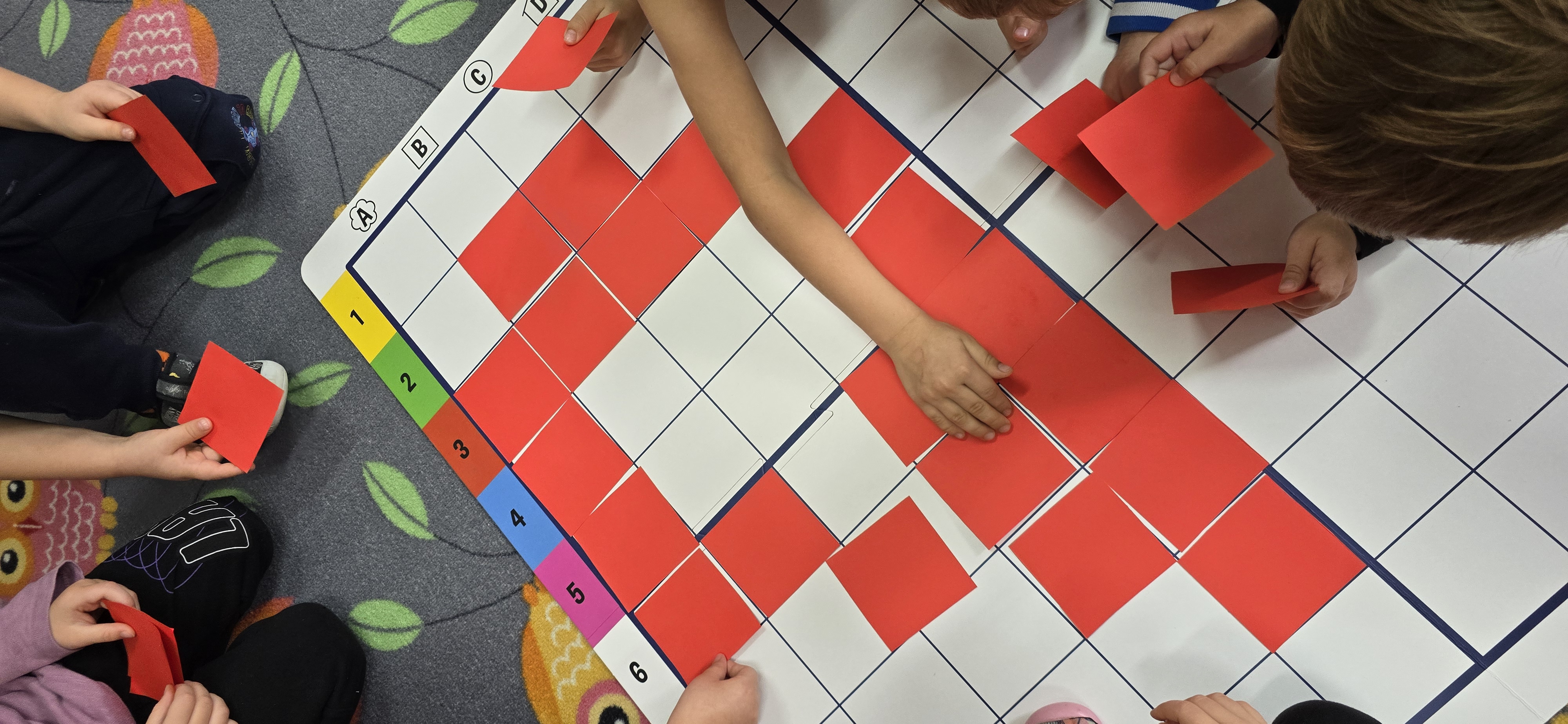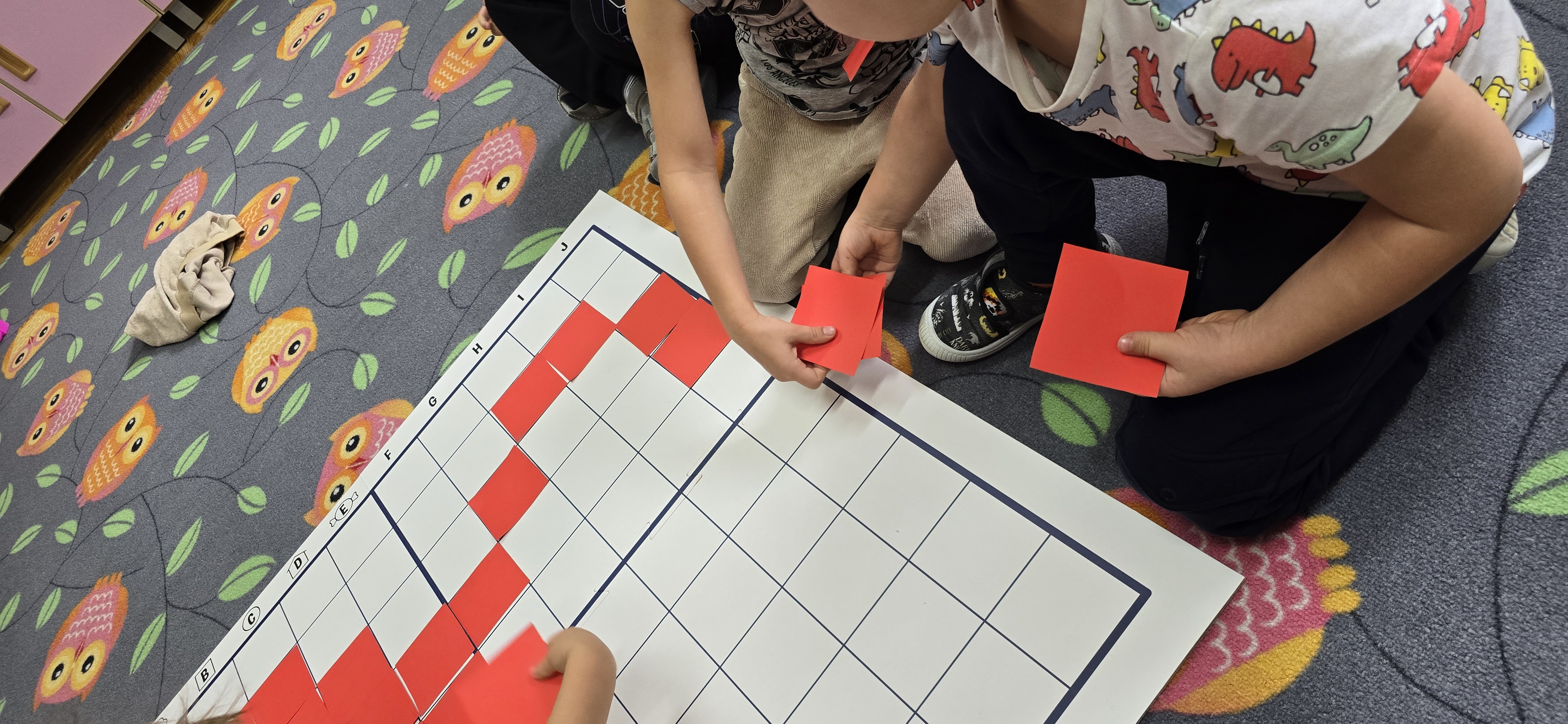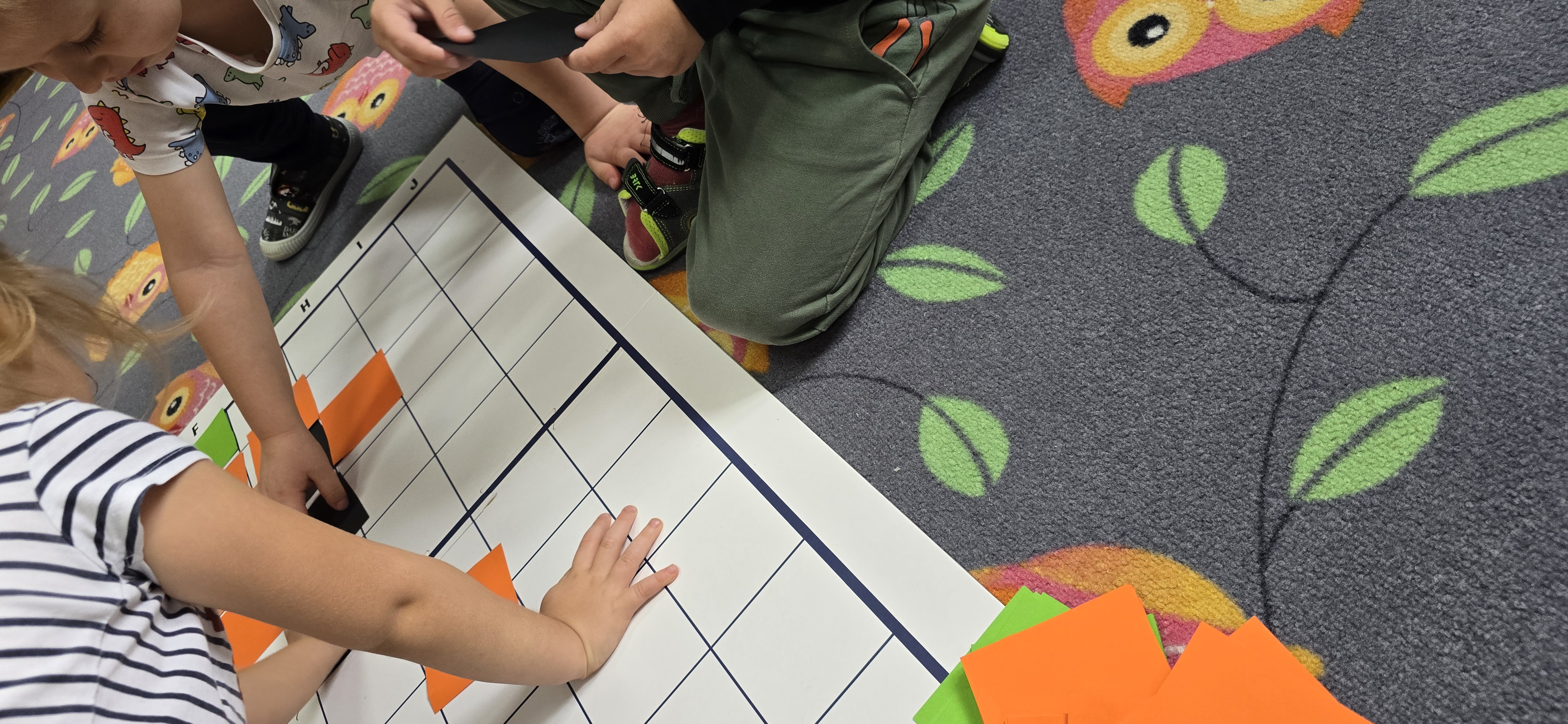 Utrwalały znajomość kierunków, planowały kolejne kroki i wspólnie rozwiązywały ruchowe zagadki. Zajęcia rozwijały koncentrację, cierpliwość oraz umiejętność współpracy w grupie.