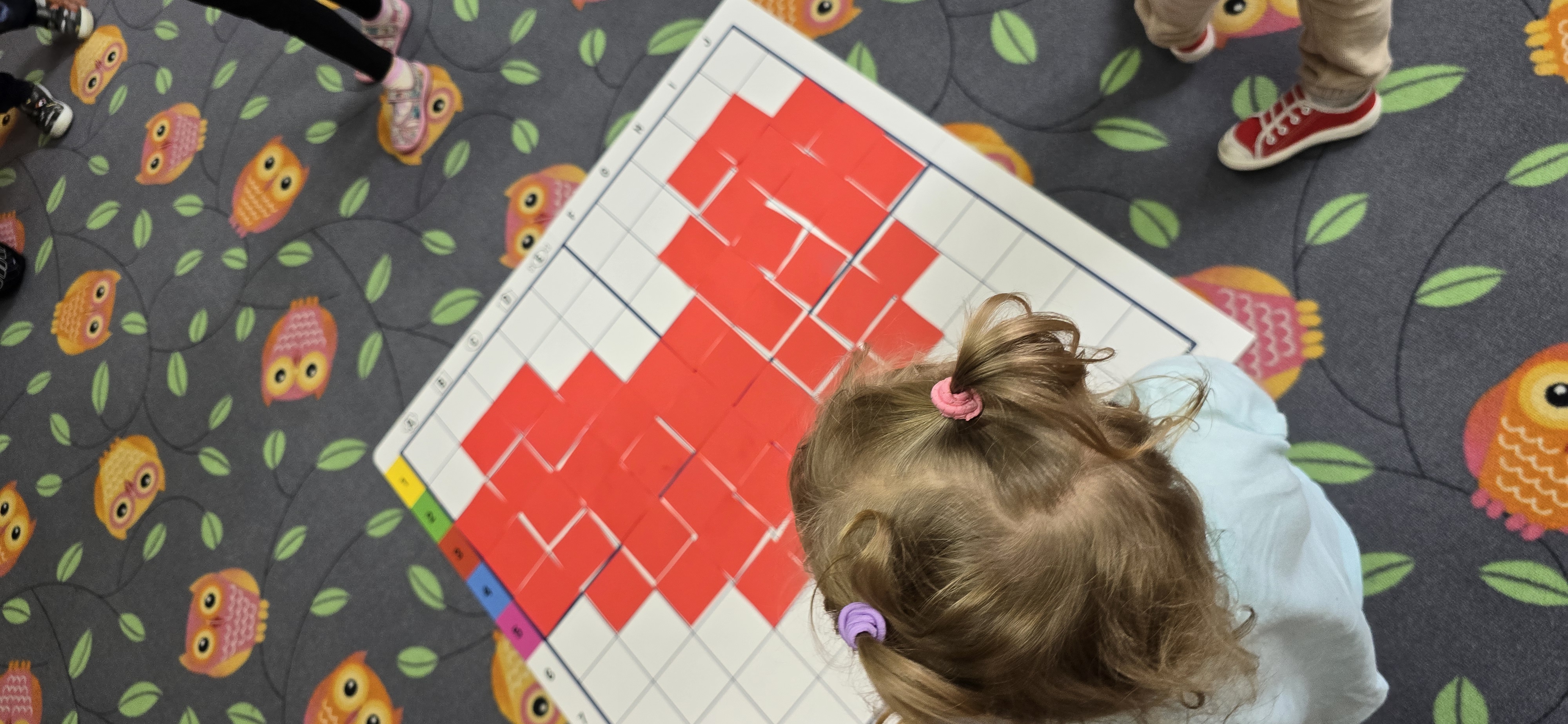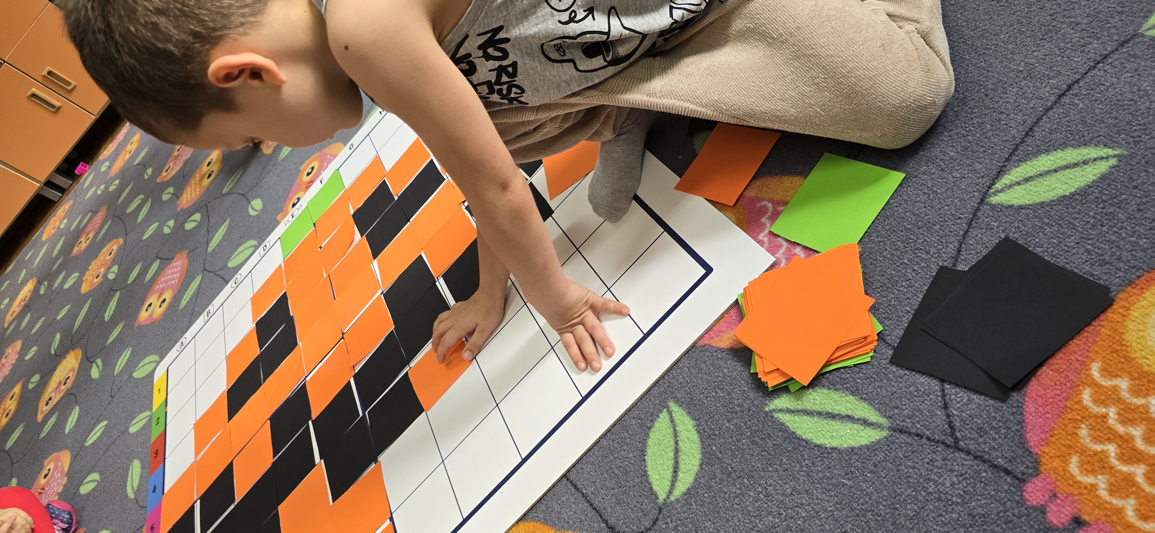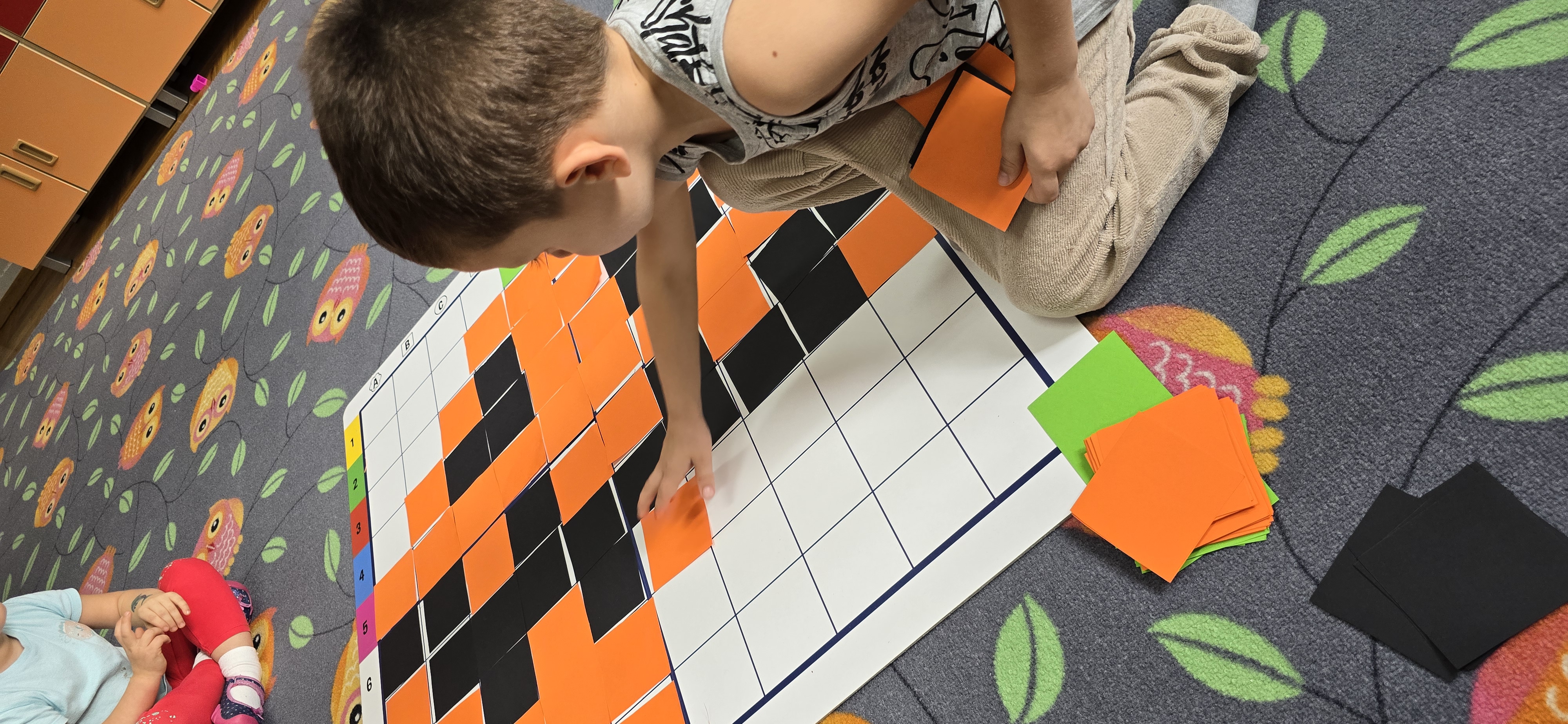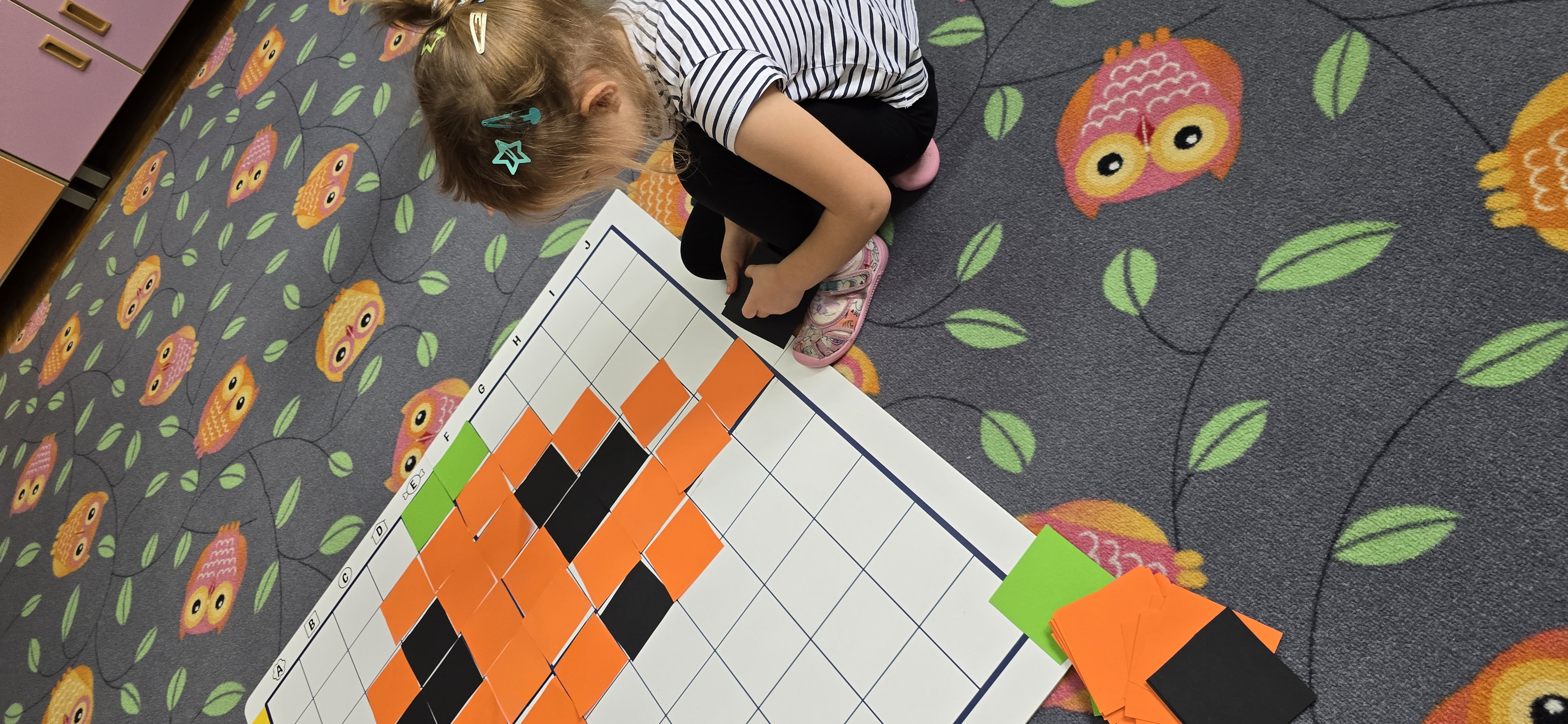 Utrwalały znajomość kierunków, planowały kolejne kroki i wspólnie rozwiązywały ruchowe zagadki. Zajęcia rozwijały koncentrację, cierpliwość oraz umiejętność współpracy w grupie.