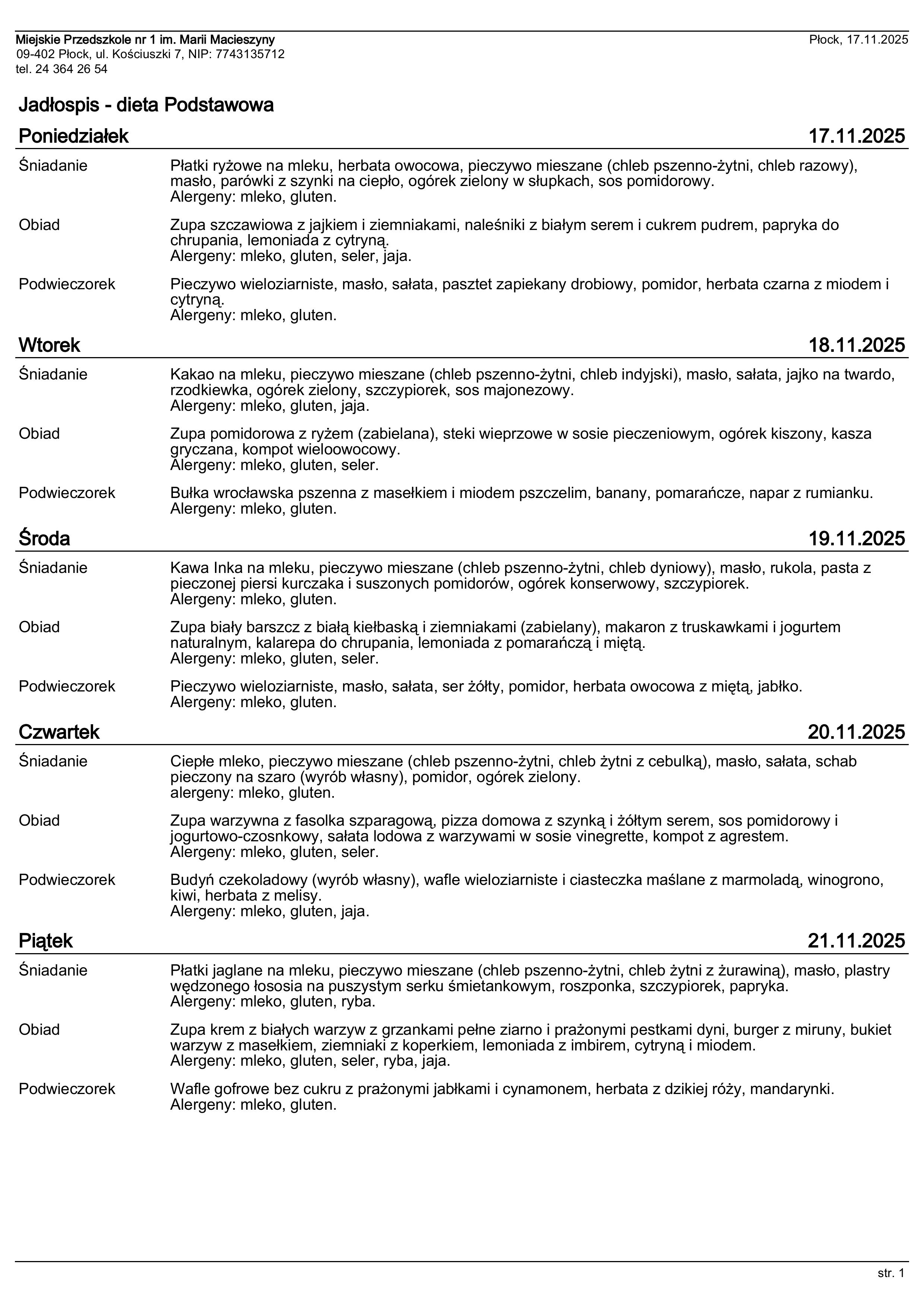 Sporządzając jadłospisy w naszym Przedszkolu zawsze oznaczone zostaja alergeny wystpępujące w daniach, które przygotowaliśmy.