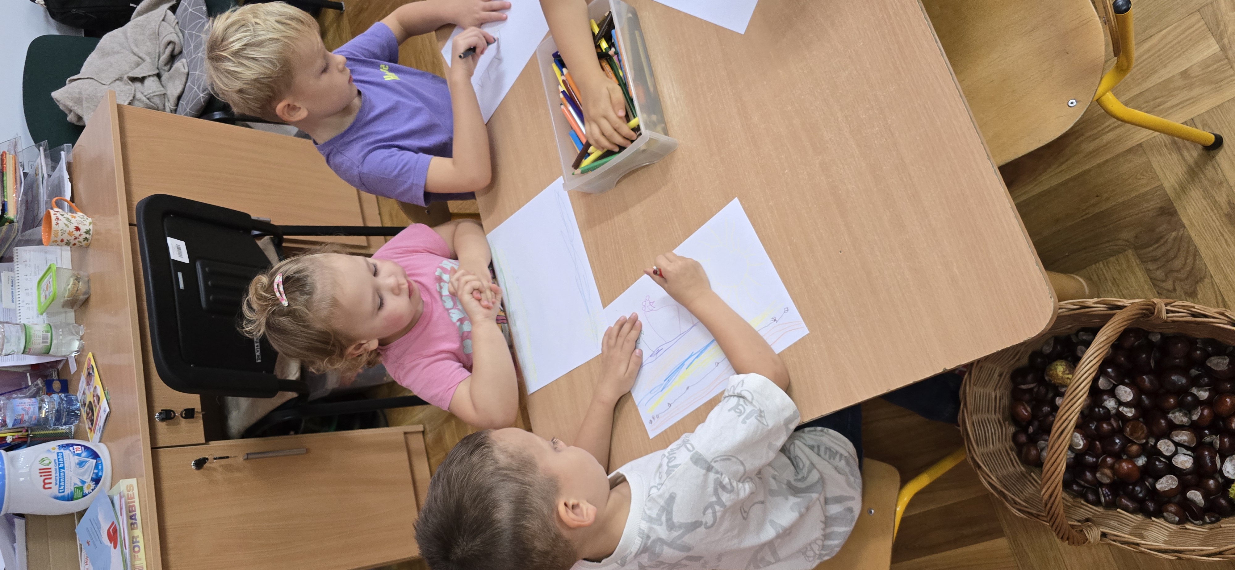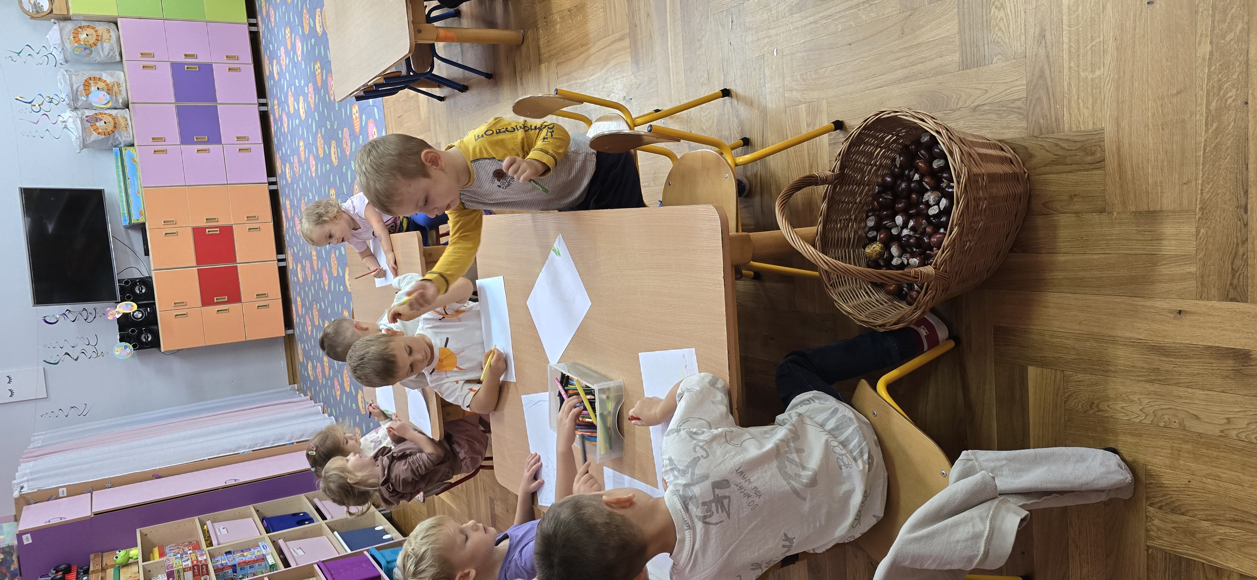 Dzieci wróciły dziś ze spaceru pełne radości i czerwonych policzków od jesiennego powietrza. W parku, pod rozłożystymi drzewami, zebrały cały kosz kasztanów – każdy z nich błyszczał w ich małych dłoniach jak skarb, jak małe, brązowe słońce schowane w łupince. Patrzyły na nie z zachwytem, jakby odkryły największy cud natury. Ich śmiech mieszał się ze szelestem liści, a kosz napełniał się nie tylko kasztanami, lecz także ciepłem i beztroską chwilą, którą na długo zapamiętamy.