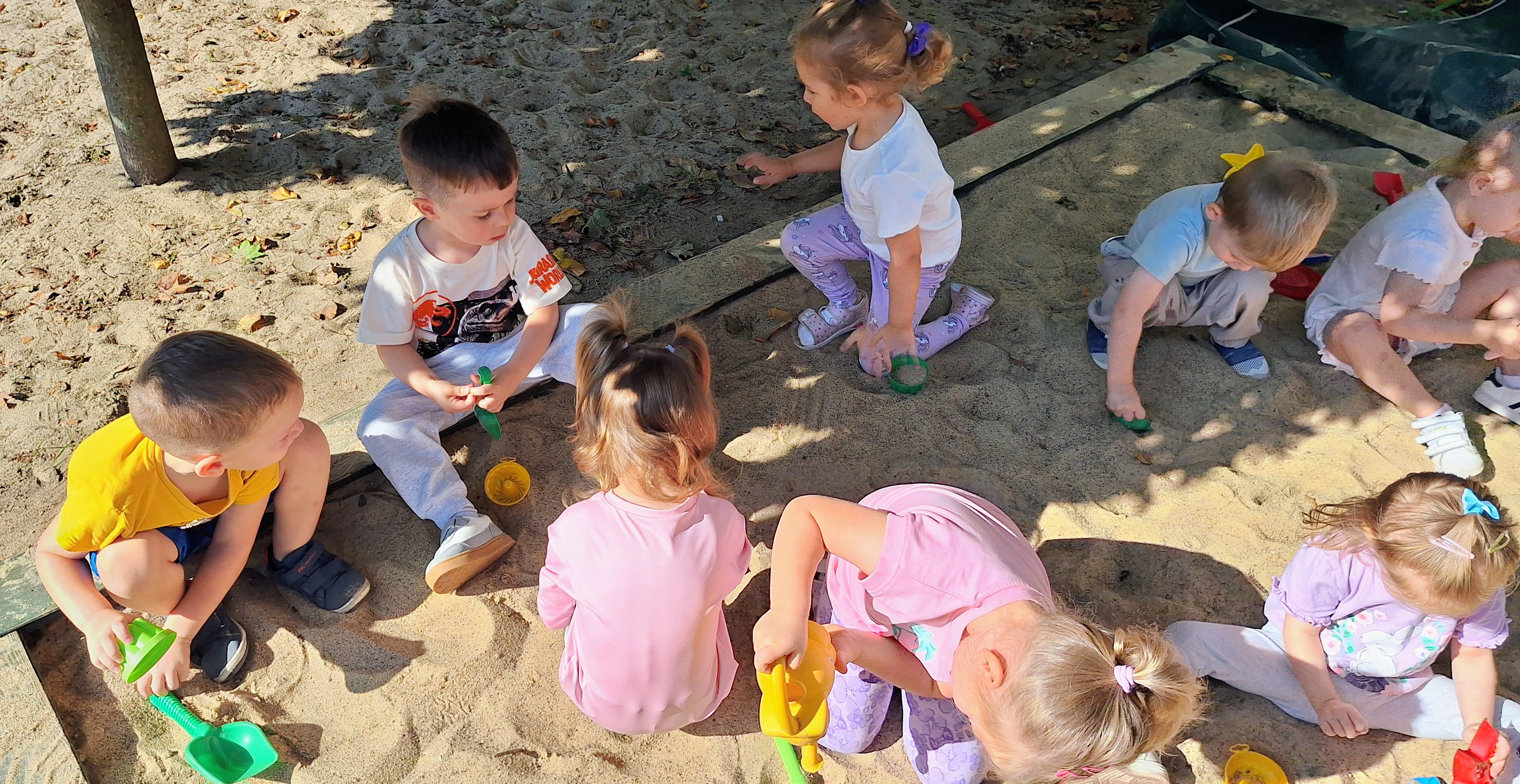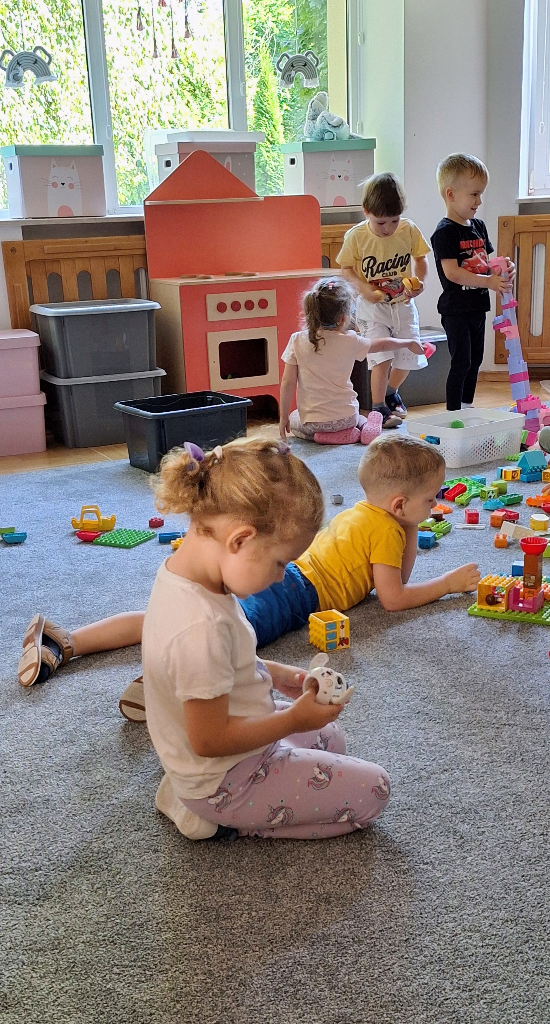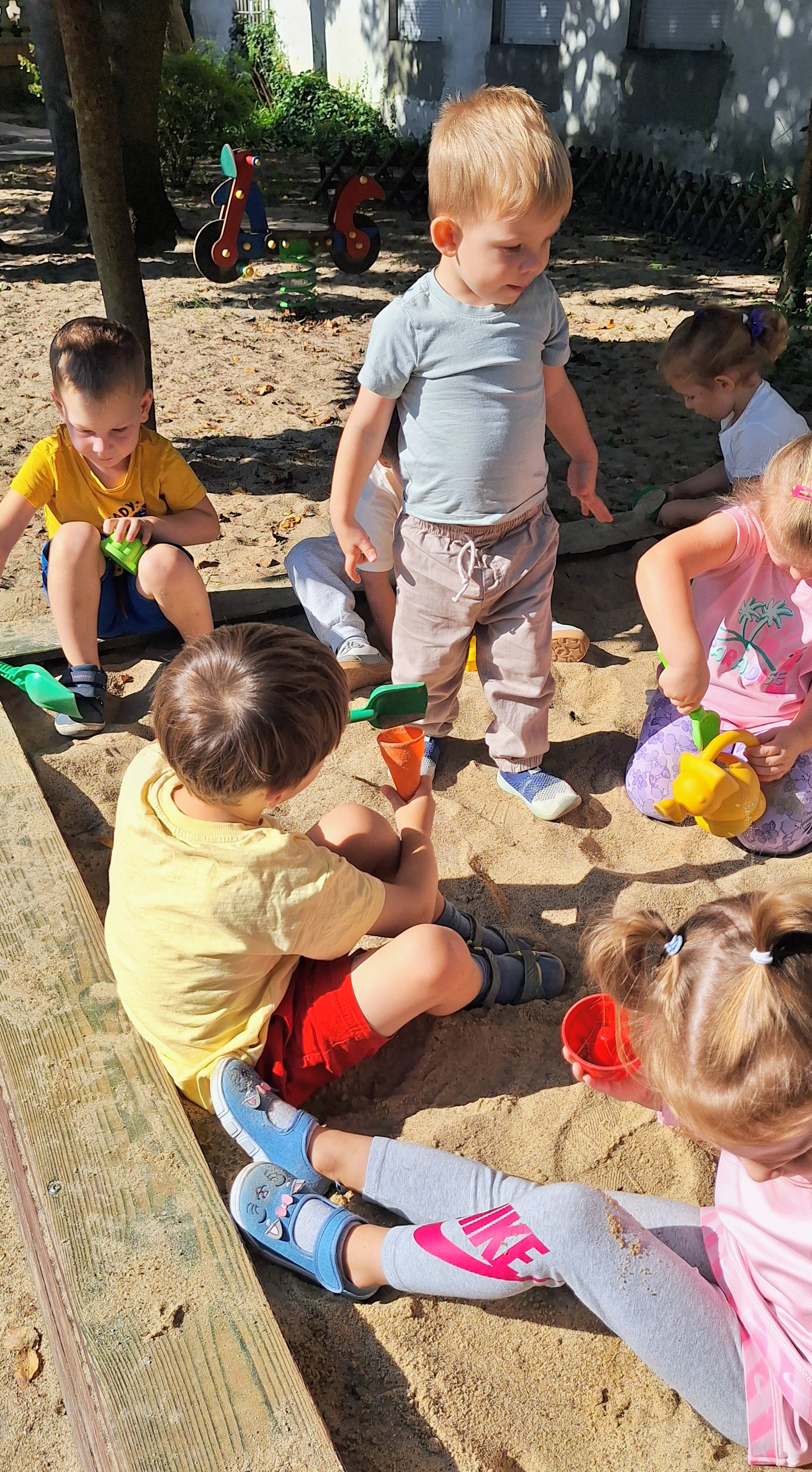 Podczas wspólnych zabaw w sali i na placu zabaw poznajemy nowych kolegów i koleżanki, uczymy się współpracy oraz dzielimy się radością.