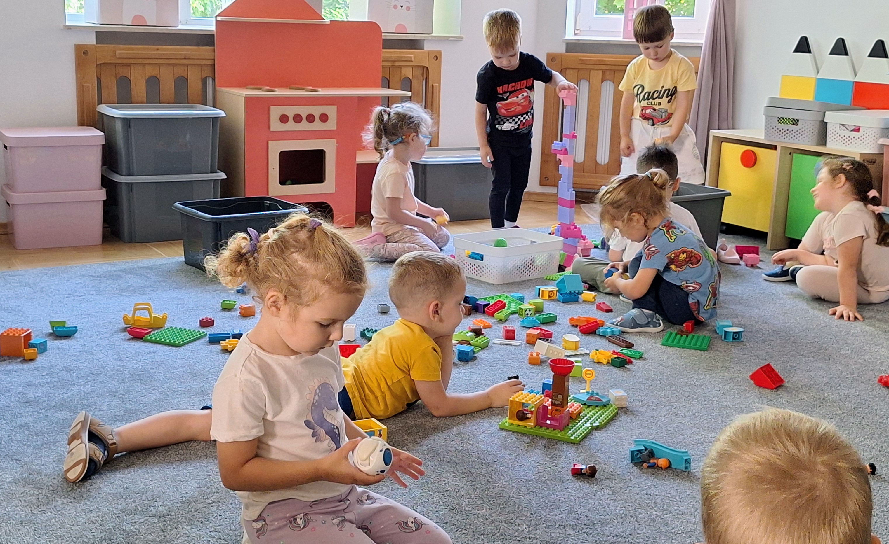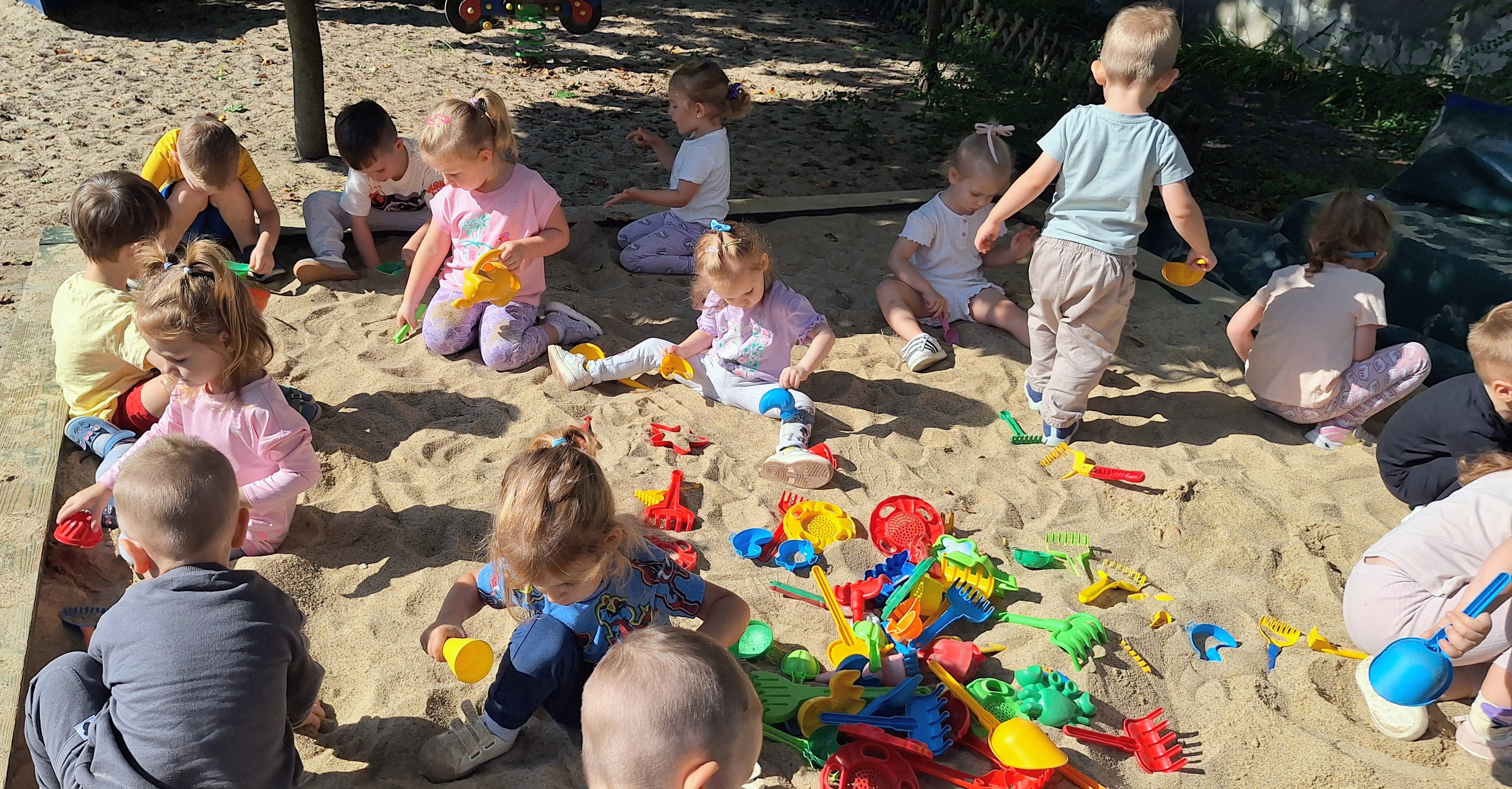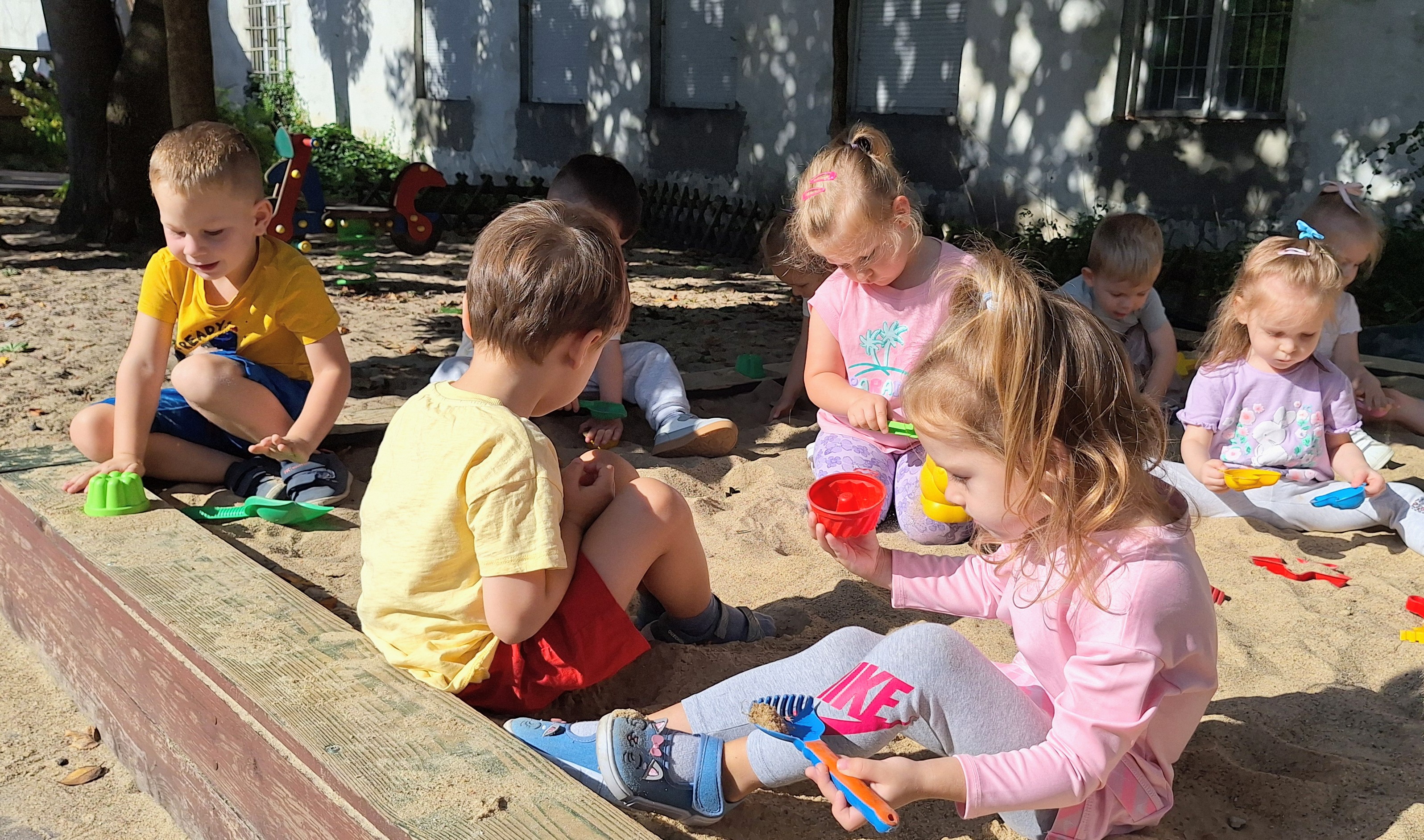 Podczas wspólnych zabaw w sali i na placu zabaw poznajemy nowych kolegów i koleżanki, uczymy się współpracy oraz dzielimy się radością.