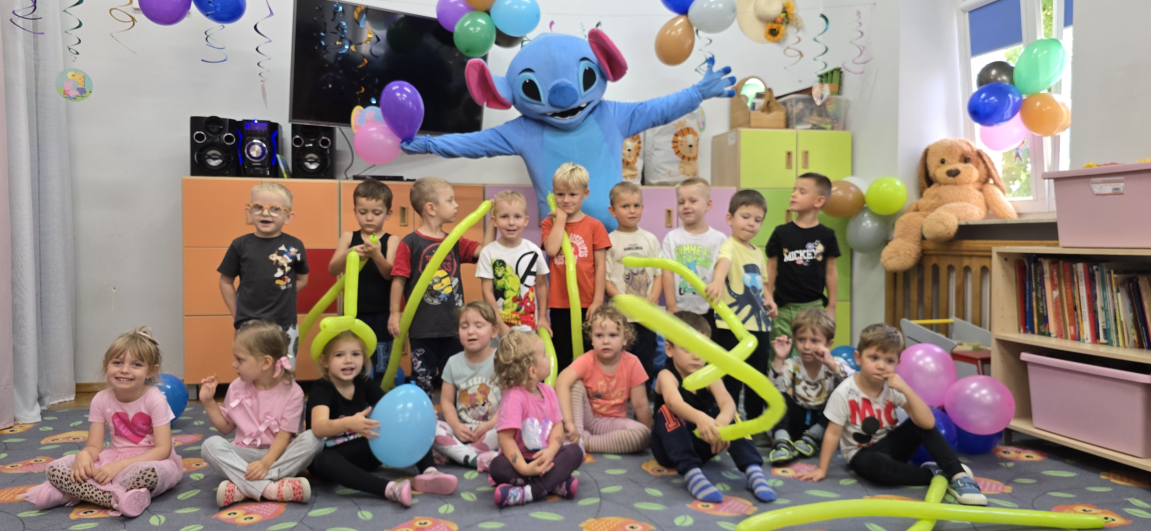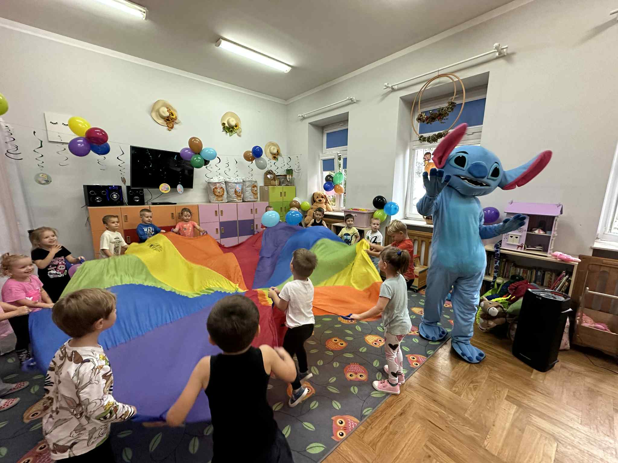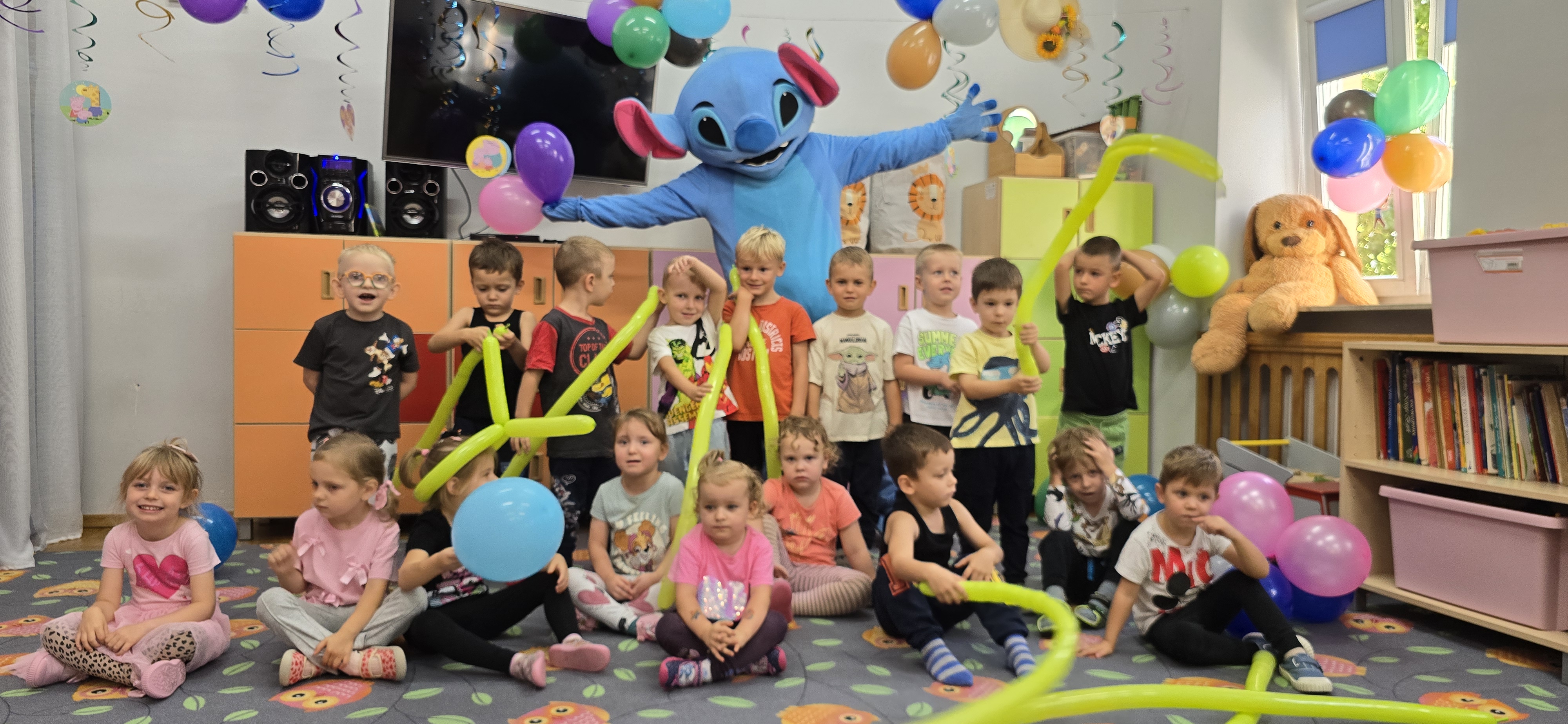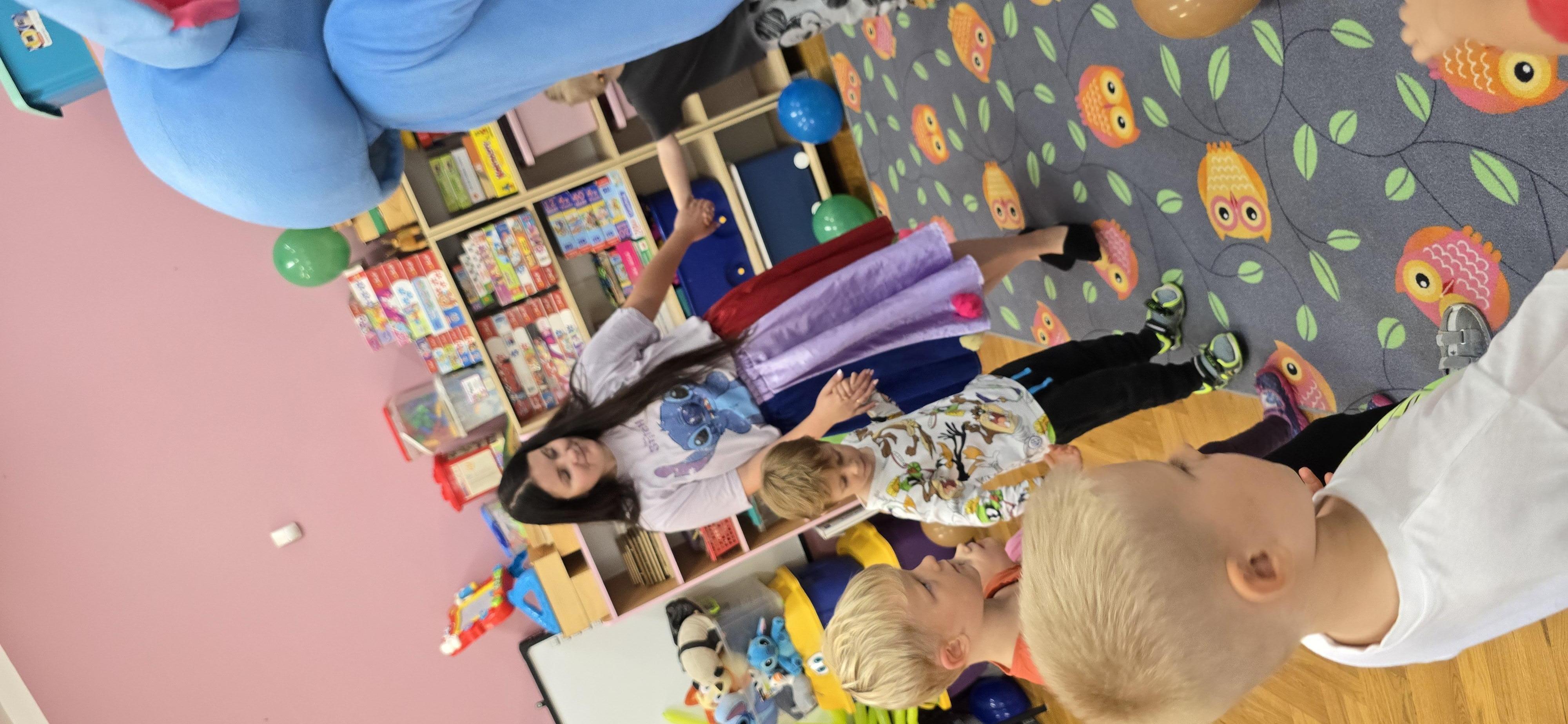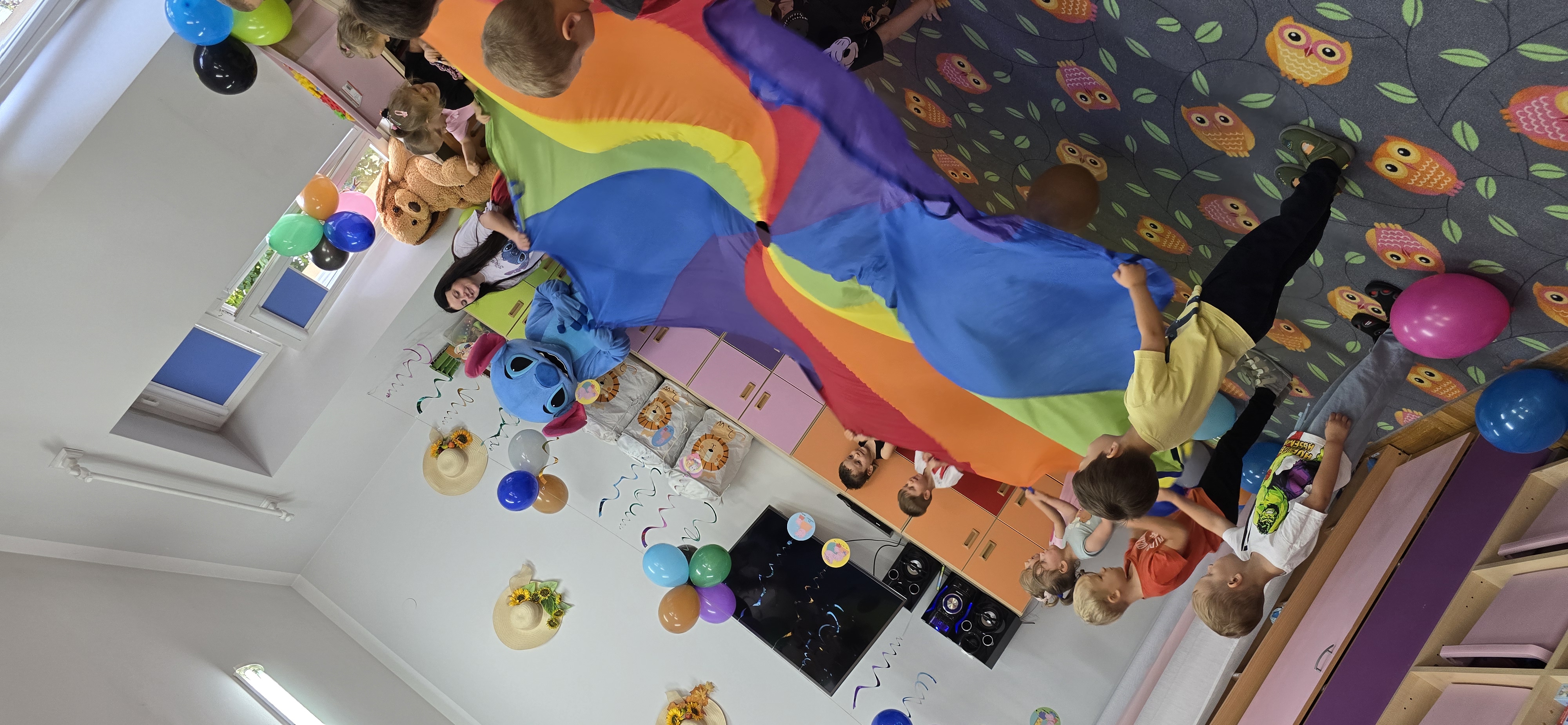 W salach i w ogrodzie rozbrzmiewała muzyka, a dzieci bawiły się wesoło podczas wspólnych tańców, zabaw i swawoli. Nie zabrakło również niespodzianek – każdy przedszkolak otrzymał super upominek, który wywołał wiele uśmiechów i radości.