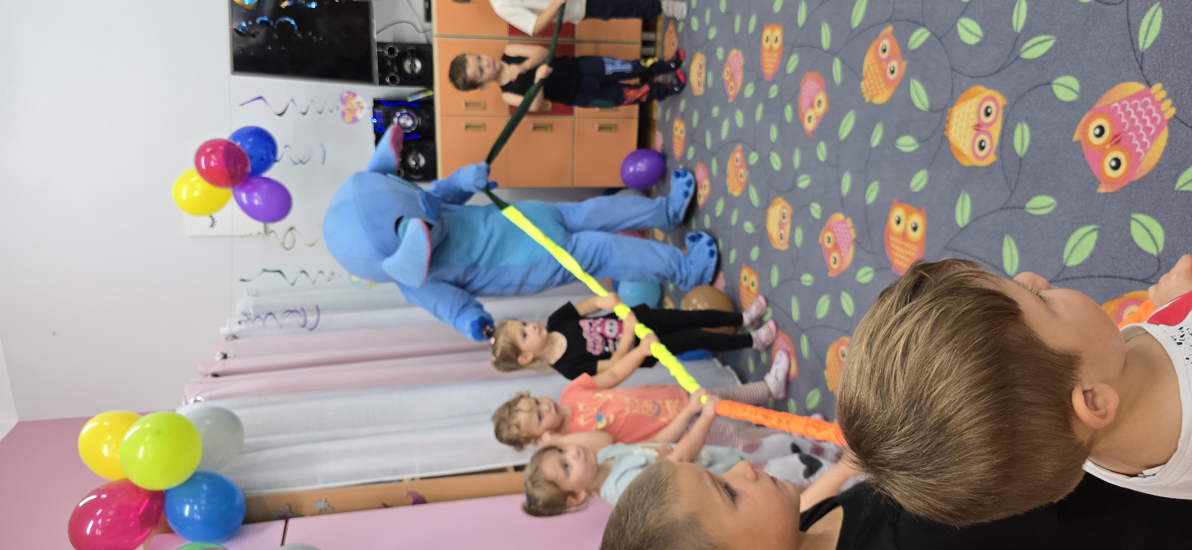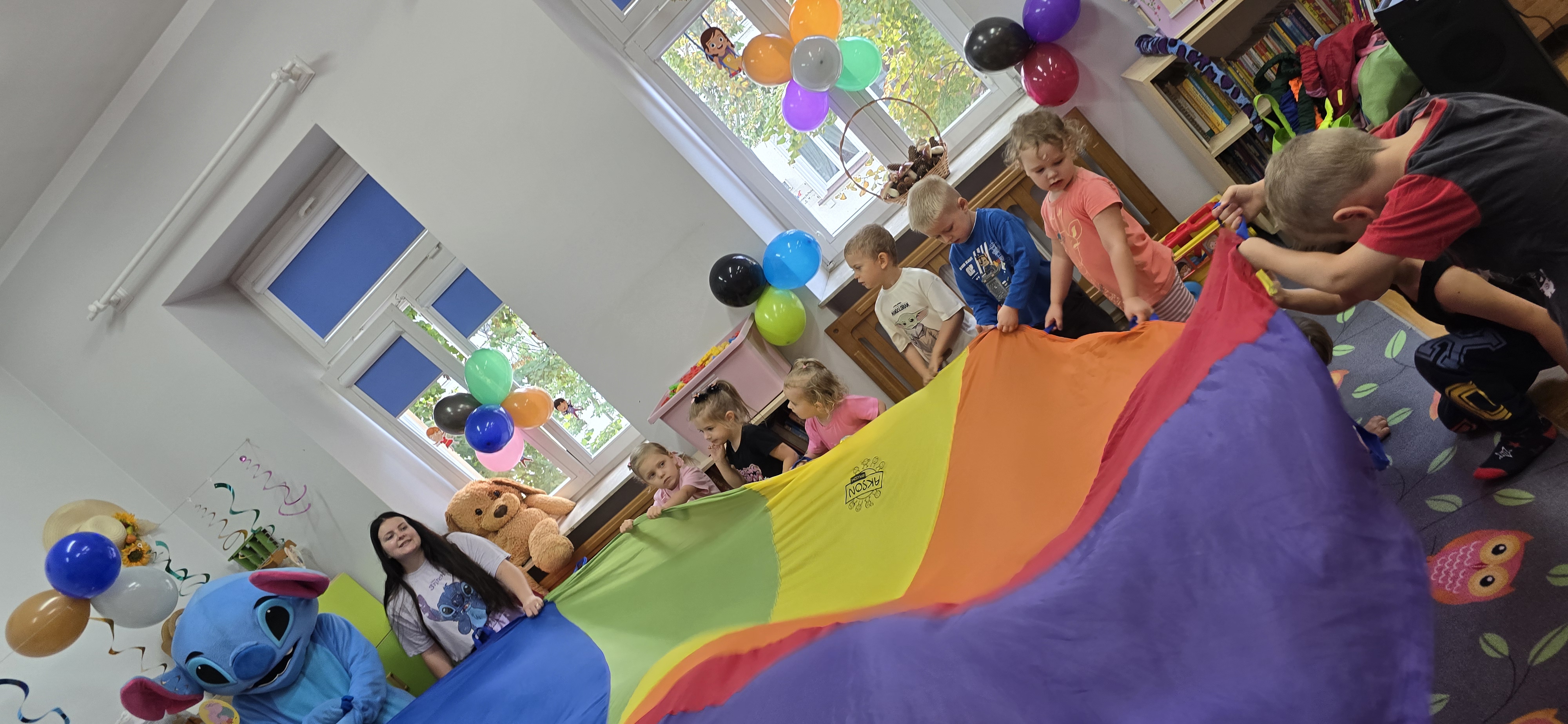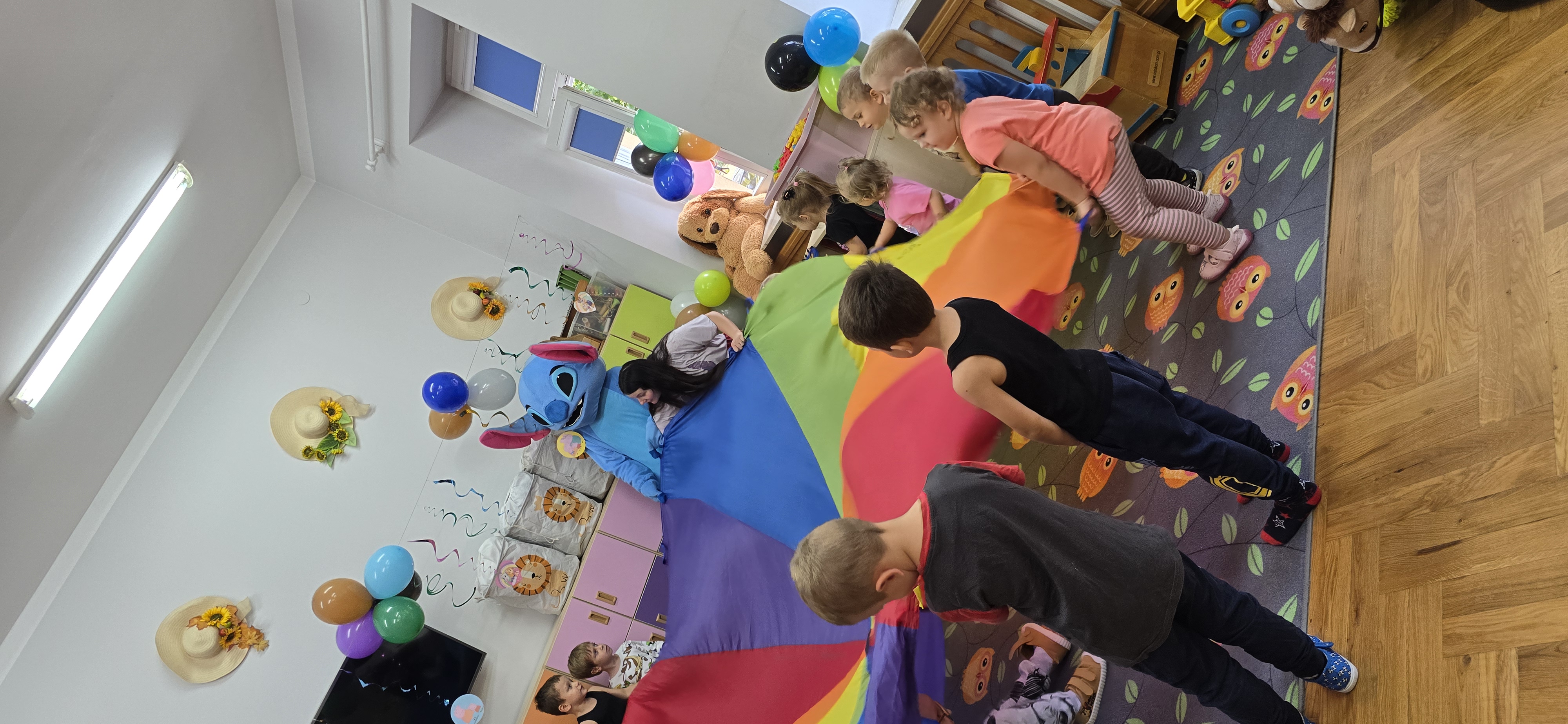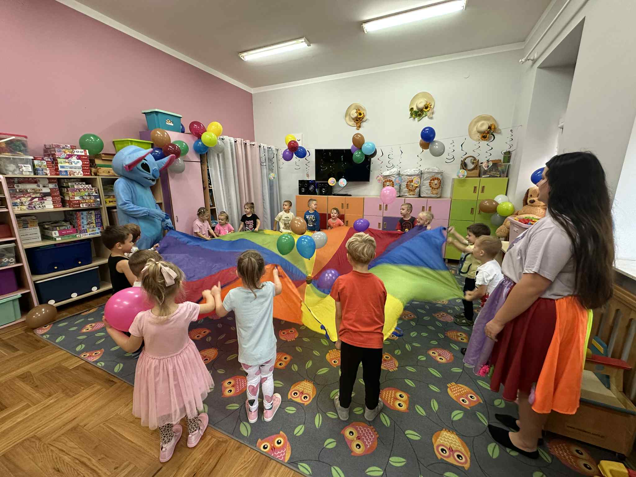 W salach i w ogrodzie rozbrzmiewała muzyka, a dzieci bawiły się wesoło podczas wspólnych tańców, zabaw i swawoli. Nie zabrakło również niespodzianek – każdy przedszkolak otrzymał super upominek, który wywołał wiele uśmiechów i radości.