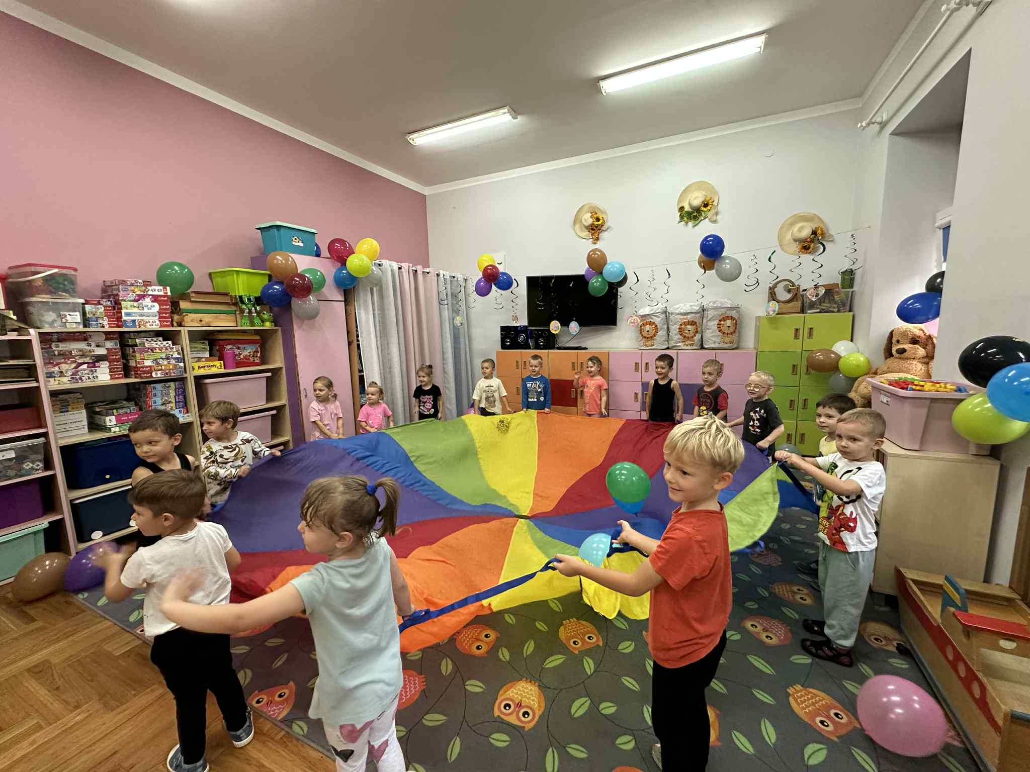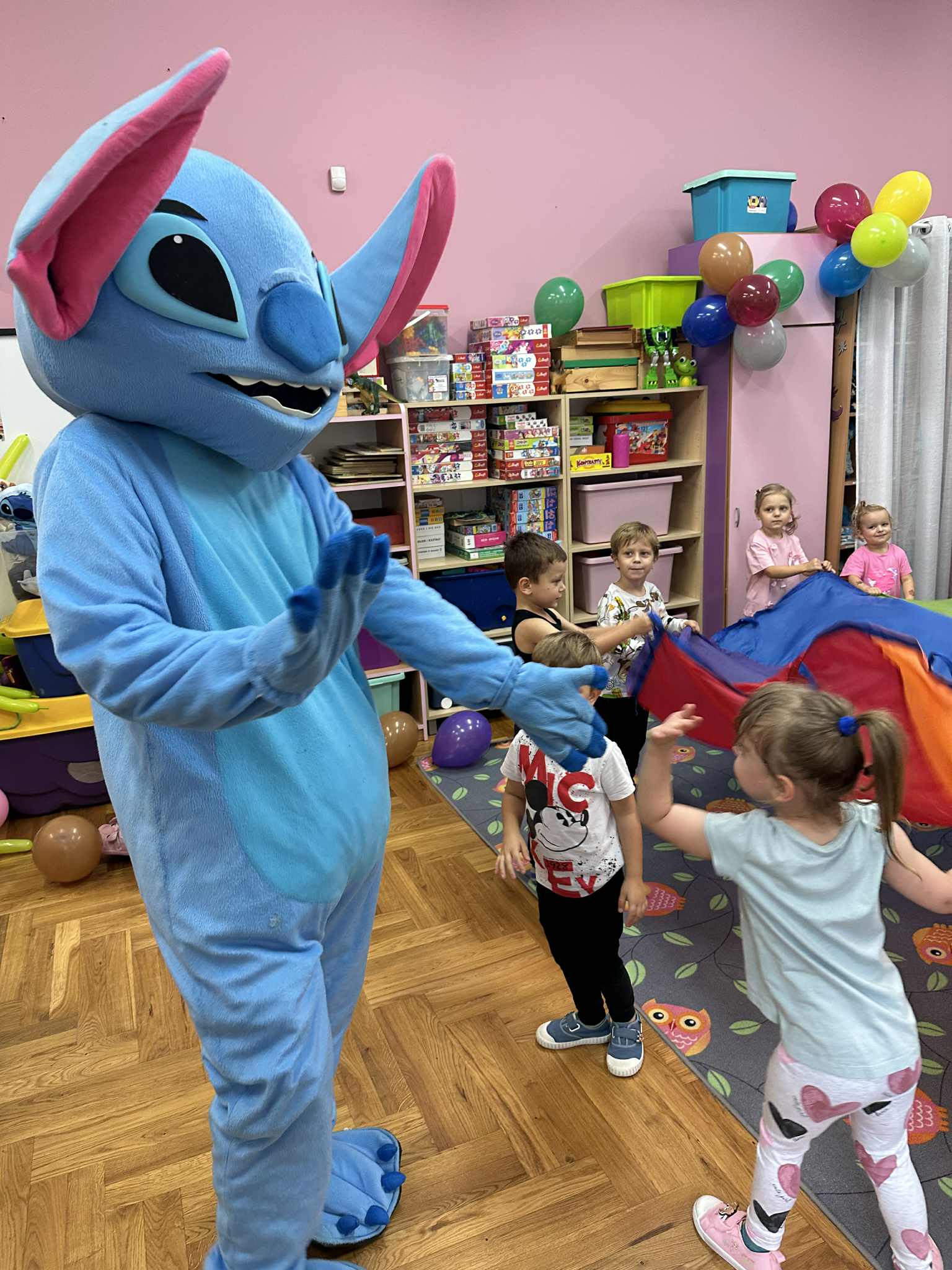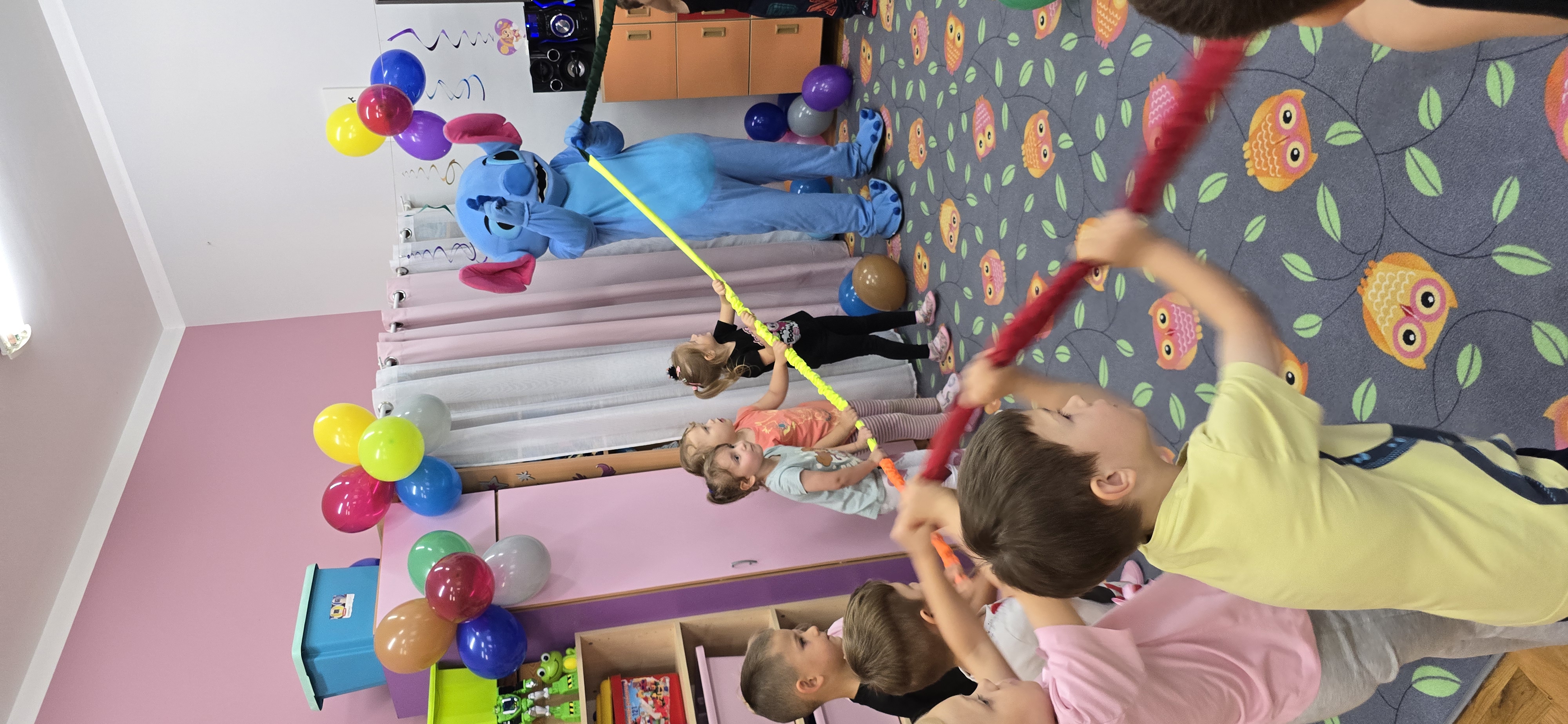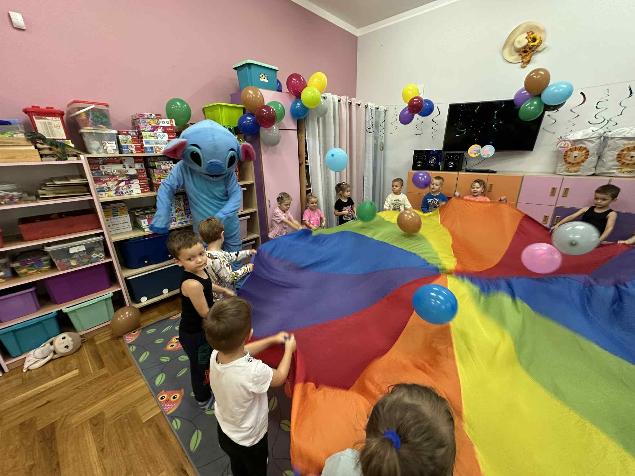 W salach i w ogrodzie rozbrzmiewała muzyka, a dzieci bawiły się wesoło podczas wspólnych tańców, zabaw i swawoli. Nie zabrakło również niespodzianek – każdy przedszkolak otrzymał super upominek, który wywołał wiele uśmiechów i radości.