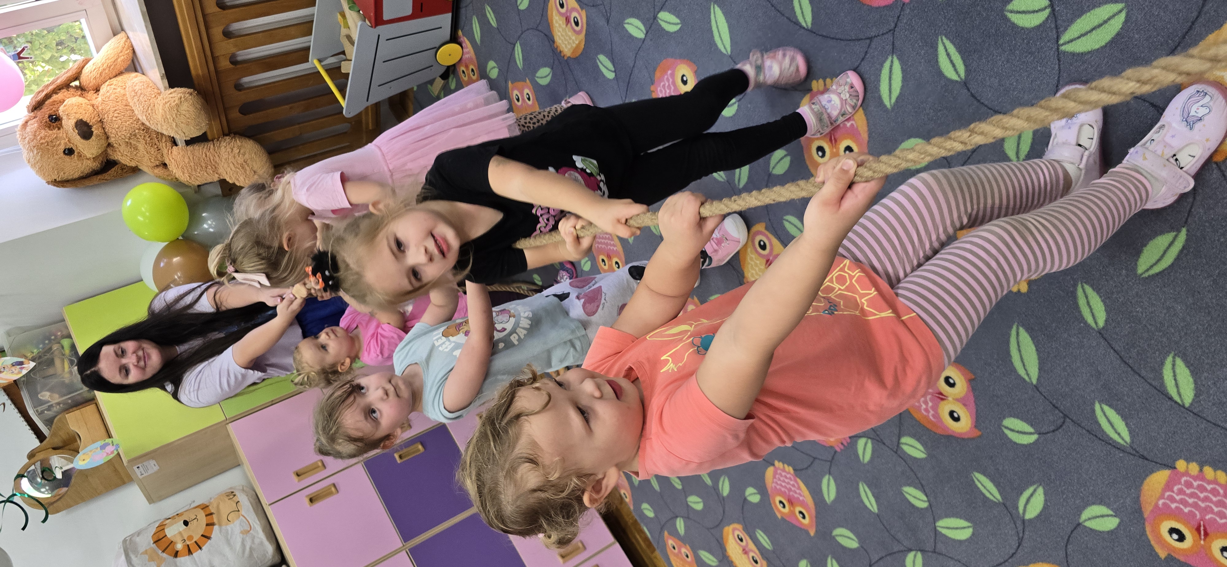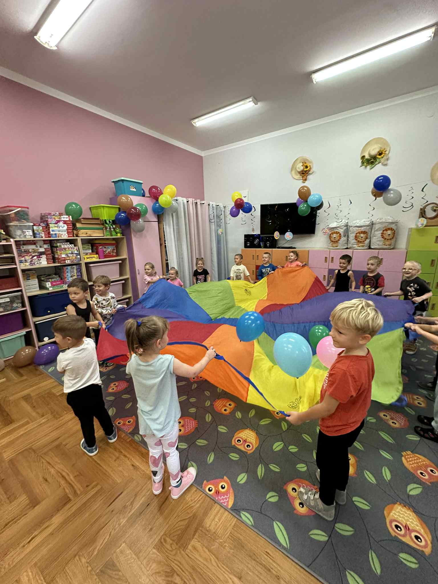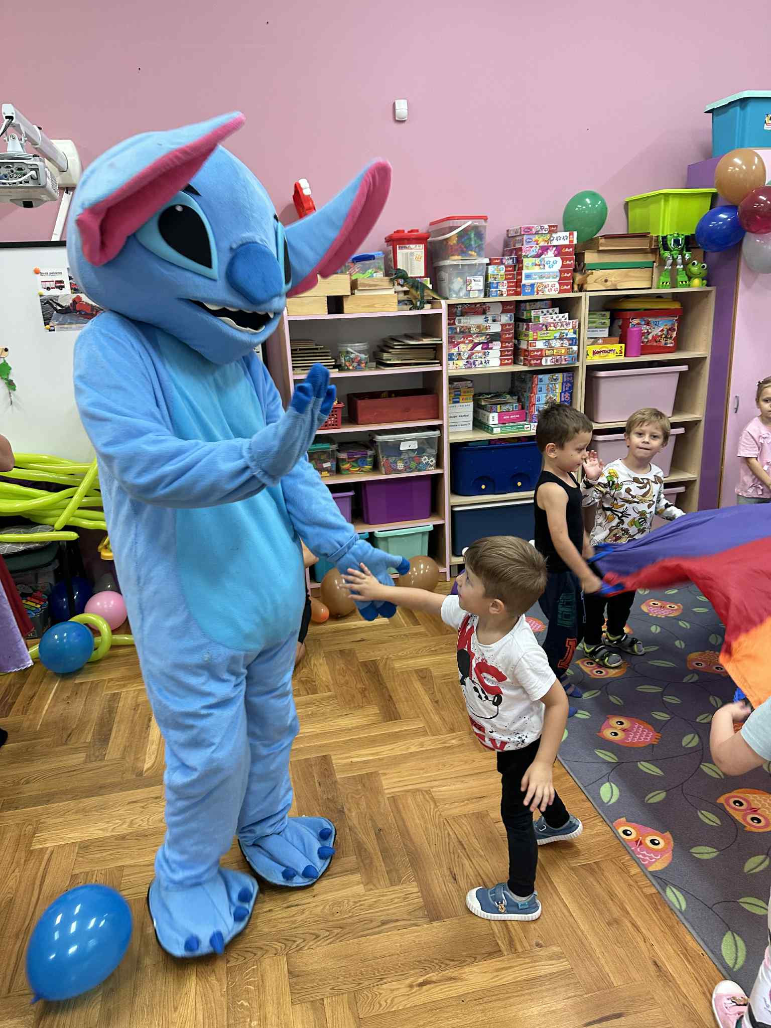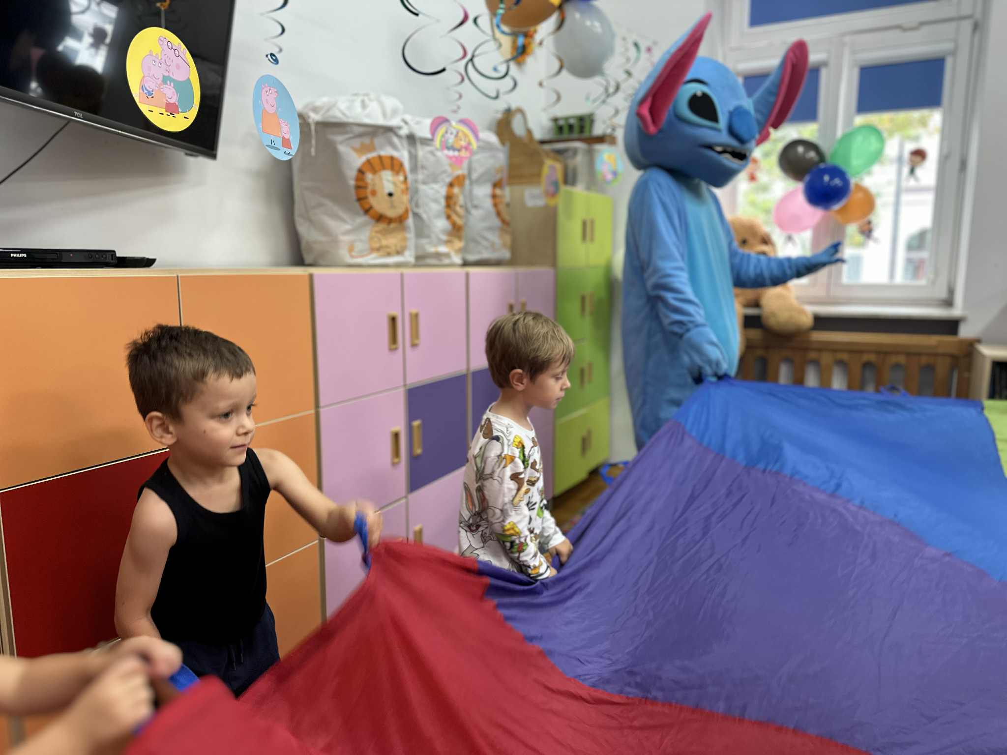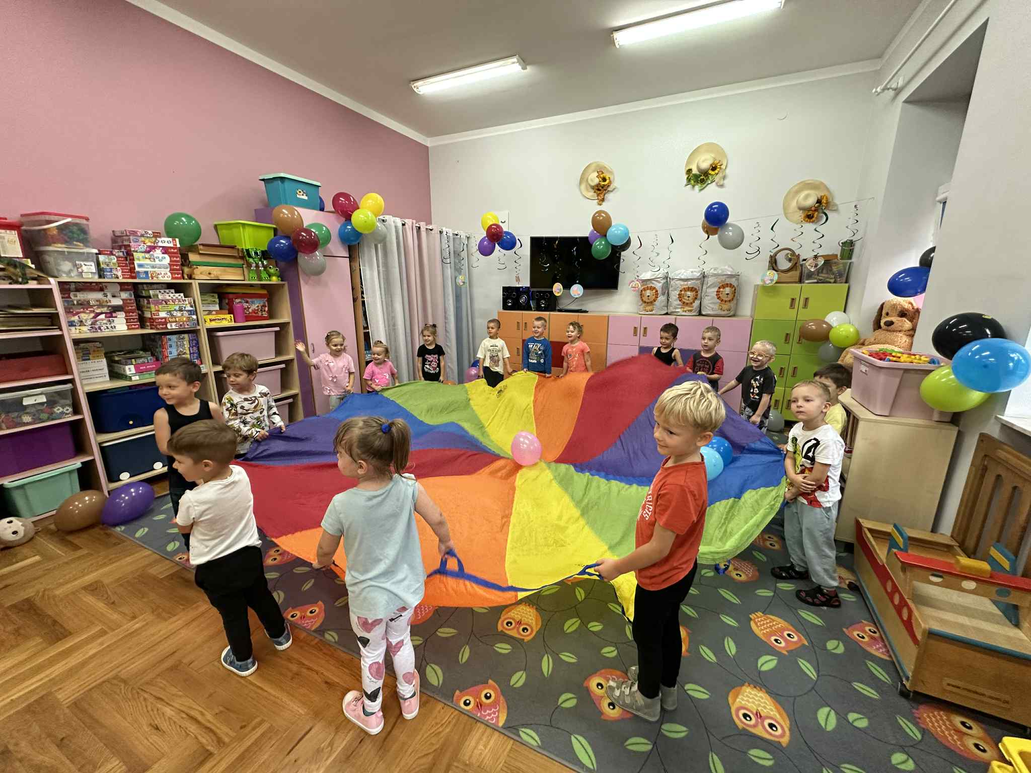 W salach i w ogrodzie rozbrzmiewała muzyka, a dzieci bawiły się wesoło podczas wspólnych tańców, zabaw i swawoli. Nie zabrakło również niespodzianek – każdy przedszkolak otrzymał super upominek, który wywołał wiele uśmiechów i radości.