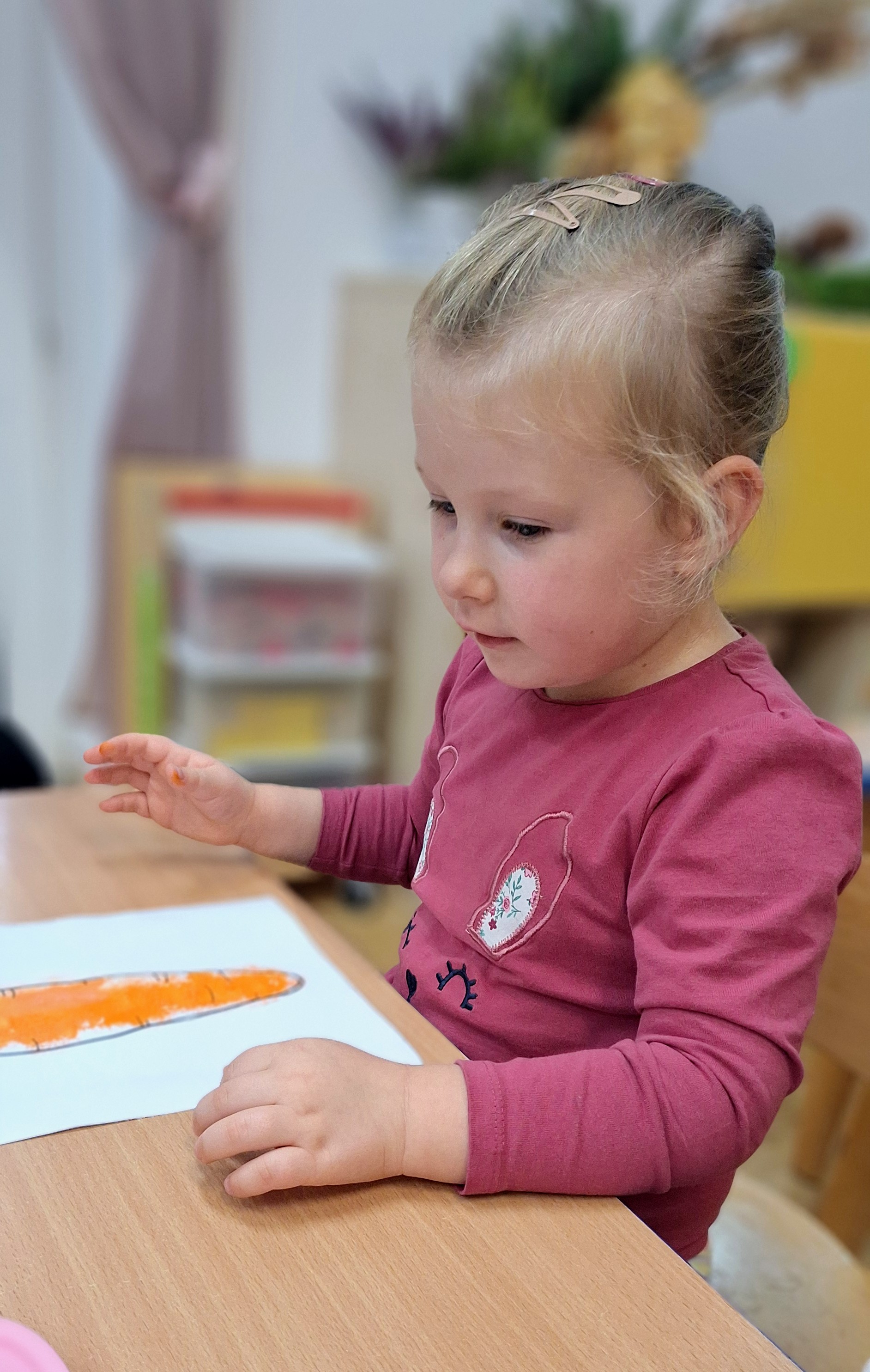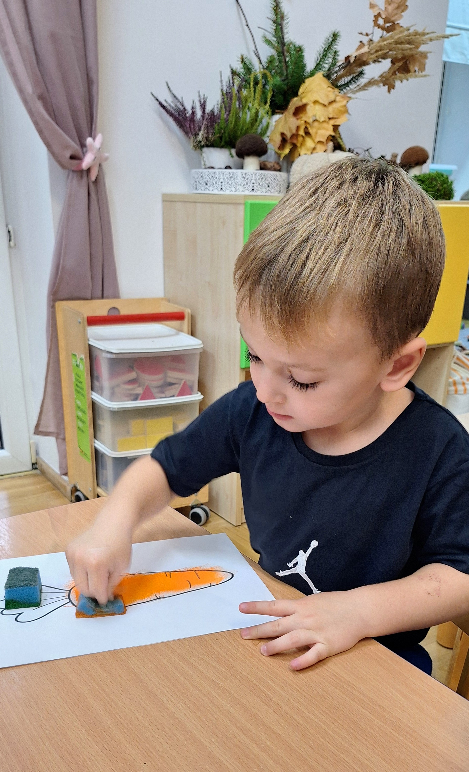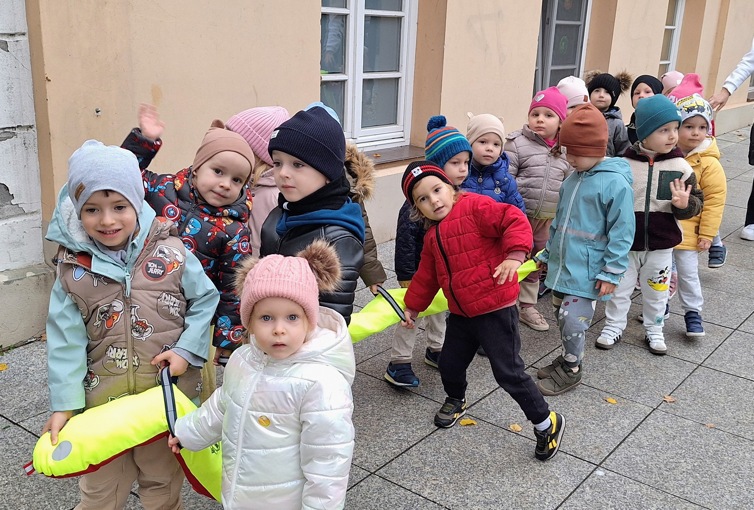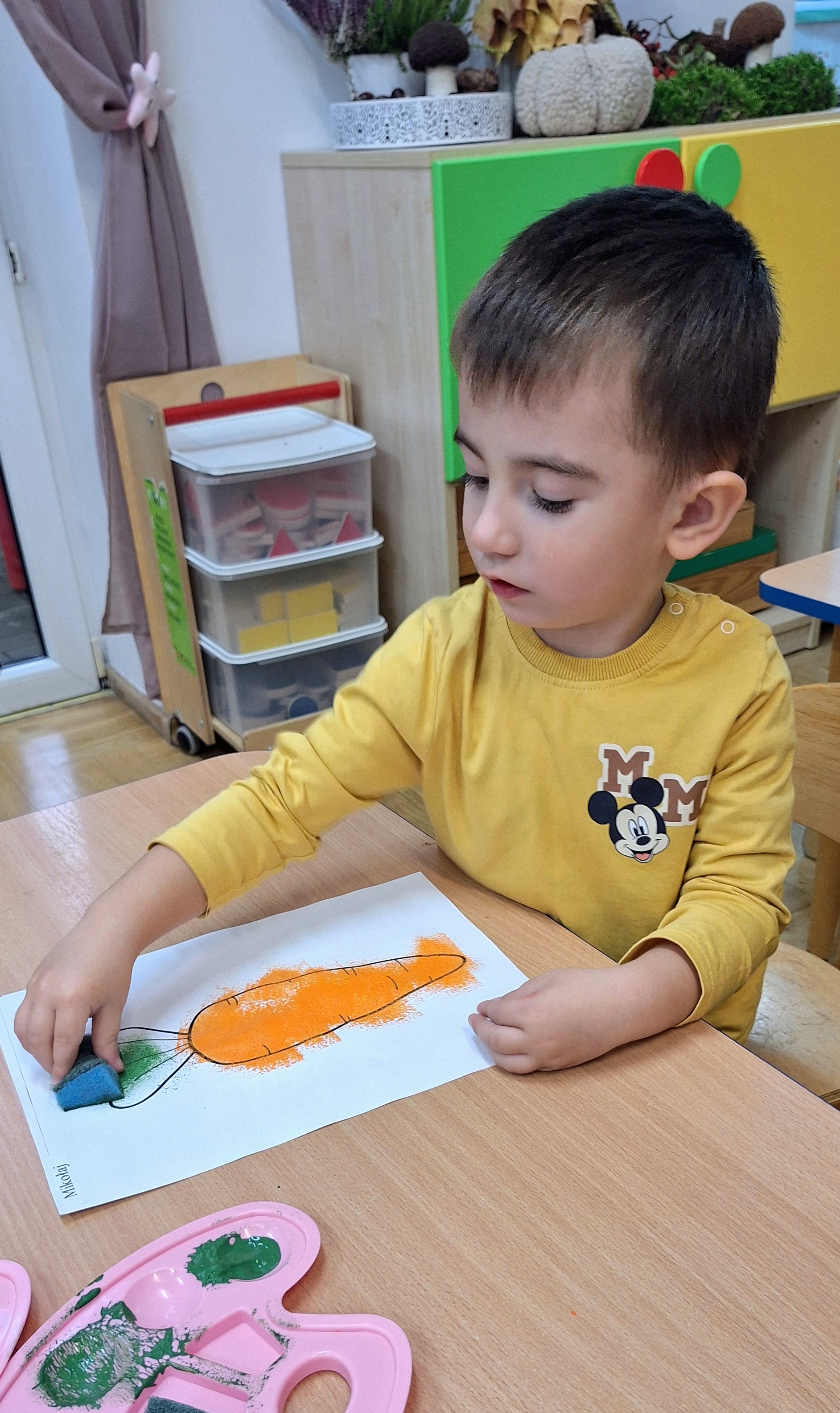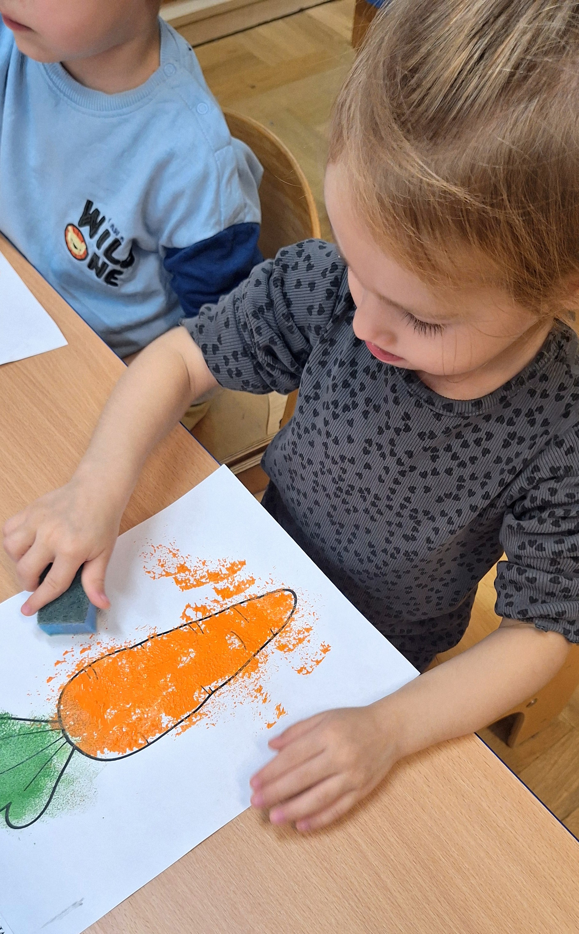 Z tej okazji wybraliśmy się na prawdziwe zakupy — po marchewki i jabłka na pyszny sok. Takie wyjście do sklepu to nie tylko świetna zabawa, ale też nauka: dzieci uczą się bezpiecznego poruszania się w przestrzeni publicznej, kulturalnego zachowania, cierpliwości podczas czekania, a także samodzielności i współpracy w grupie.