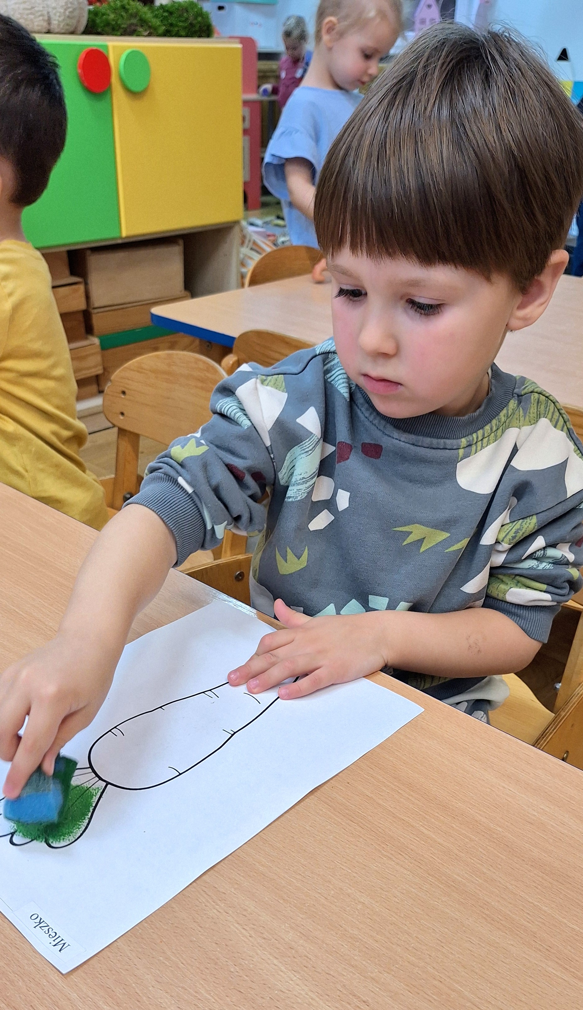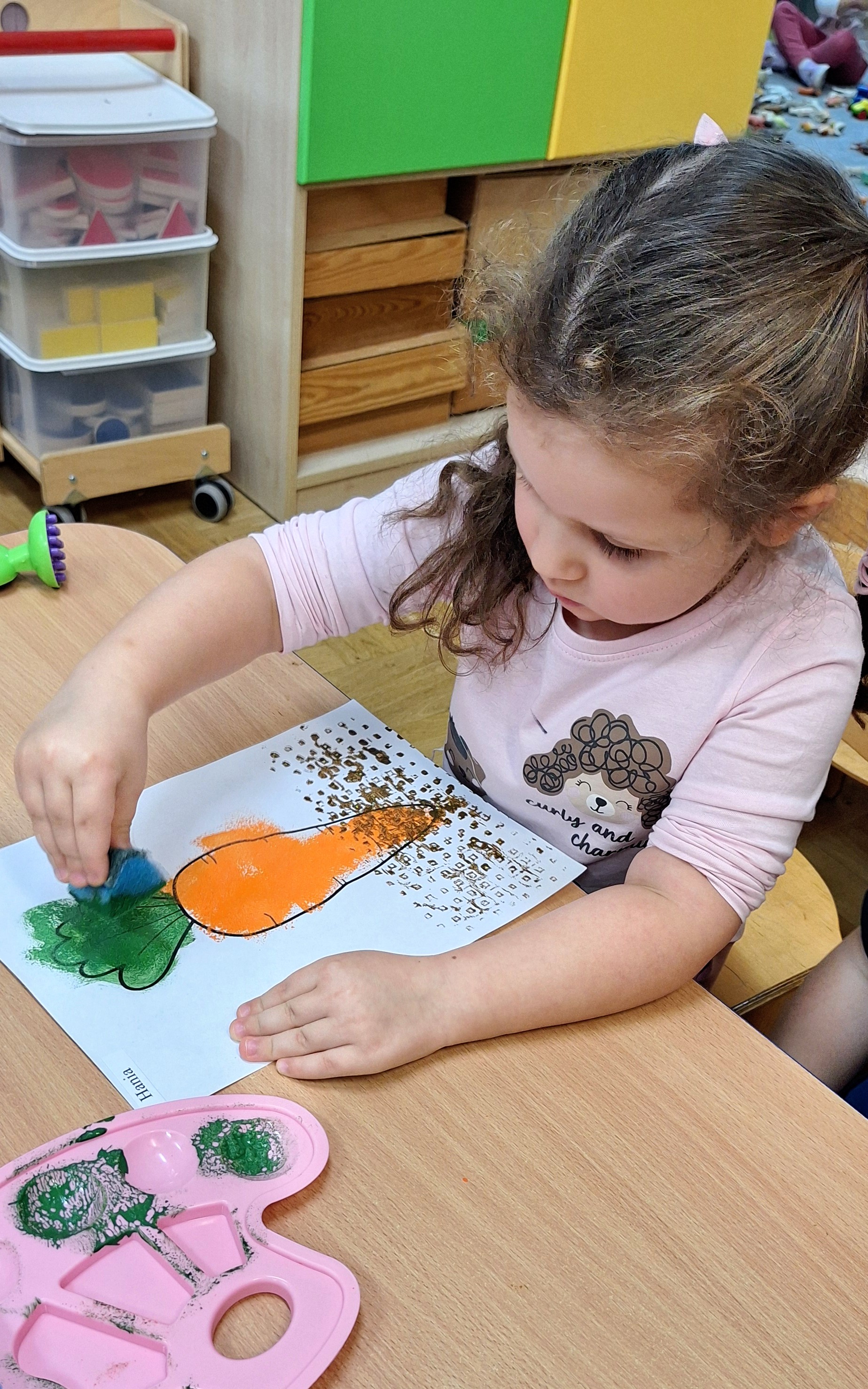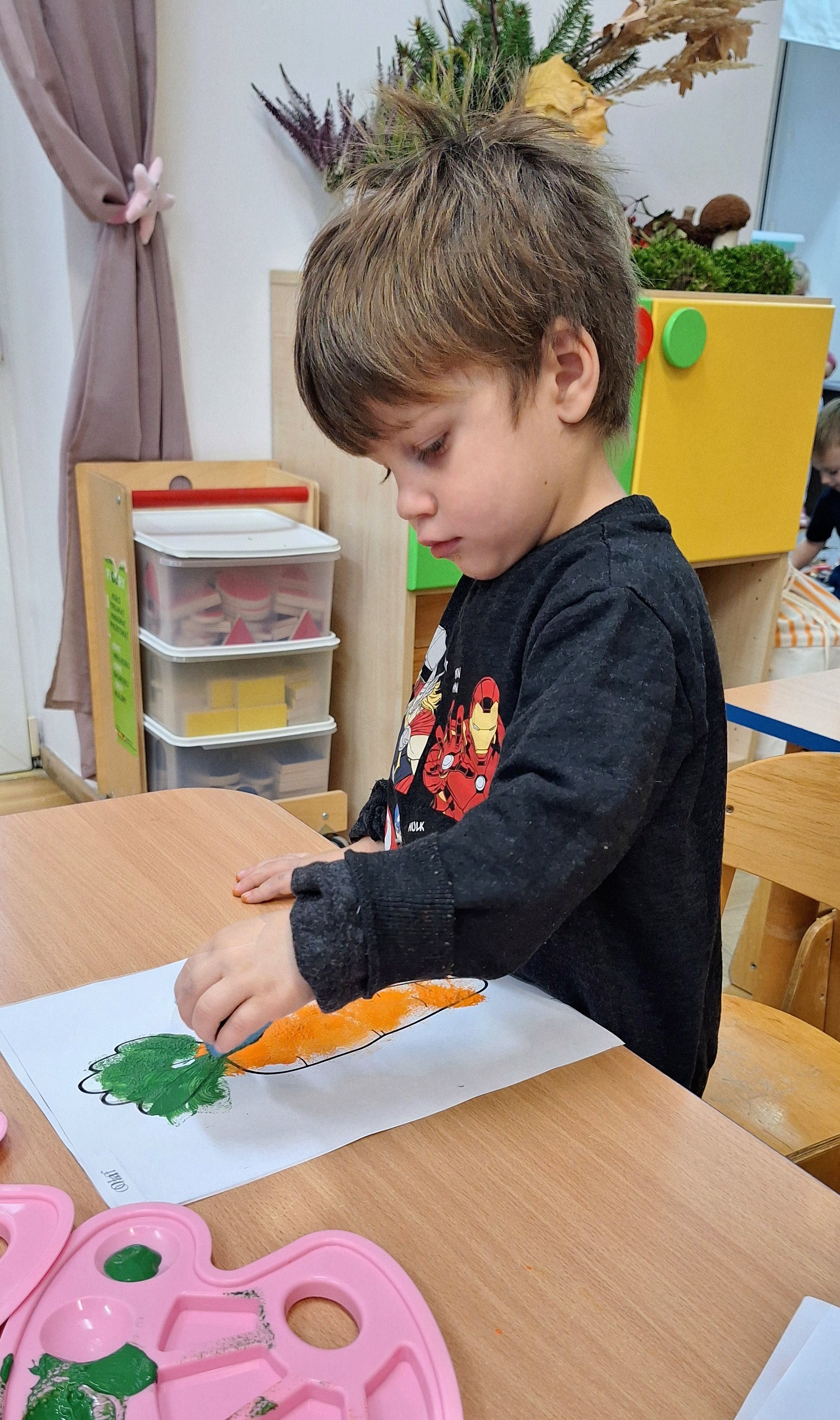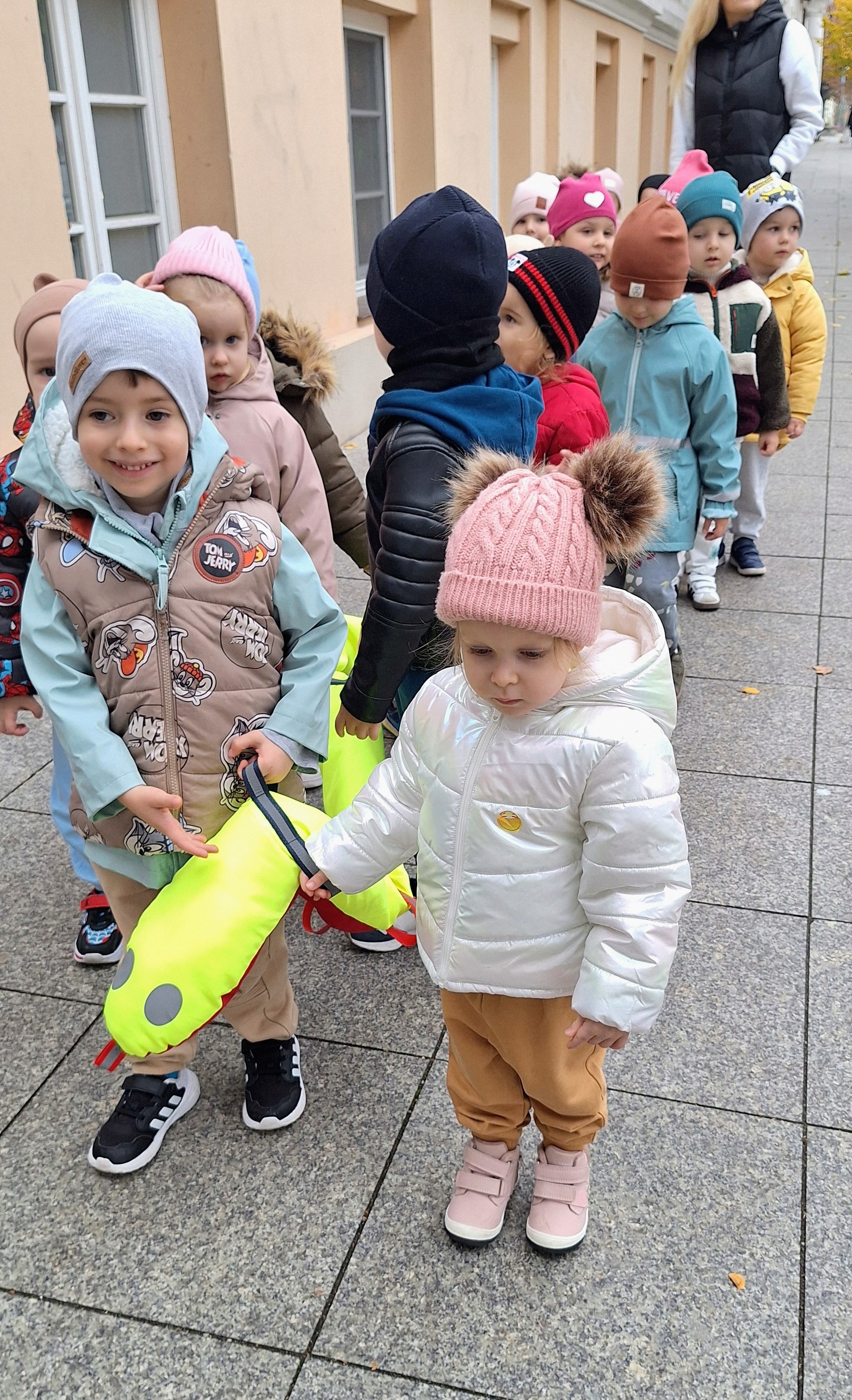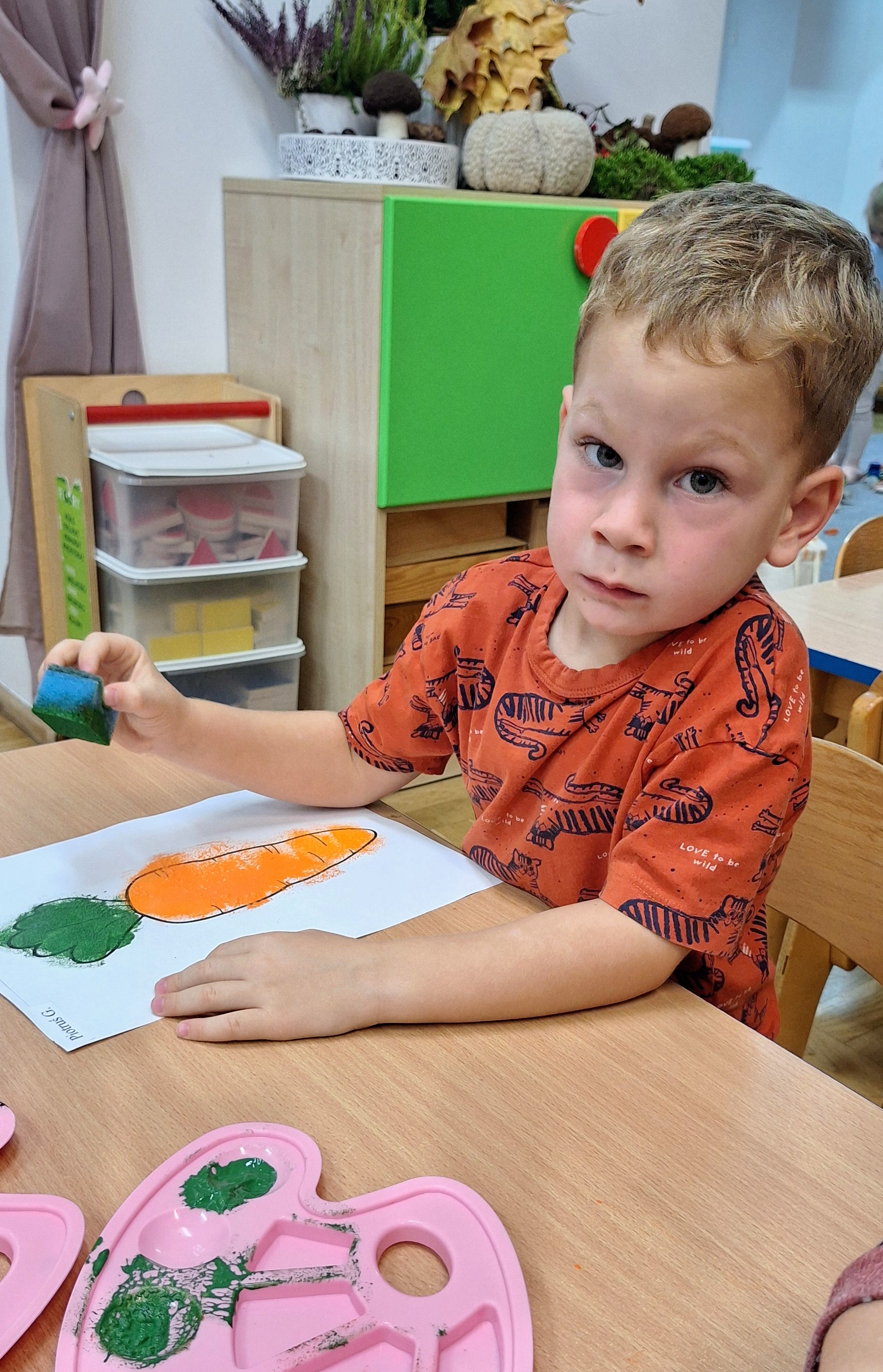 Z tej okazji wybraliśmy się na prawdziwe zakupy — po marchewki i jabłka na pyszny sok. Takie wyjście do sklepu to nie tylko świetna zabawa, ale też nauka: dzieci uczą się bezpiecznego poruszania się w przestrzeni publicznej, kulturalnego zachowania, cierpliwości podczas czekania, a także samodzielności i współpracy w grupie.