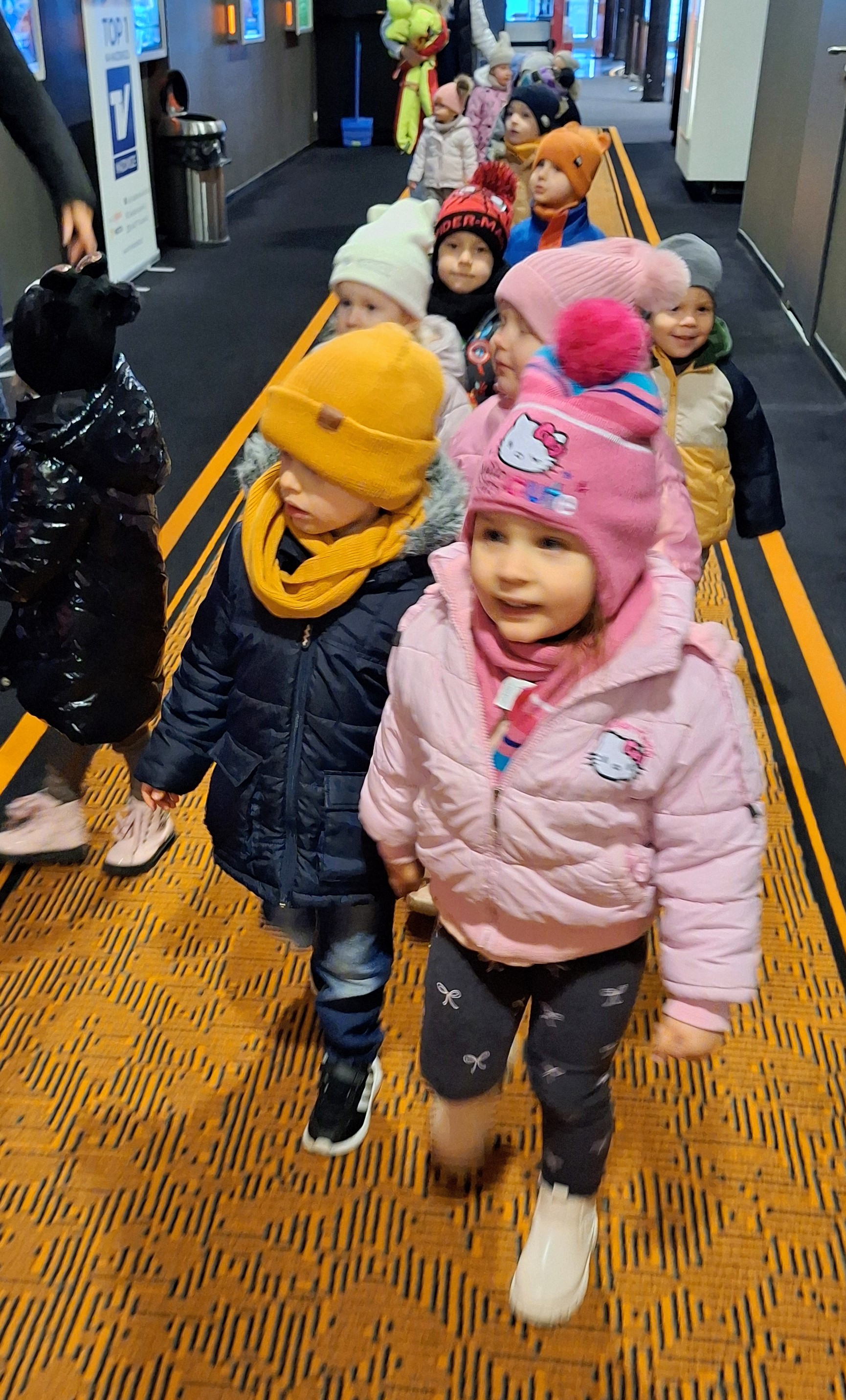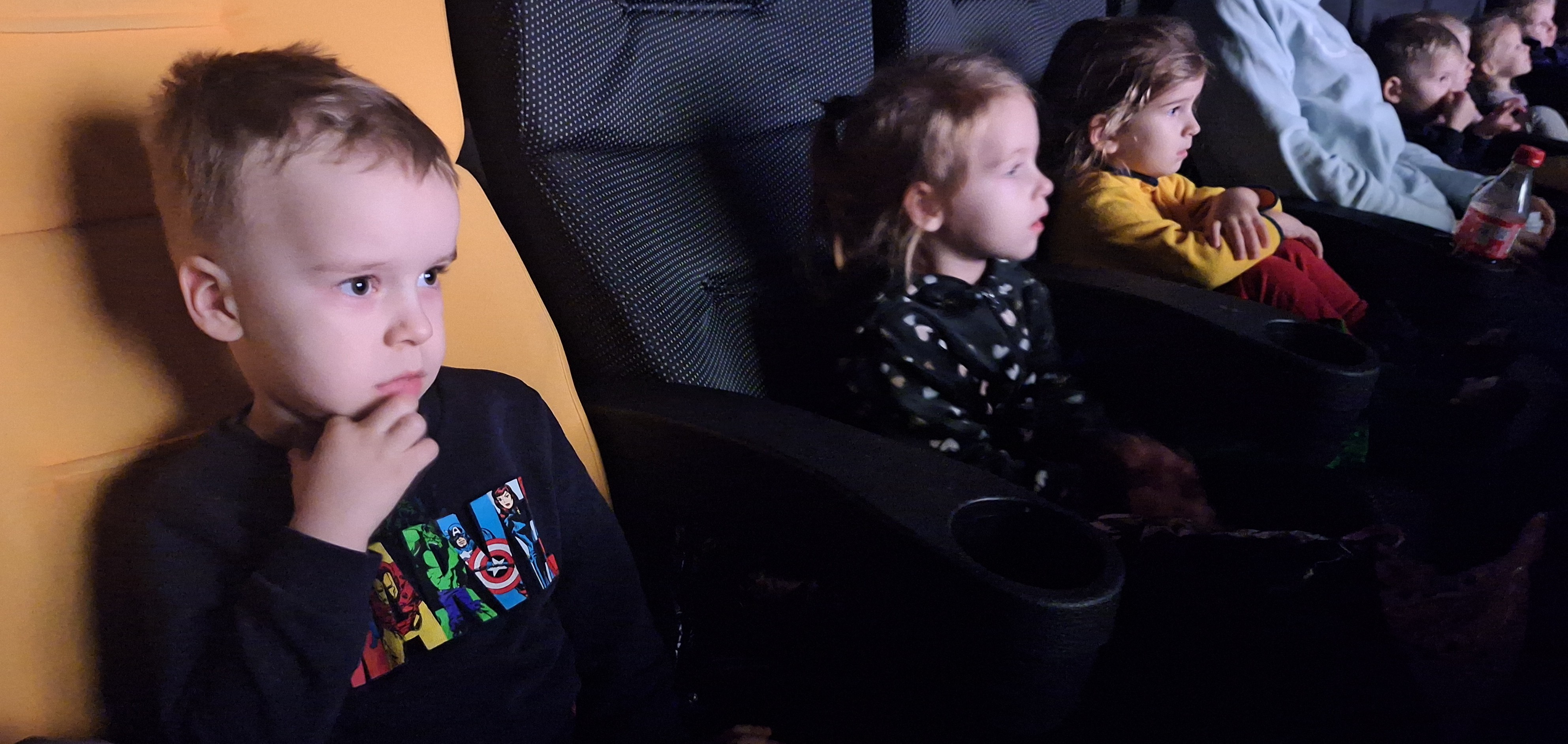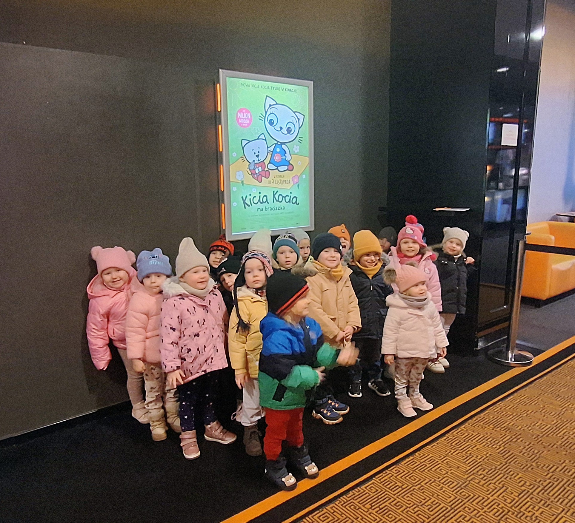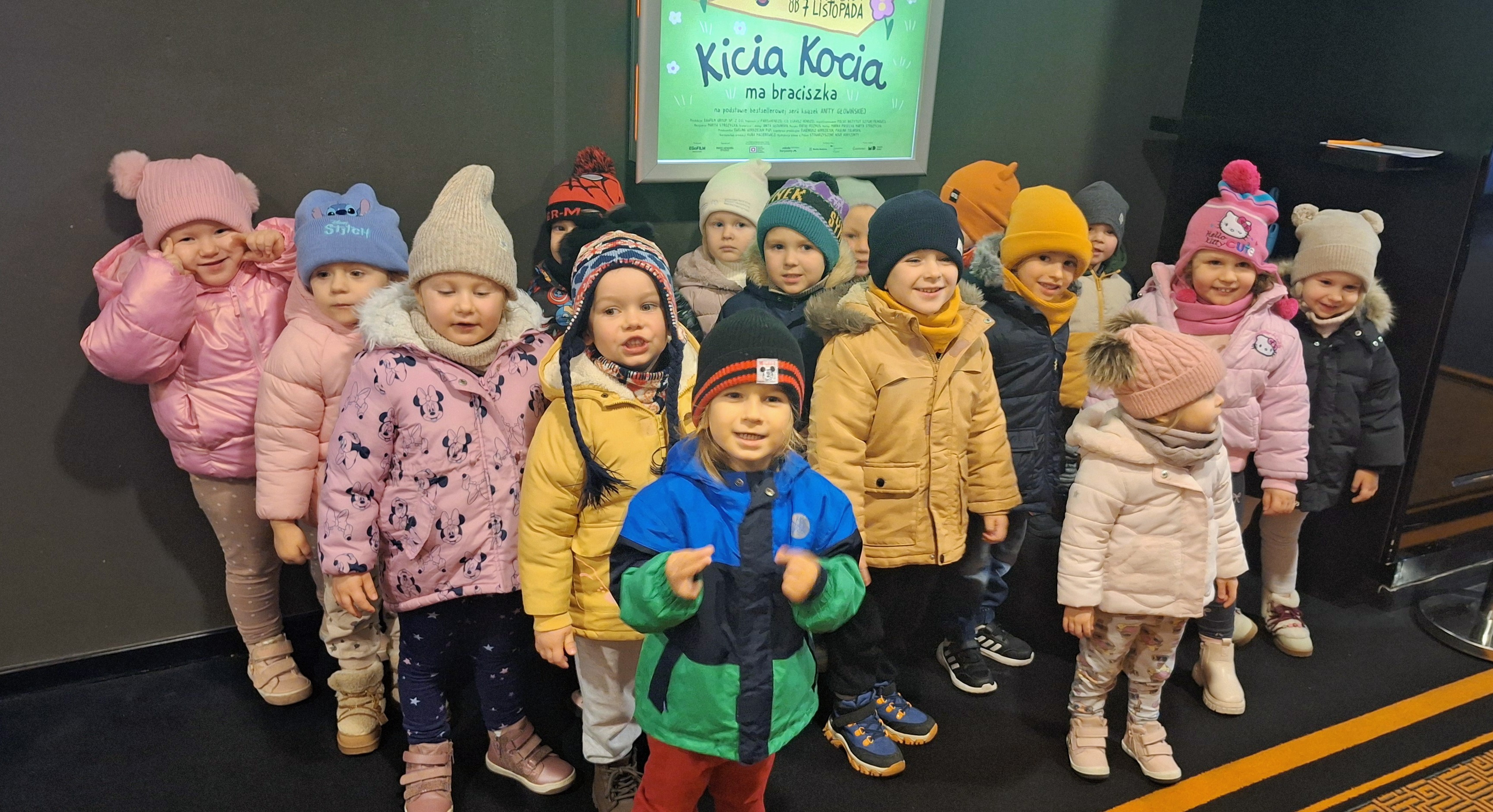Wybraliśmy się do kina na spotkanie z ukochaną Kicią Kocią. Dla wielu był to pierwszy seans na wielkim ekranie – było więc trochę emocji i ogromne zainteresowanie tym, co się działo. Spisaliśmy się znakomicie, a radość po seansie i rozmowy o Kici Koci trwały jeszcze długo po powrocie do przedszkola.