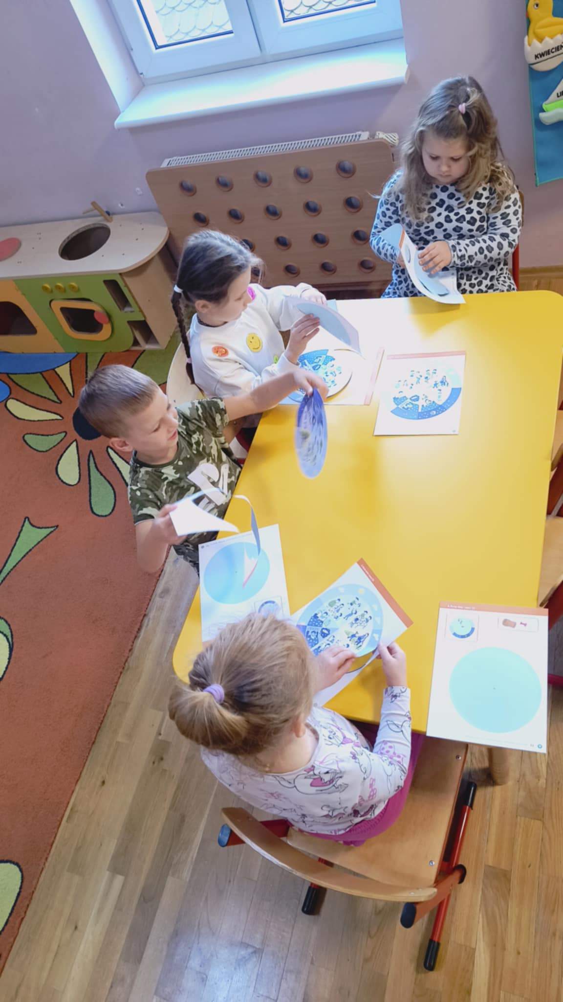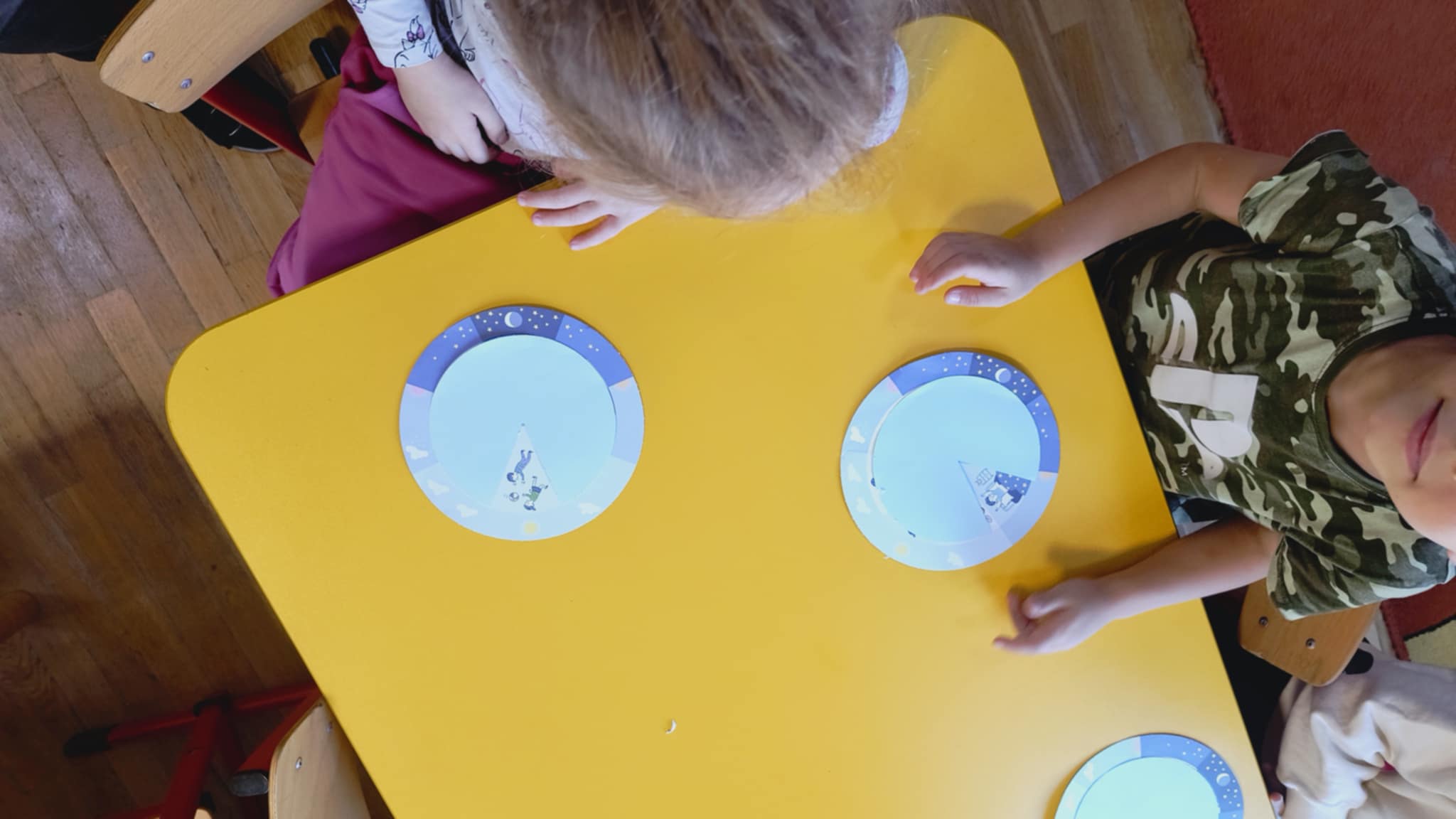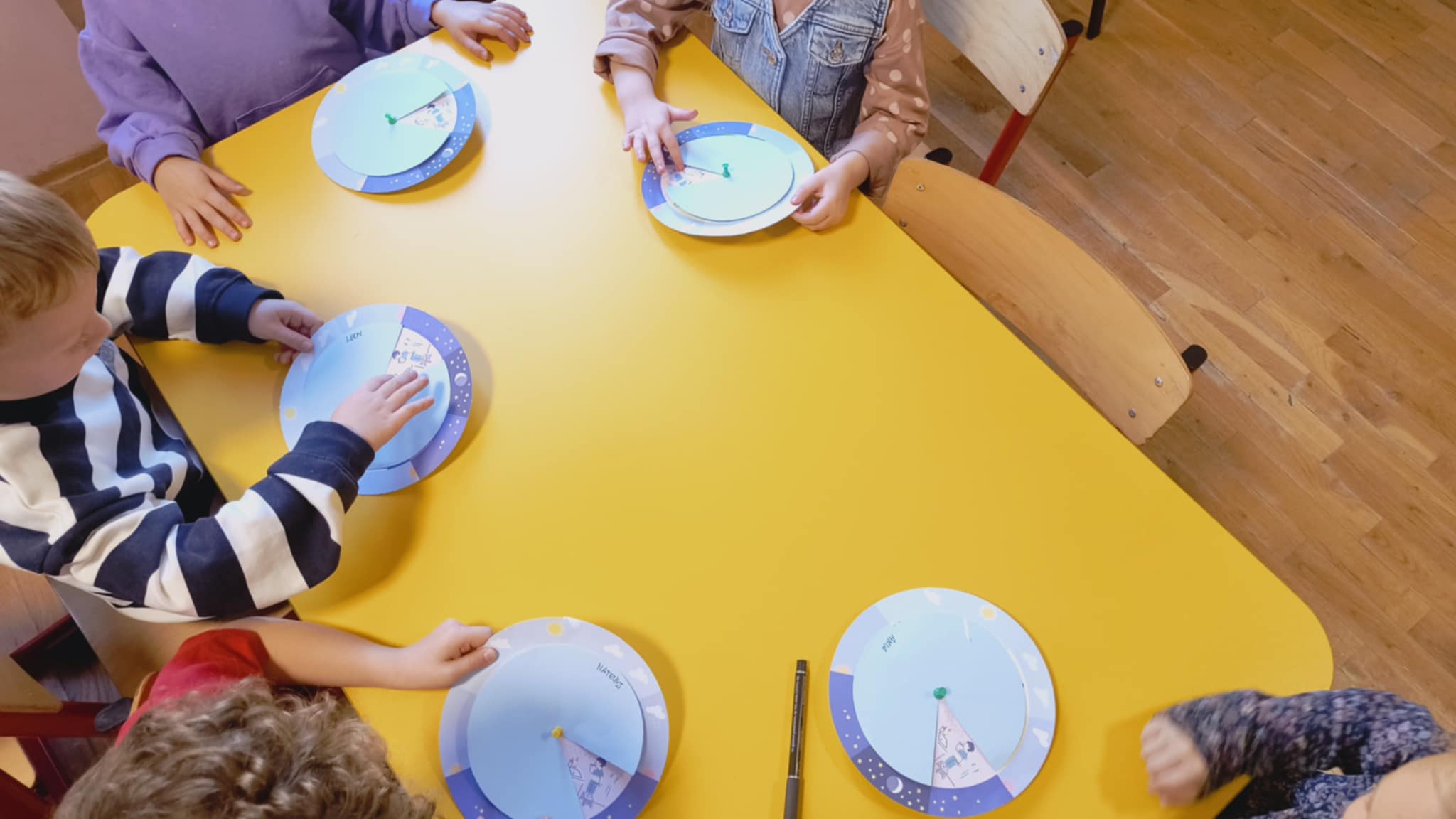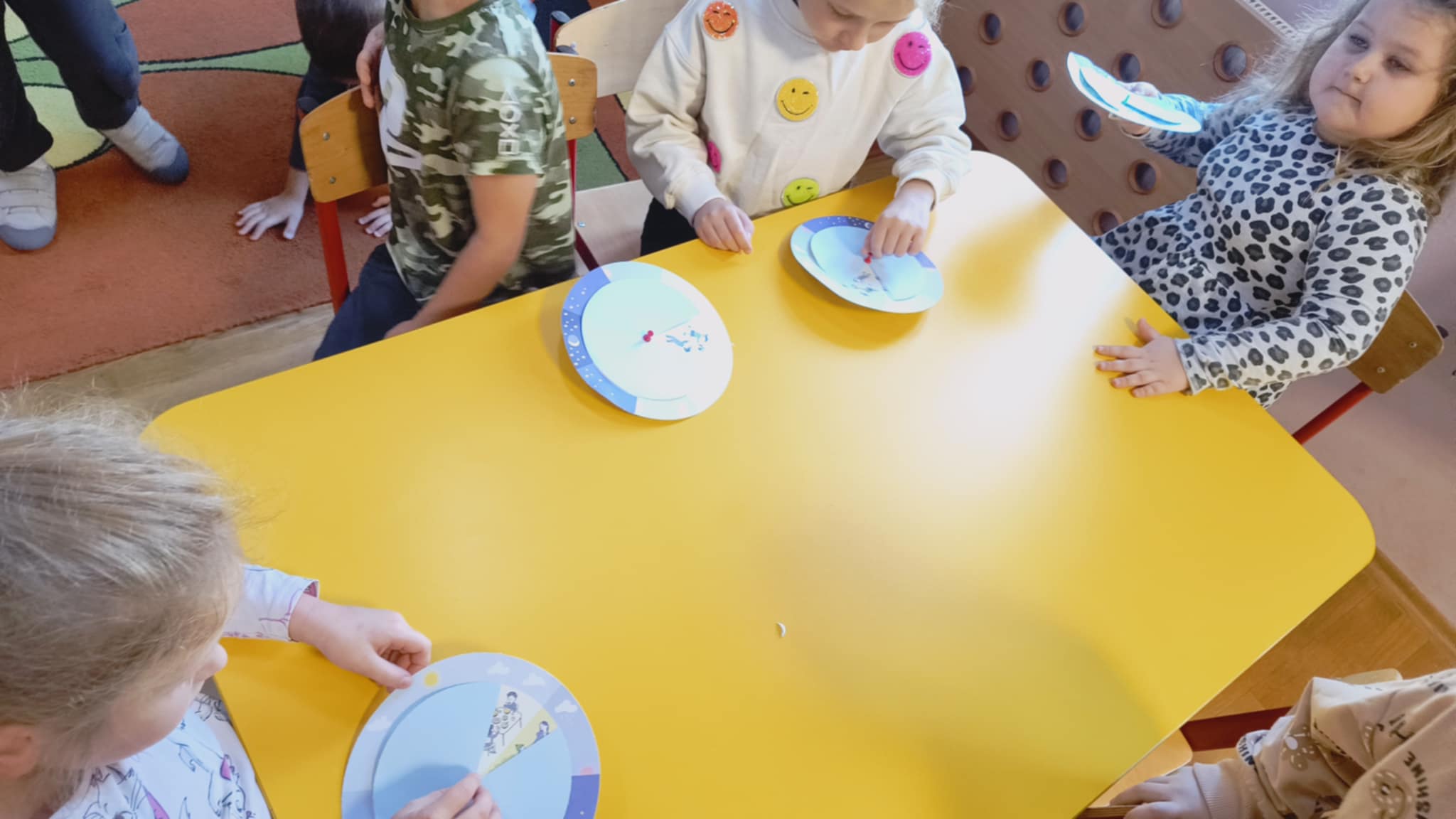 Na zakończenie zajęć przedszkolaki wykonały zabawkę wyznaczającą rytm dnia i nocy, która pomoże im utrwalać zdobyte wiadomości poprzez zabawę. Zajęcia dostarczyły dzieciom wiele radości, a jednocześnie rozbudziły ich ciekawość i chęć poznawania świata.