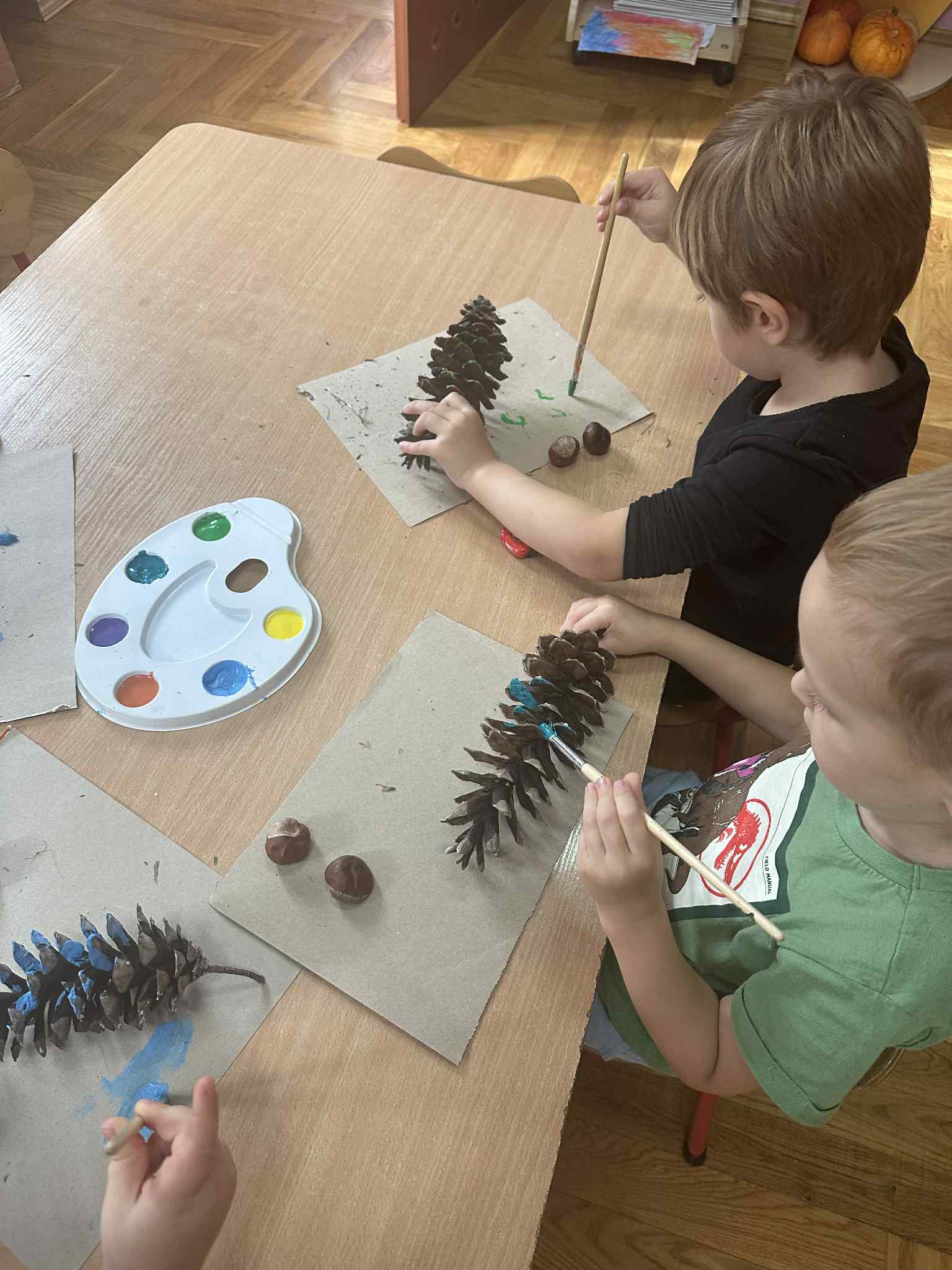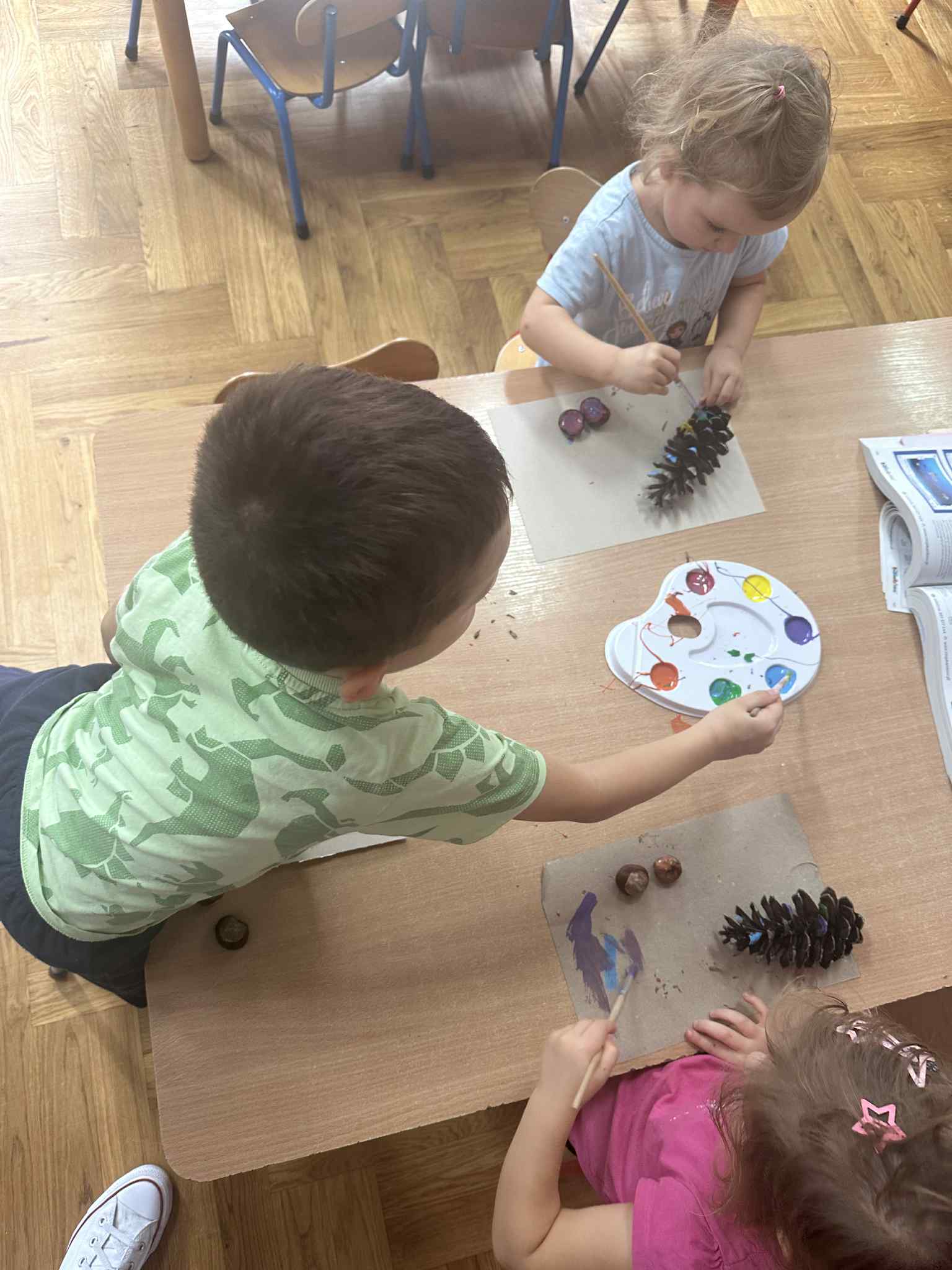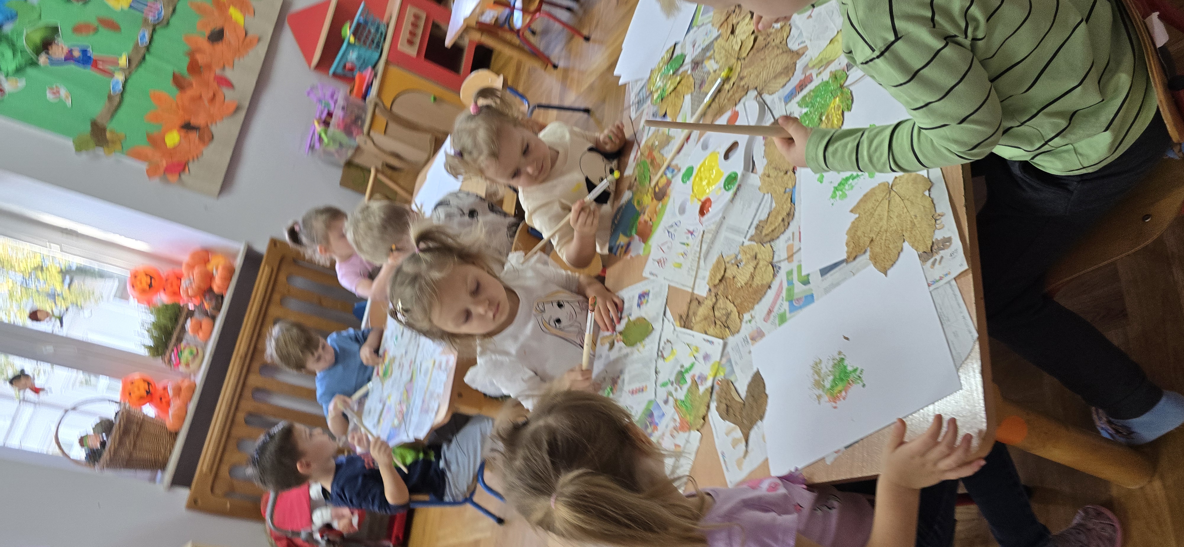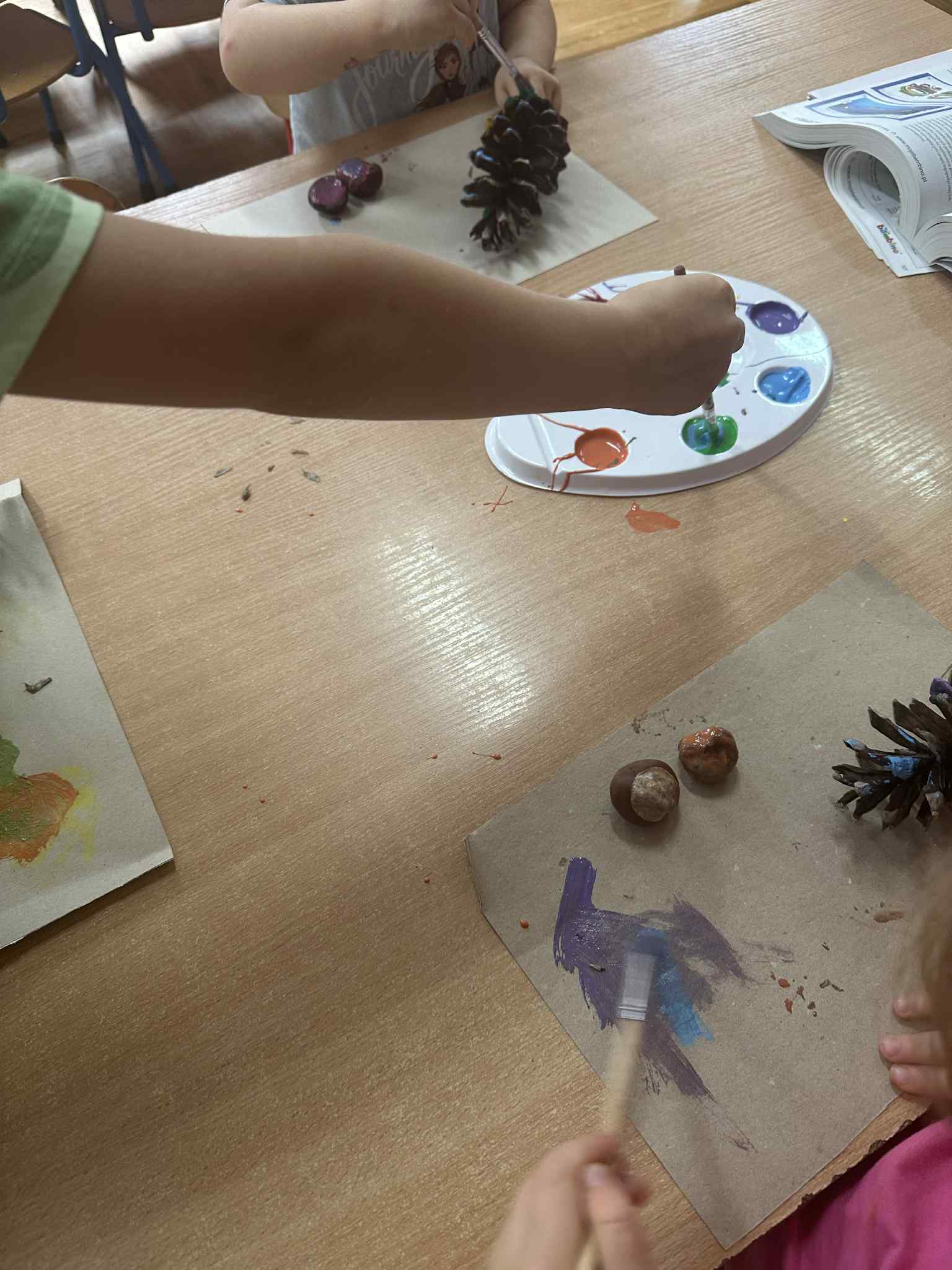 Podczas zajęć dzieci rozwijają swoją wyobraźnię i zdolności manualne, tworząc prace plastyczne z wykorzystaniem naturalnych materiałów – takich jak liście, szyszki, kasztany, kamyki, patyczki czy kora drzew. W połączeniu z różnorodnymi materiałami plastycznymi (plastelina, masa solna, farby, papier, tkaniny) powstają wyjątkowe kompozycje inspirowane naturą i porami roku.