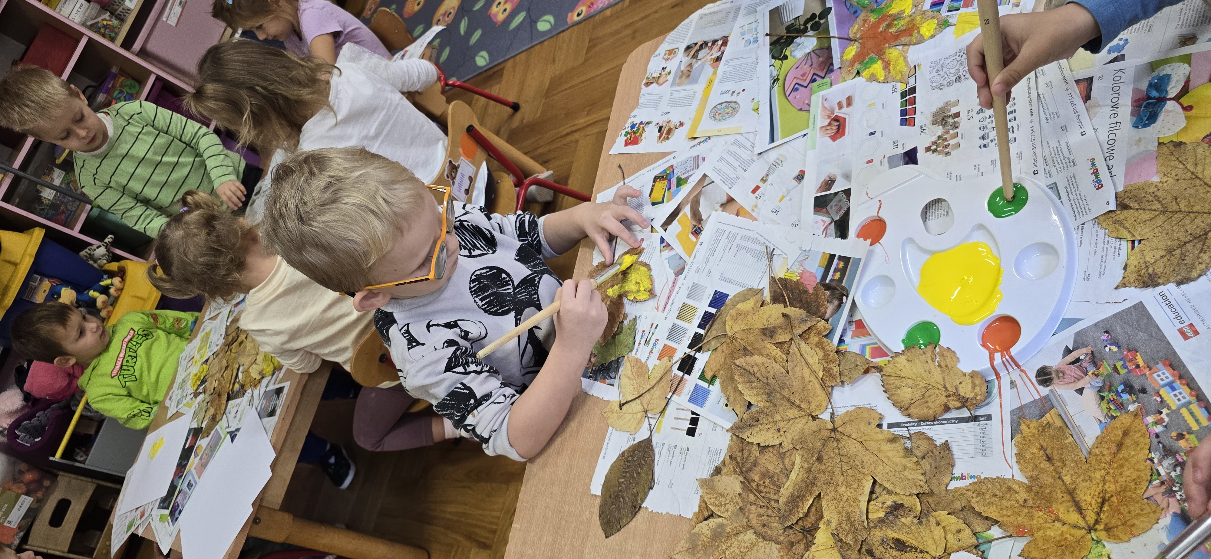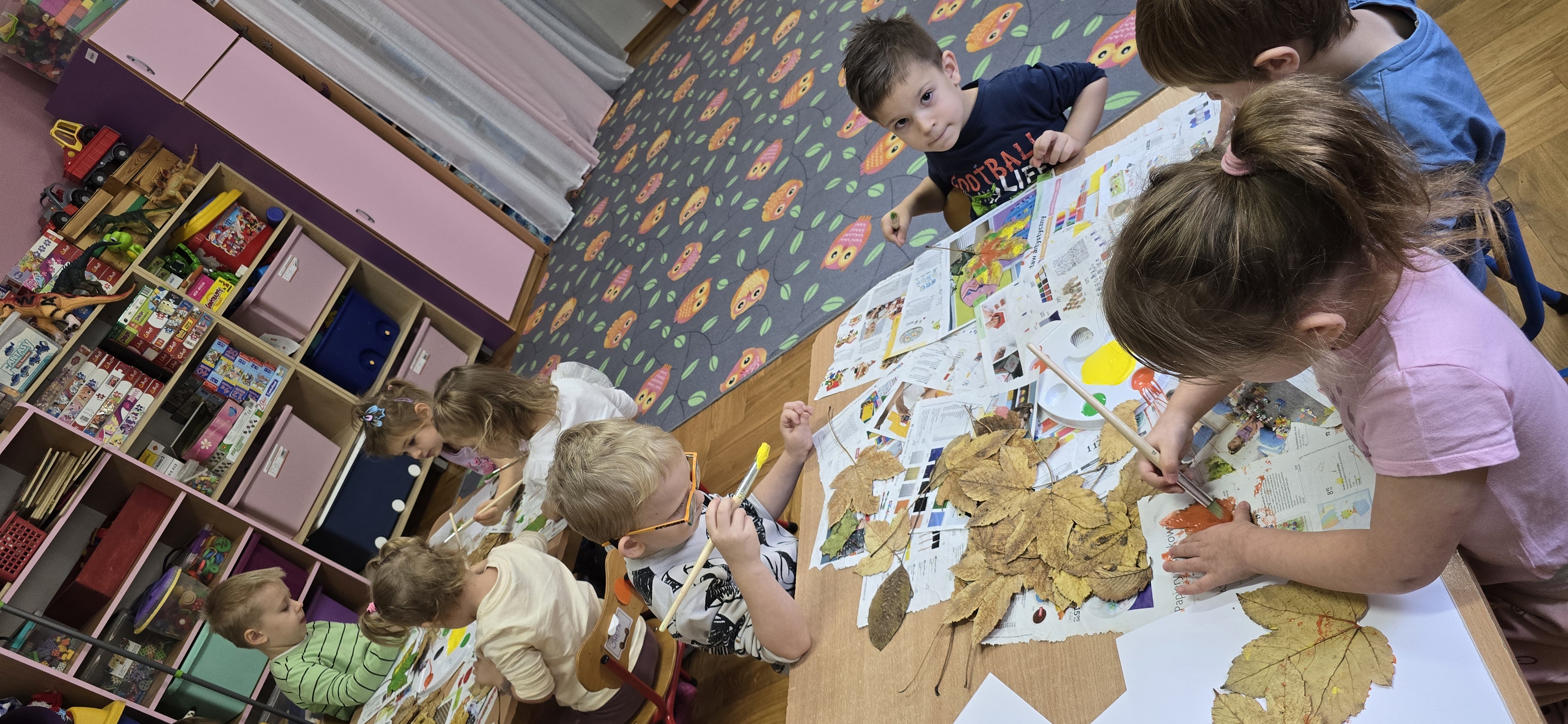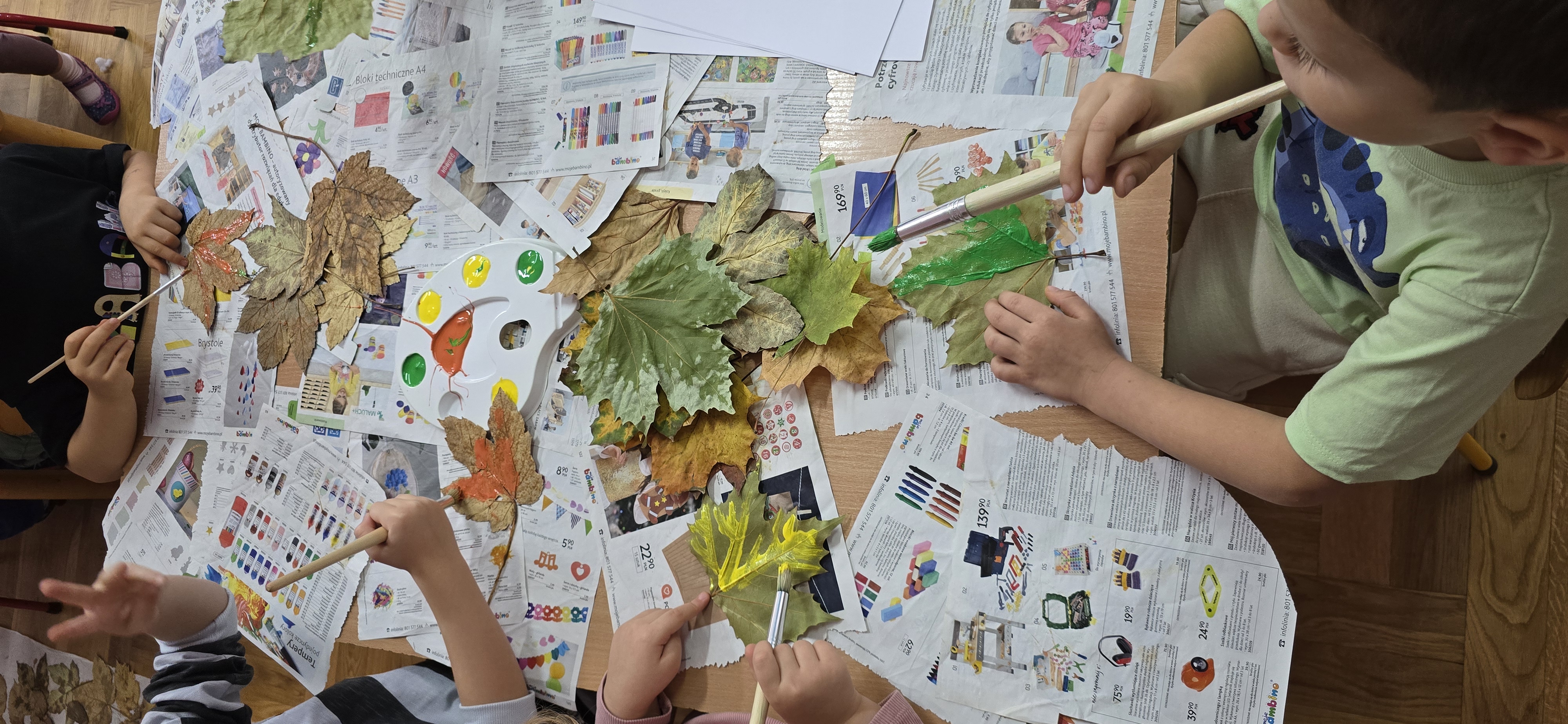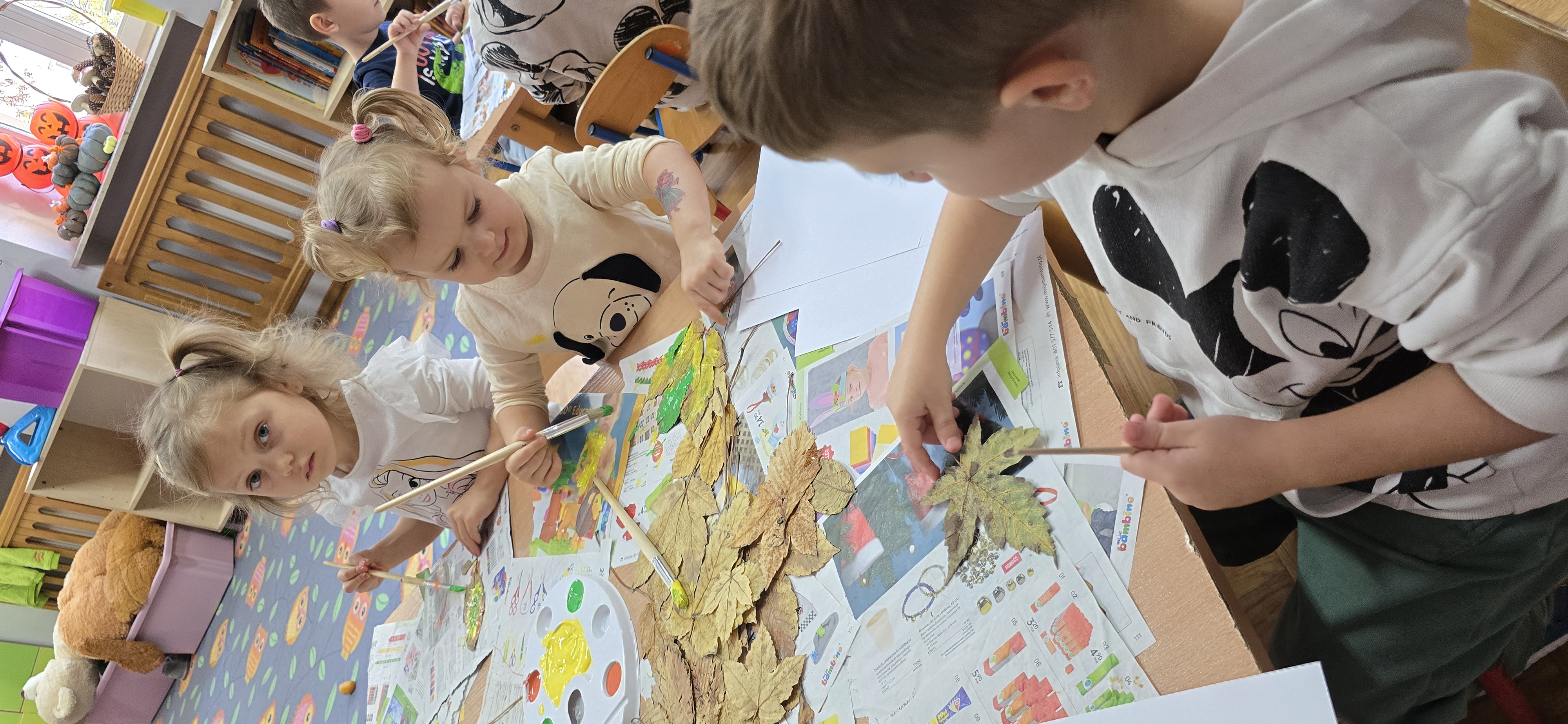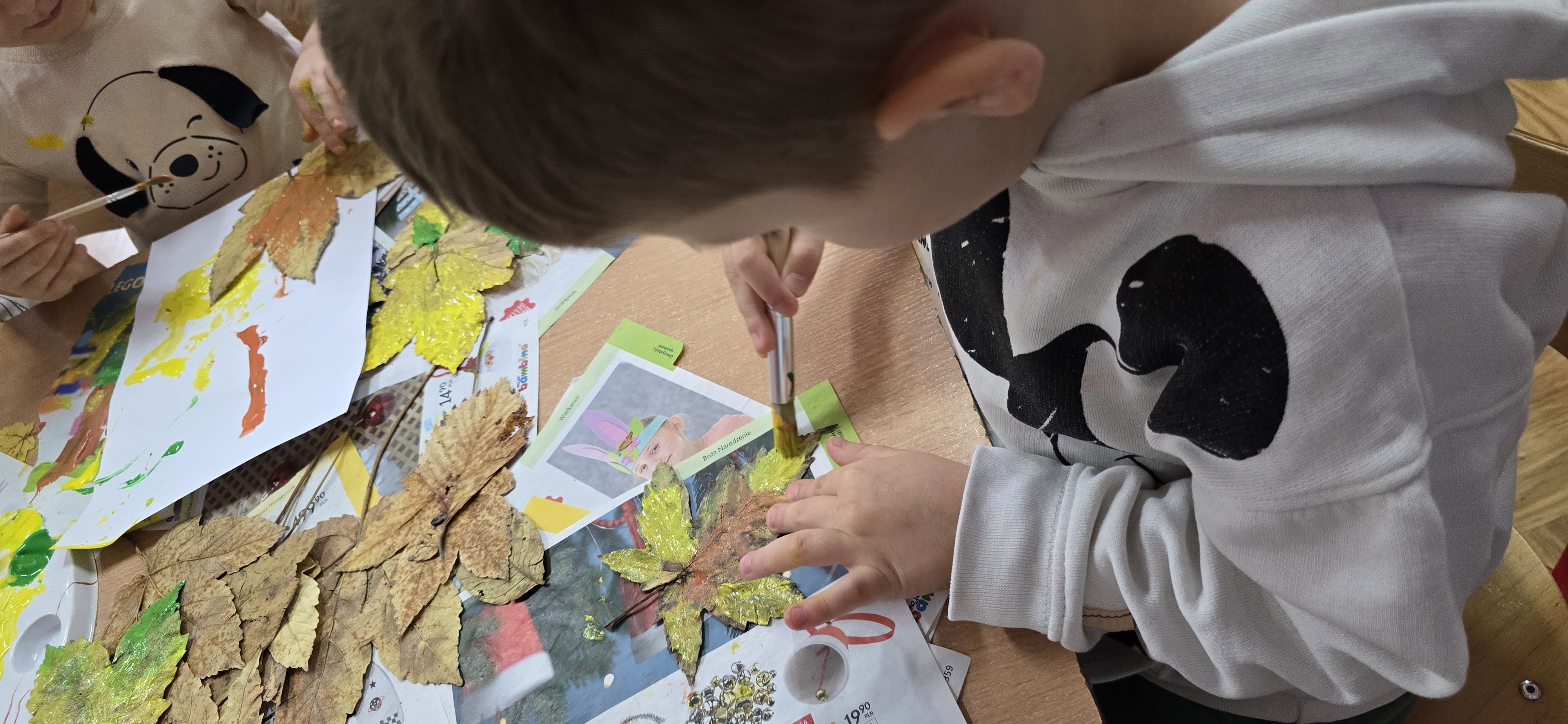 Podczas zajęć dzieci rozwijają swoją wyobraźnię i zdolności manualne, tworząc prace plastyczne z wykorzystaniem naturalnych materiałów – takich jak liście, szyszki, kasztany, kamyki, patyczki czy kora drzew. W połączeniu z różnorodnymi materiałami plastycznymi (plastelina, masa solna, farby, papier, tkaniny) powstają wyjątkowe kompozycje inspirowane naturą i porami roku.