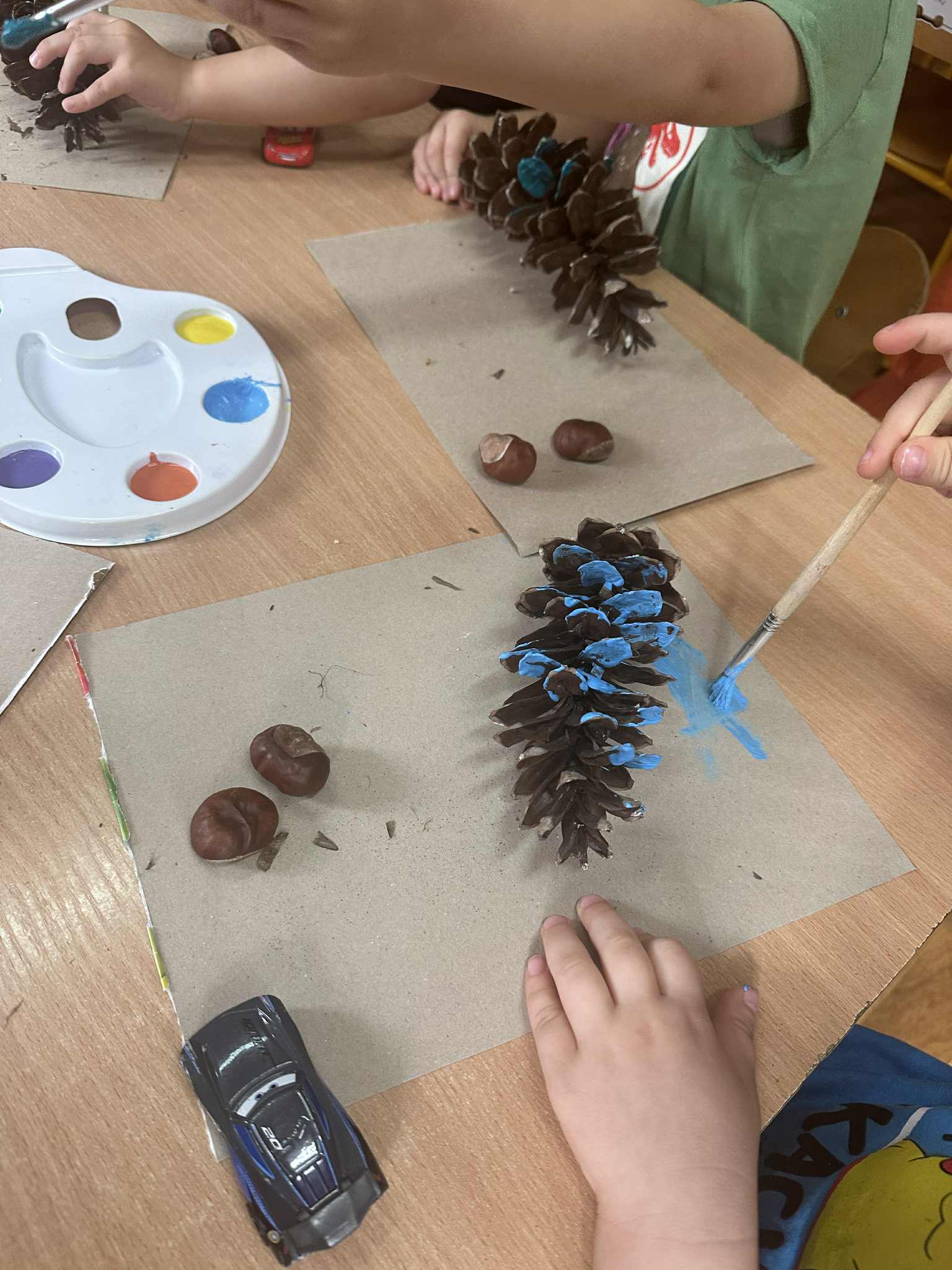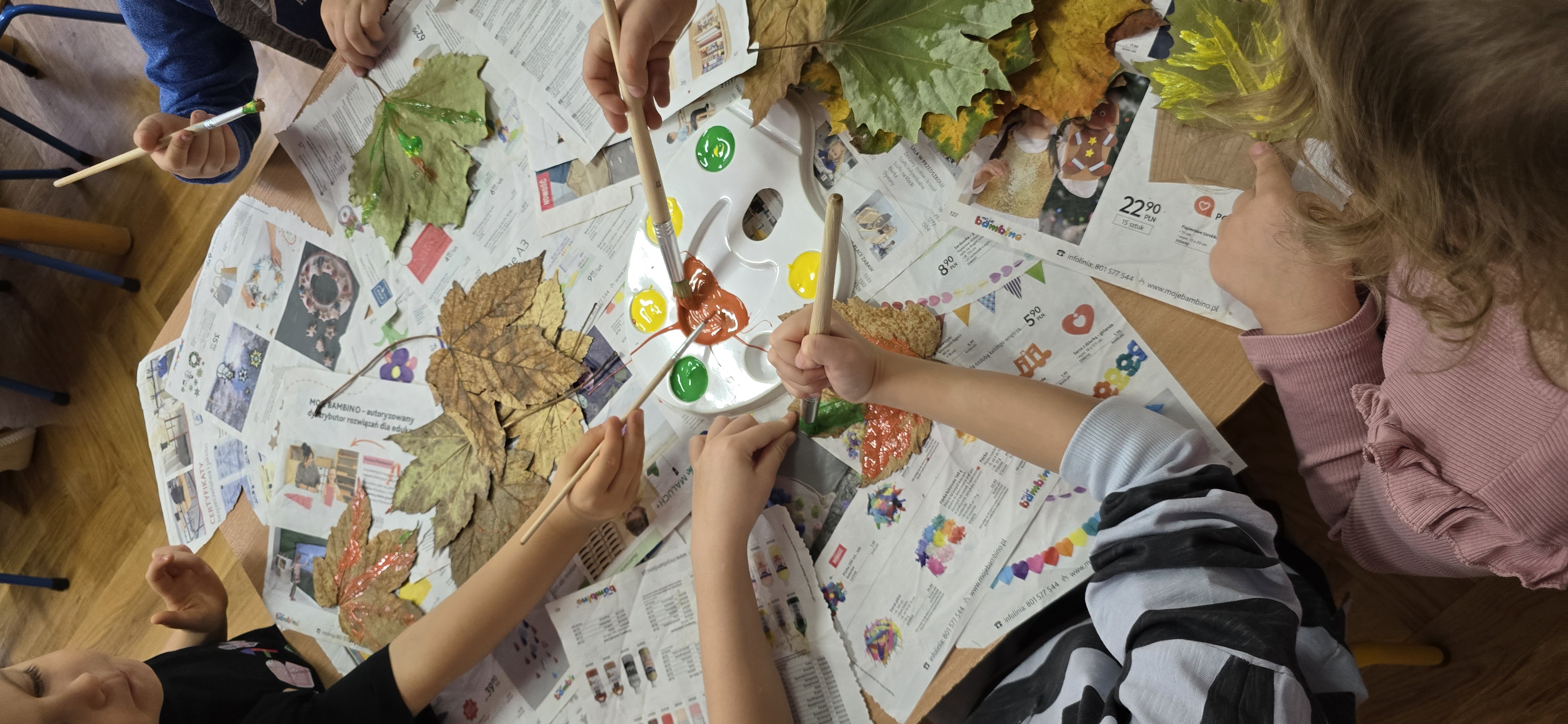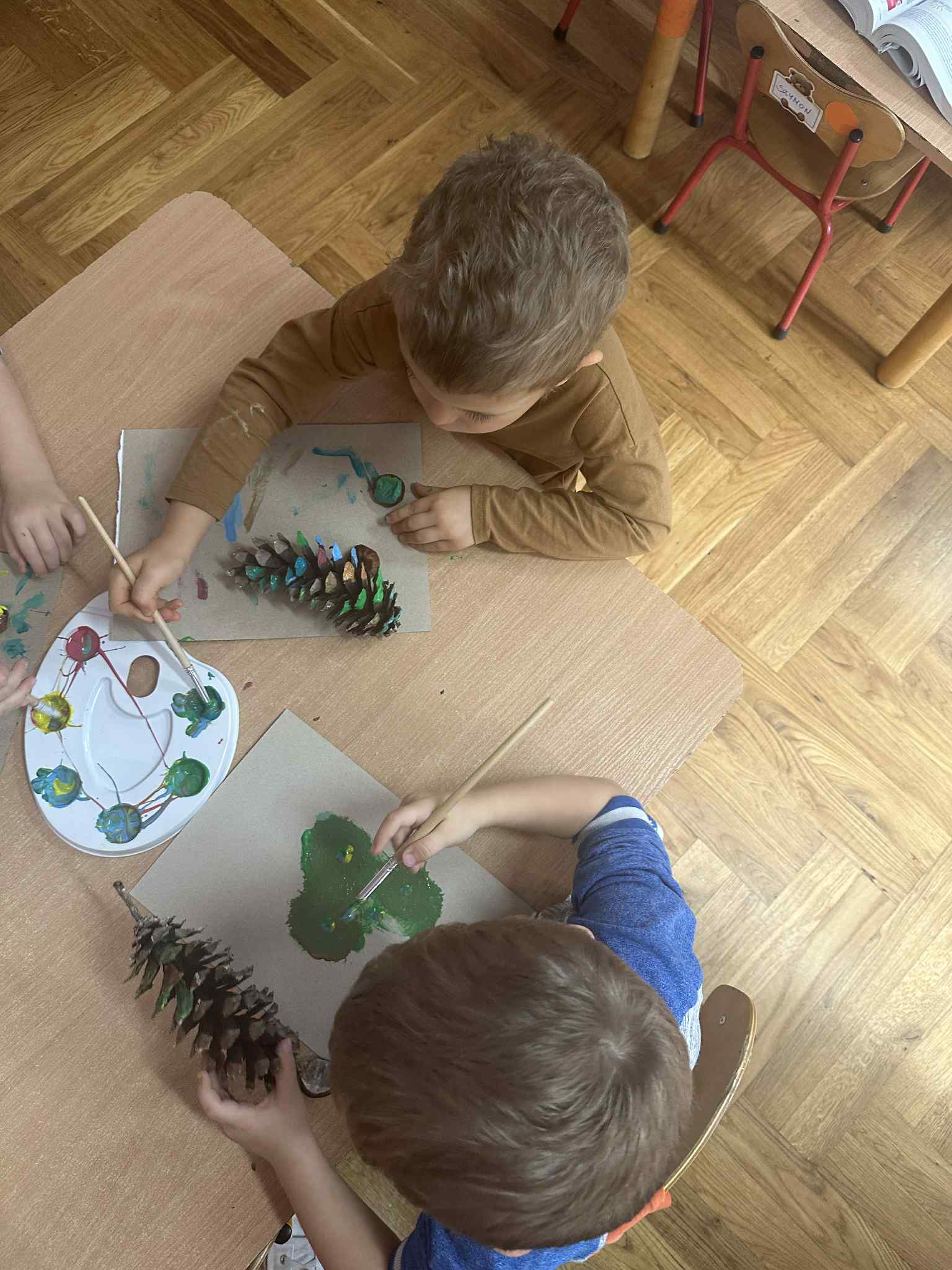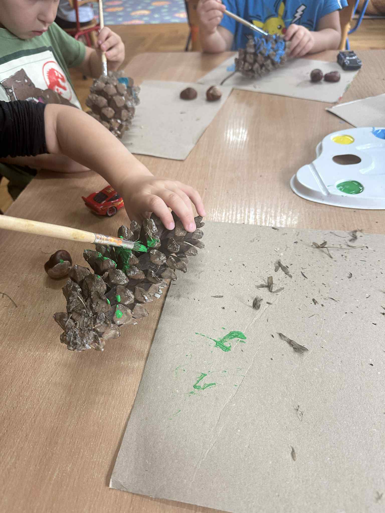 Podczas zajęć dzieci rozwijają swoją wyobraźnię i zdolności manualne, tworząc prace plastyczne z wykorzystaniem naturalnych materiałów – takich jak liście, szyszki, kasztany, kamyki, patyczki czy kora drzew. W połączeniu z różnorodnymi materiałami plastycznymi (plastelina, masa solna, farby, papier, tkaniny) powstają wyjątkowe kompozycje inspirowane naturą i porami roku.
