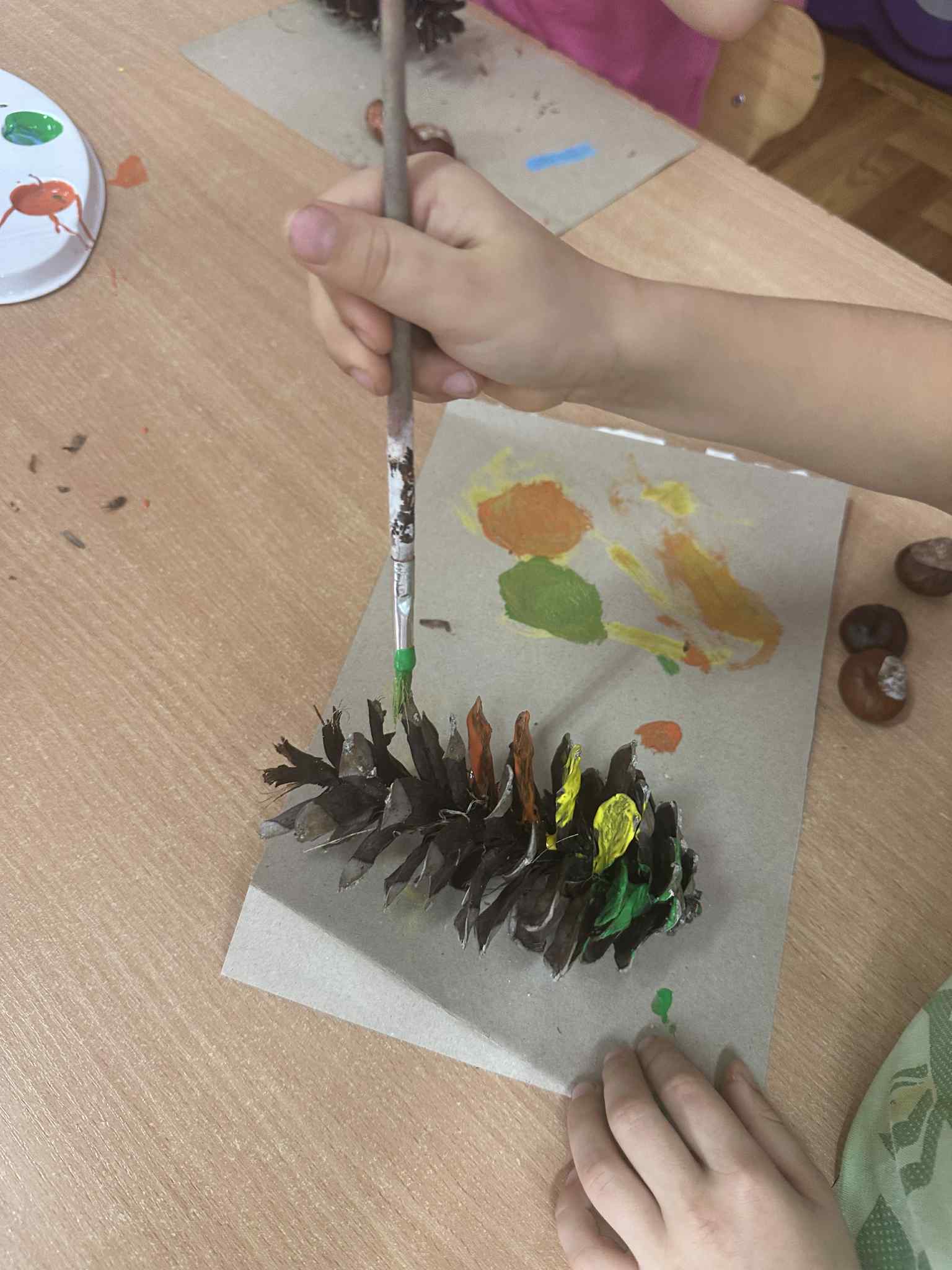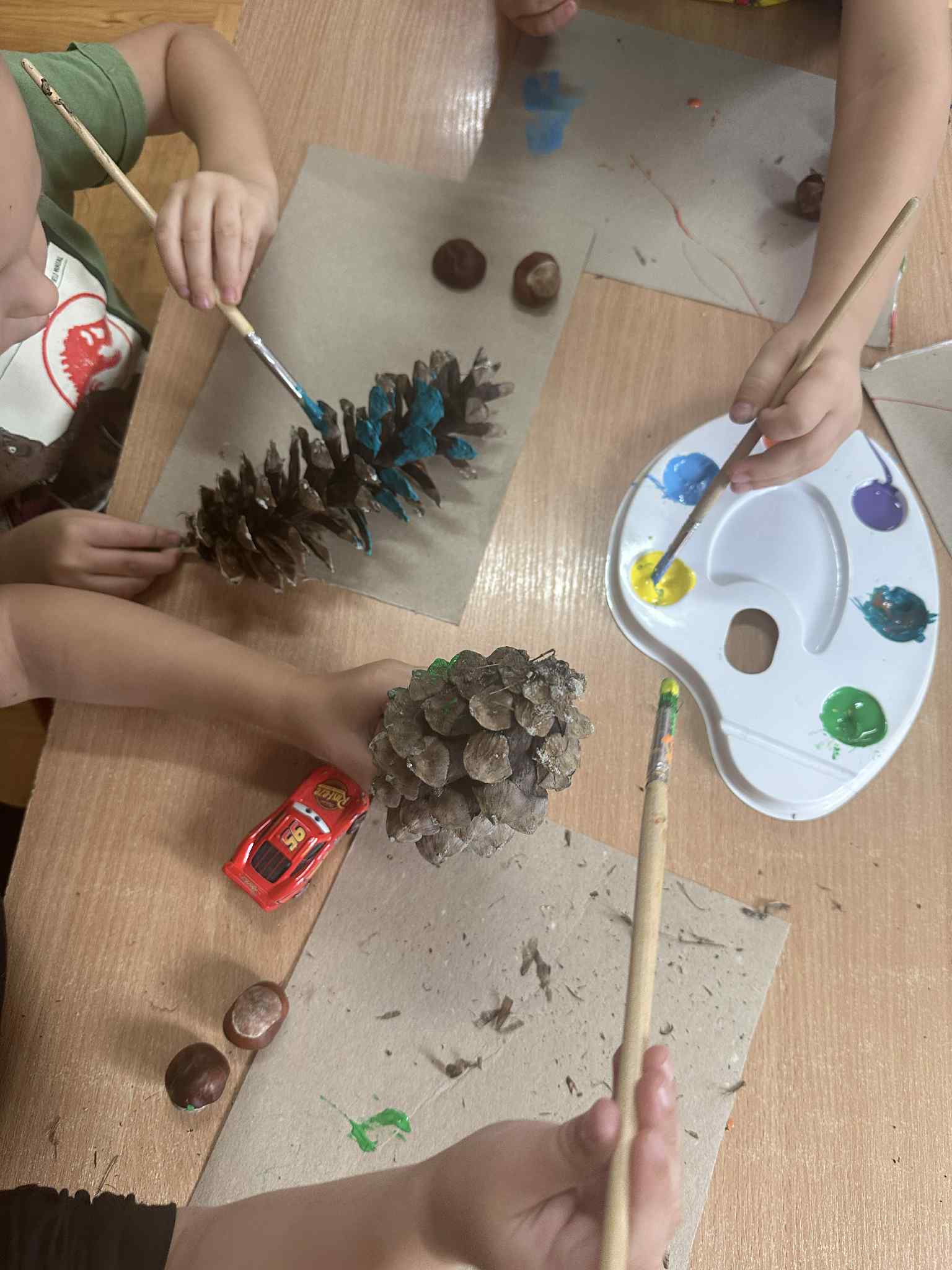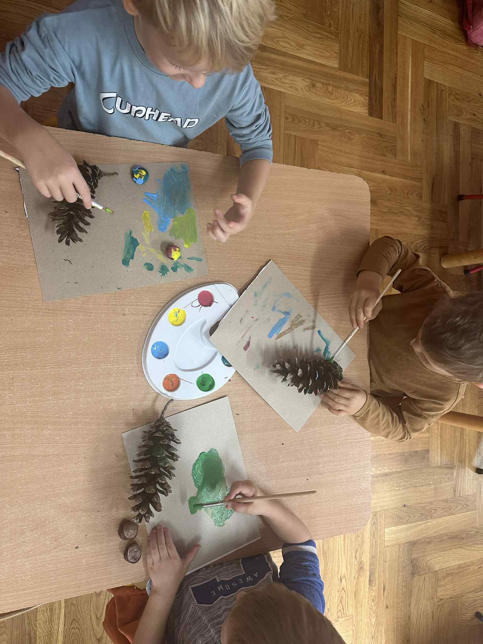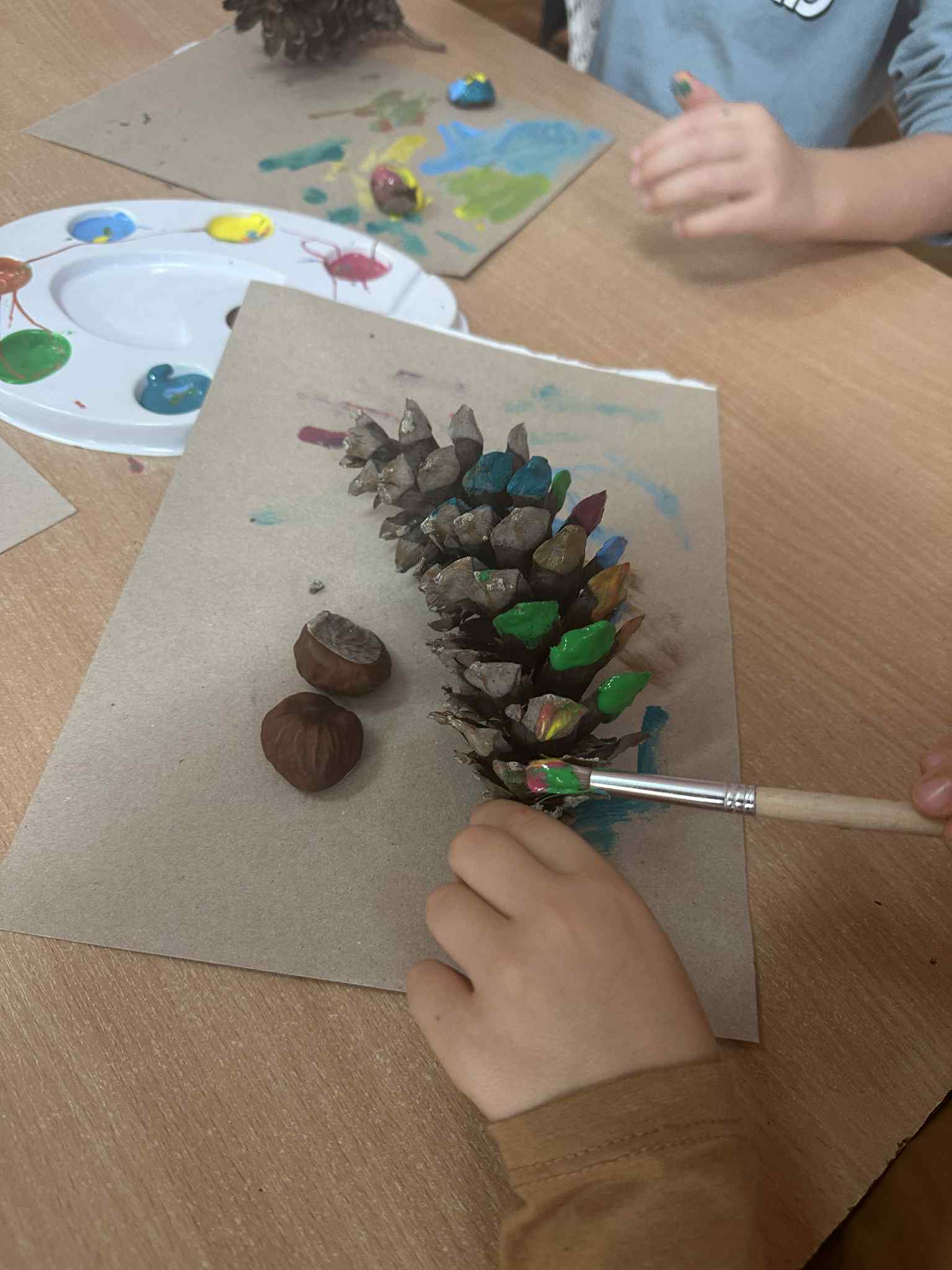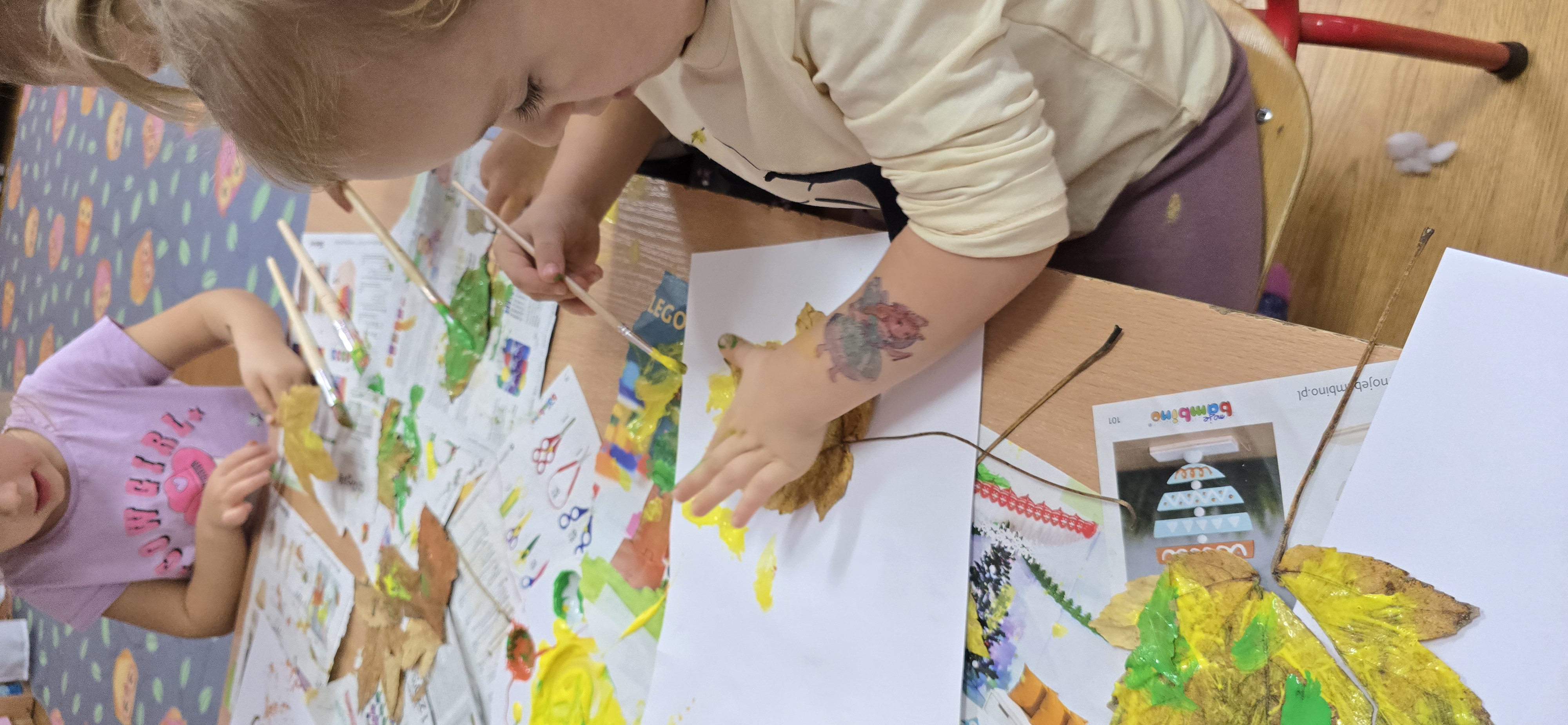 Podczas zajęć dzieci rozwijają swoją wyobraźnię i zdolności manualne, tworząc prace plastyczne z wykorzystaniem naturalnych materiałów – takich jak liście, szyszki, kasztany, kamyki, patyczki czy kora drzew. W połączeniu z różnorodnymi materiałami plastycznymi (plastelina, masa solna, farby, papier, tkaniny) powstają wyjątkowe kompozycje inspirowane naturą i porami roku.